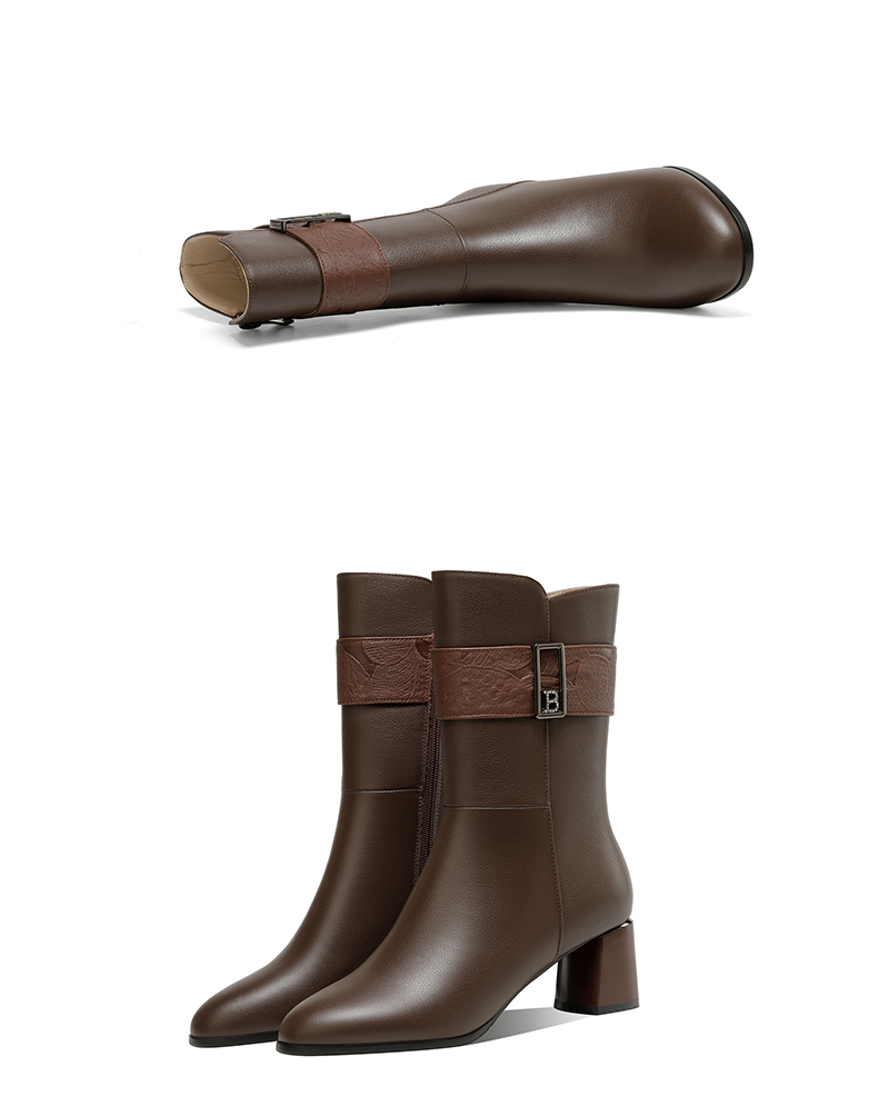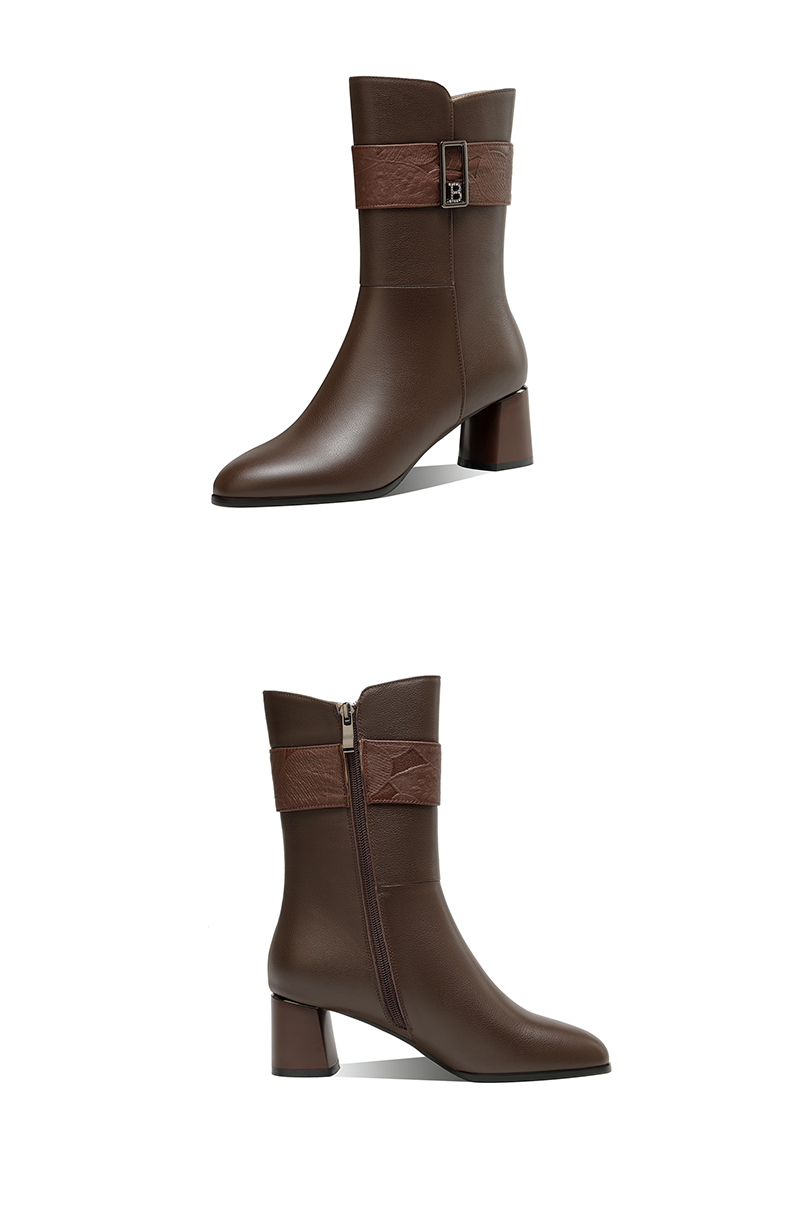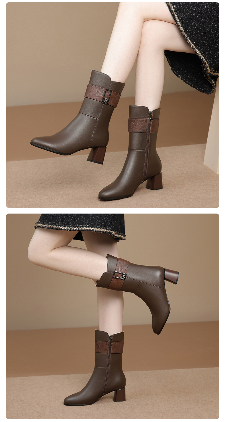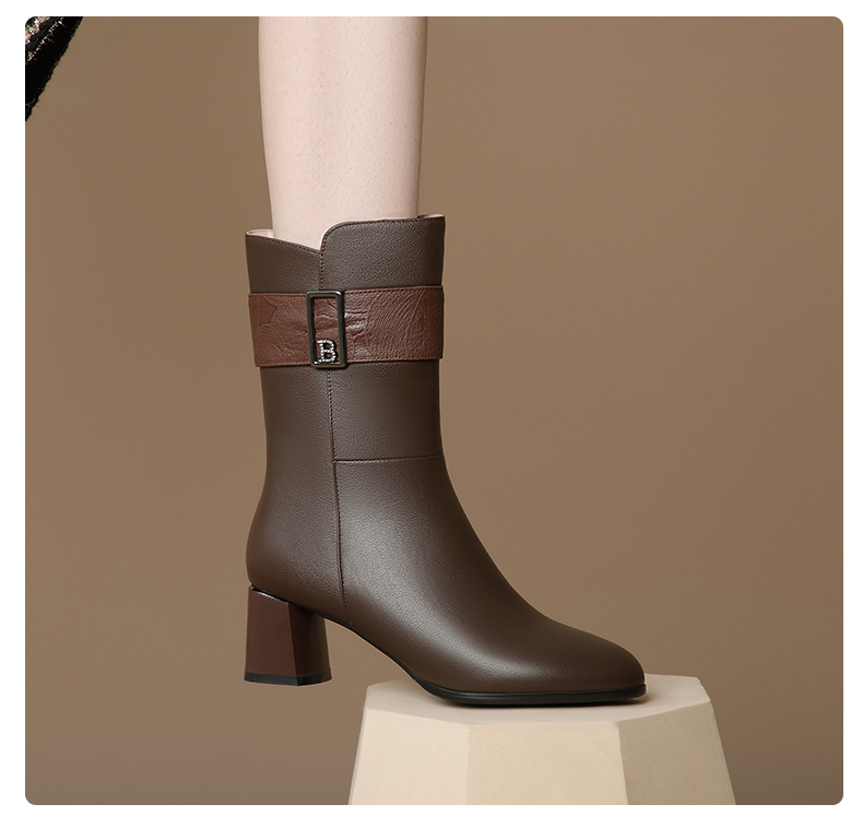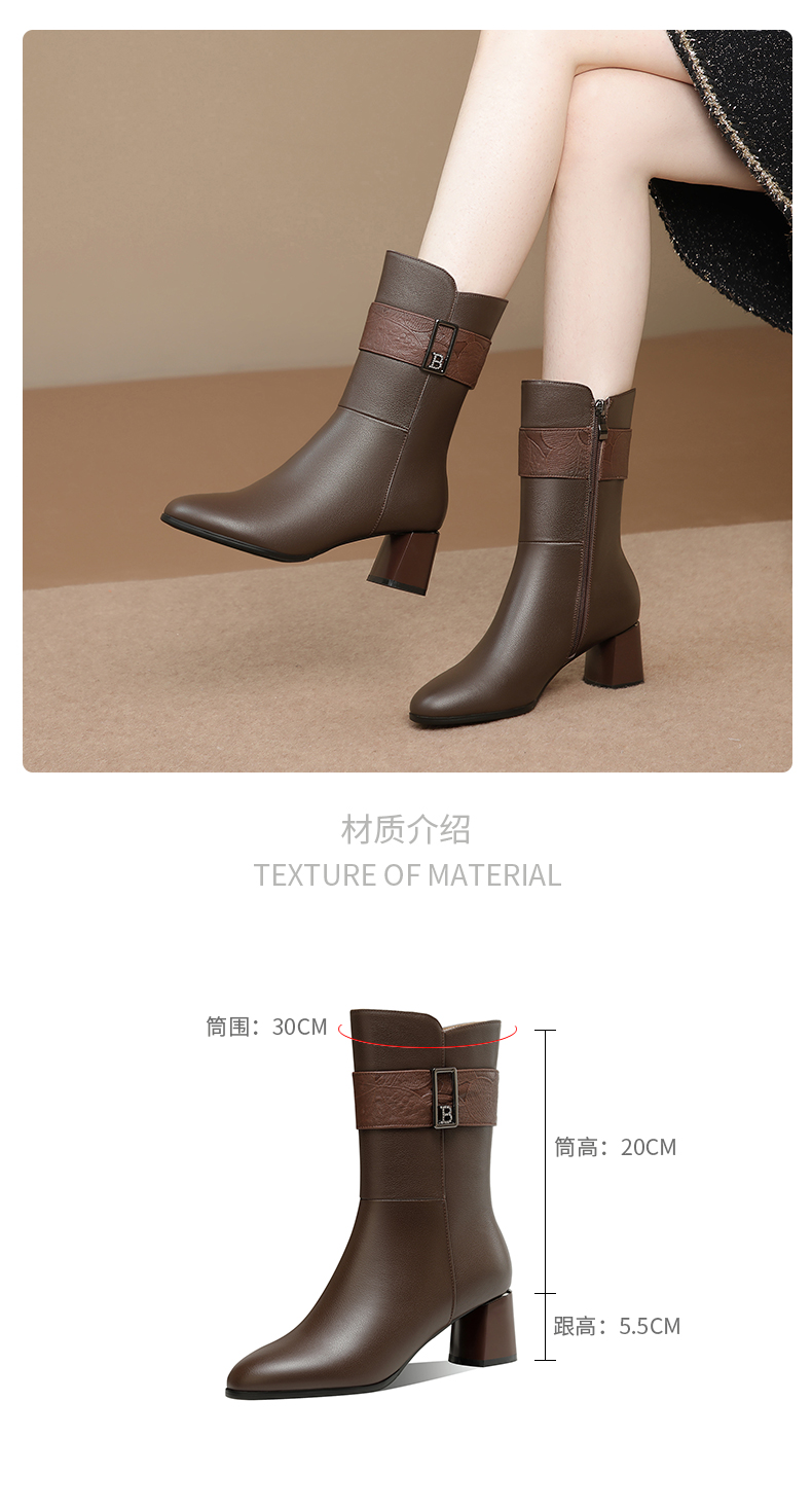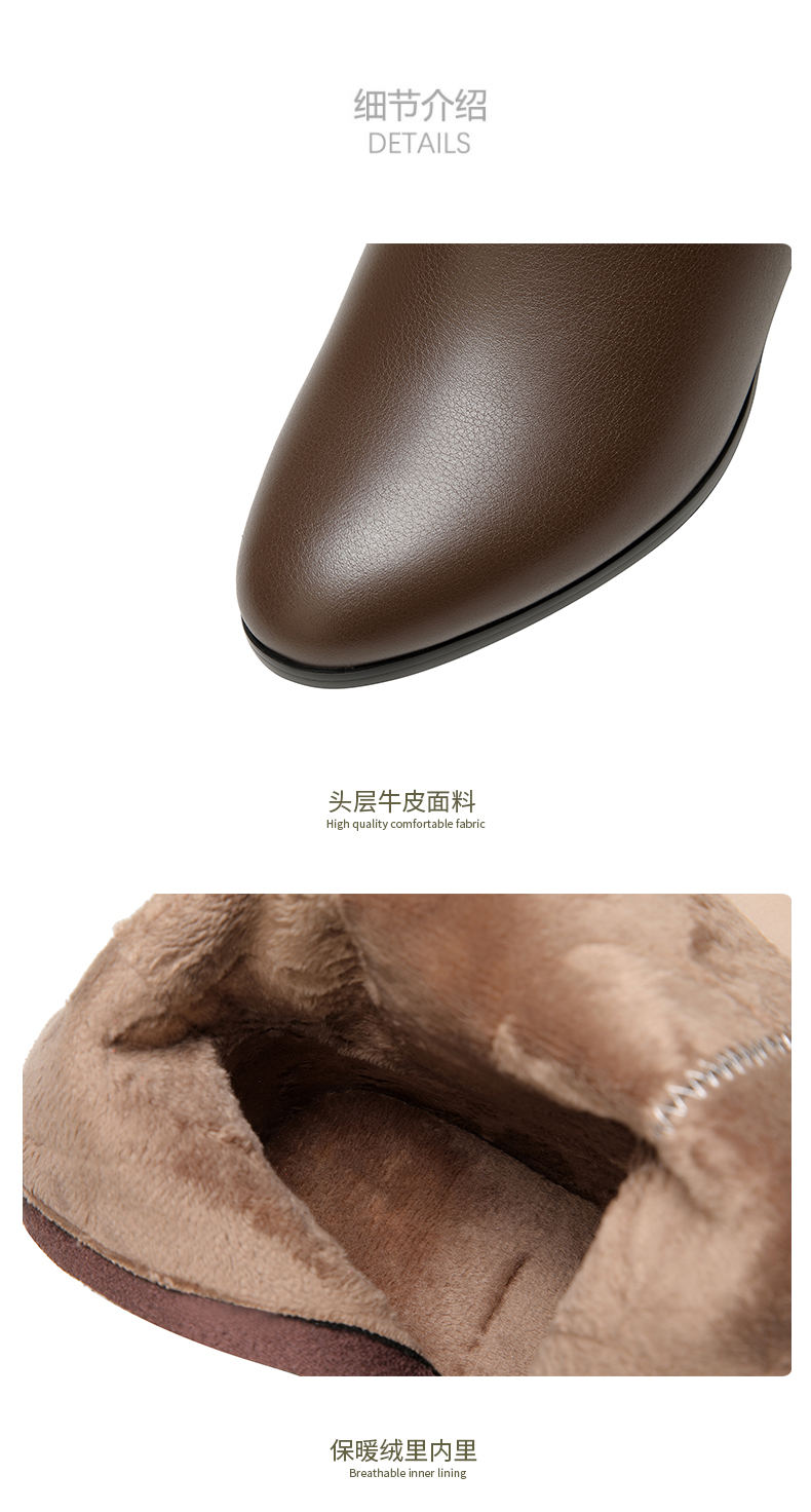 粗跟真皮中筒靴,不过膝长靴TFJC-W176