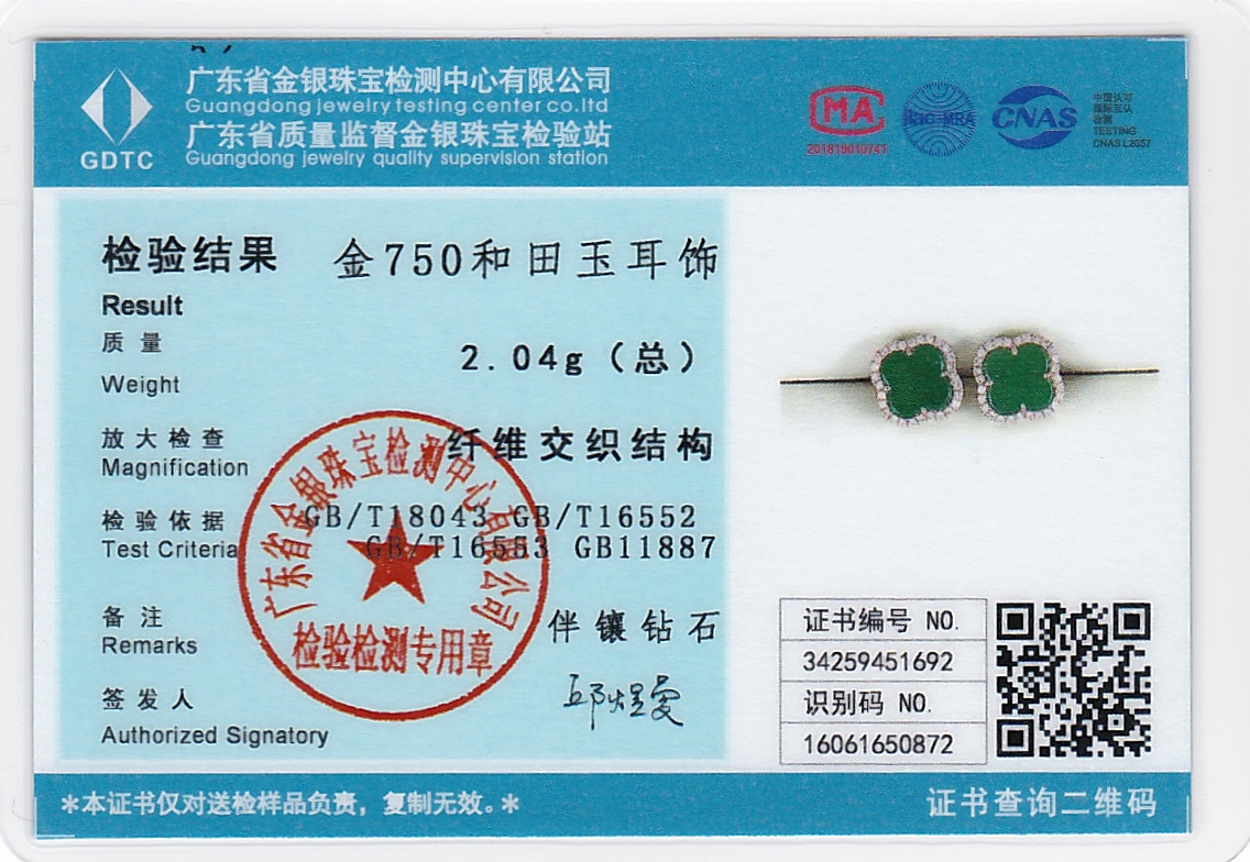 18K玫瑰金和田玉(碧玉)耳饰
