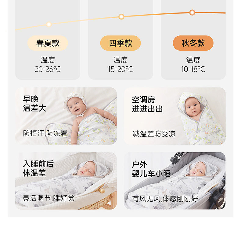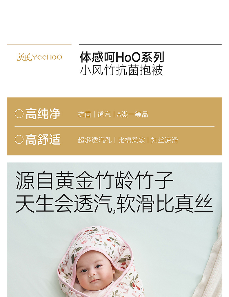 【防惊跳+小风竹系列】英氏新生儿包被抗菌夹恒温棉包单竹棉宝宝外出襁褓婴儿抱被