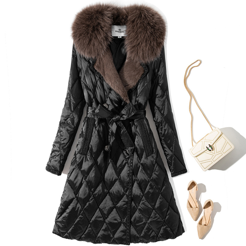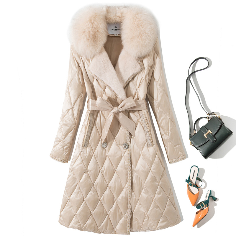 YLYM-W2257新款女装狐狸毛+水貂毛白鸭绒不可拆卸羽绒服