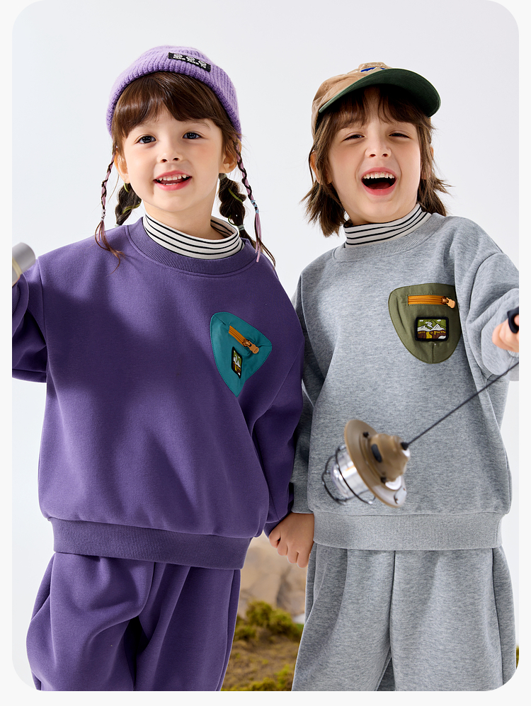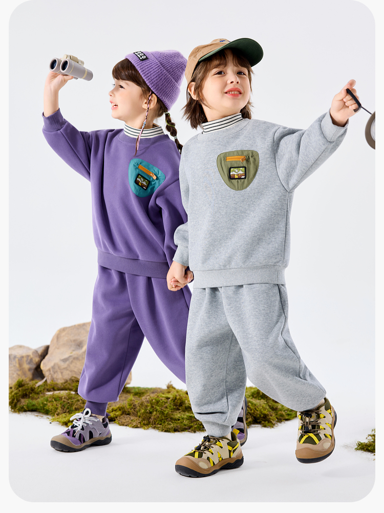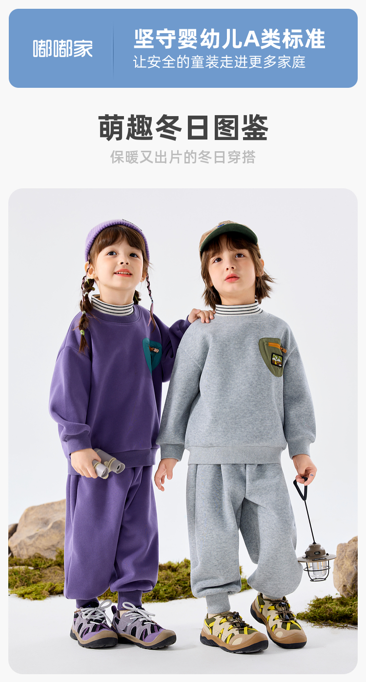 【直降】嘟嘟家儿童套装秋冬薄绒男童卫衣裤子冬季女童半高领洋气童装上衣