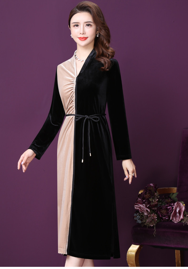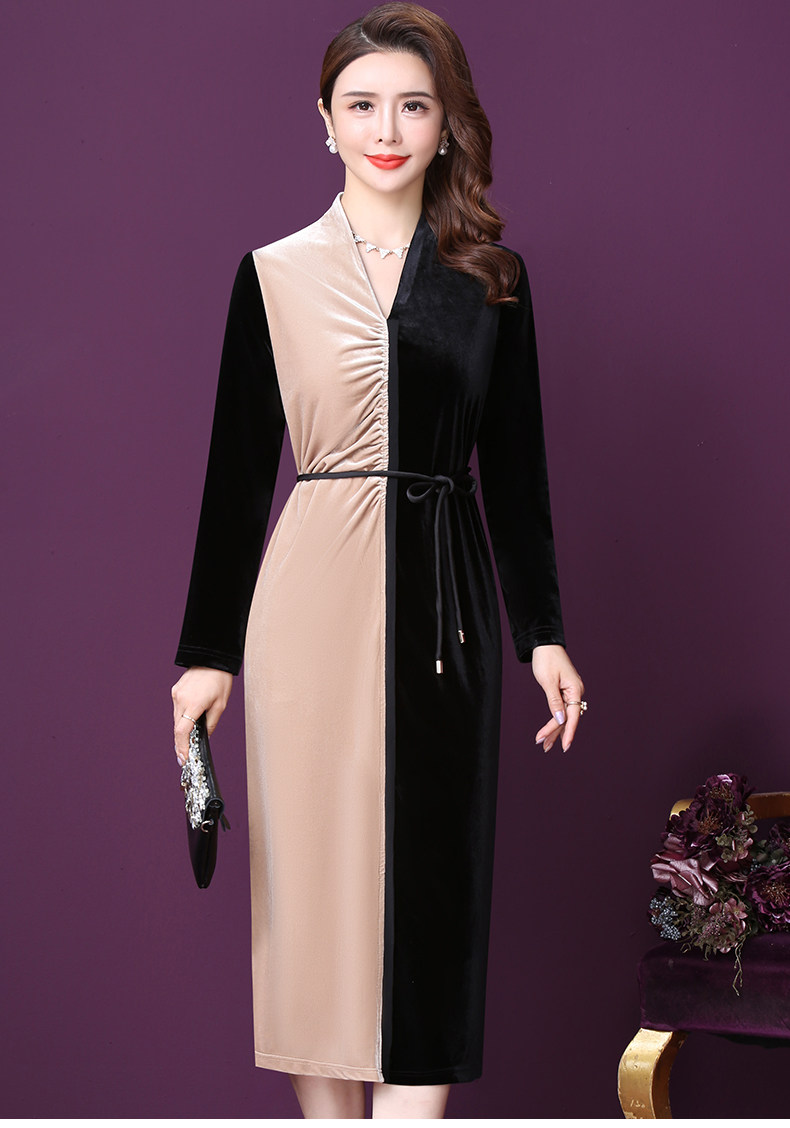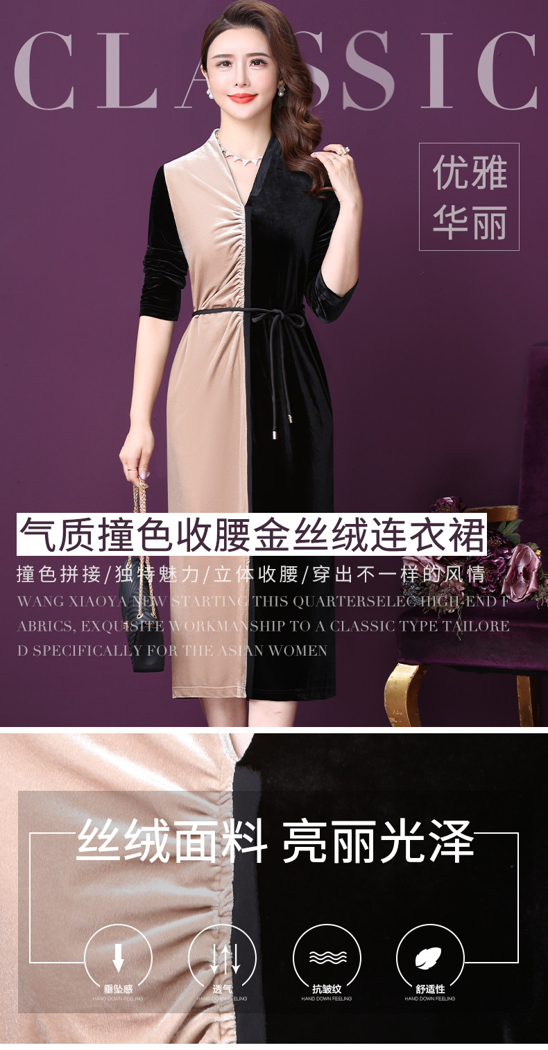 WXY-W-PS-003新款秋装法式复古V领名媛气质修身裙子