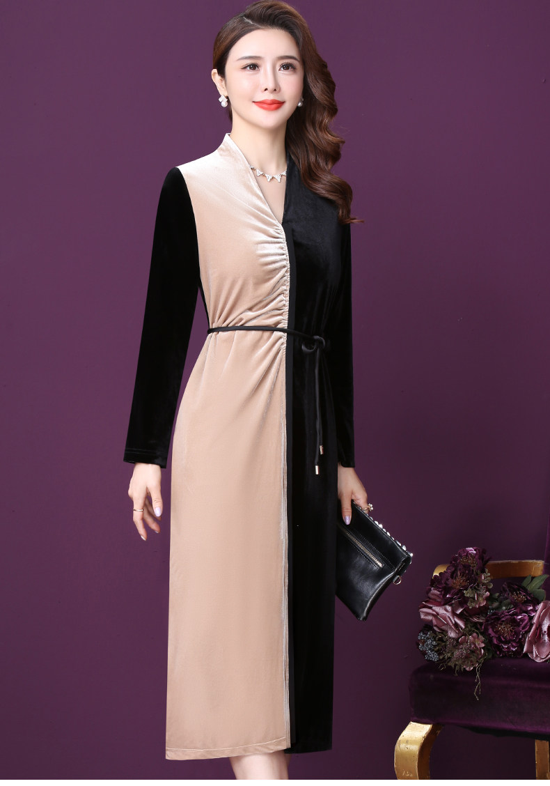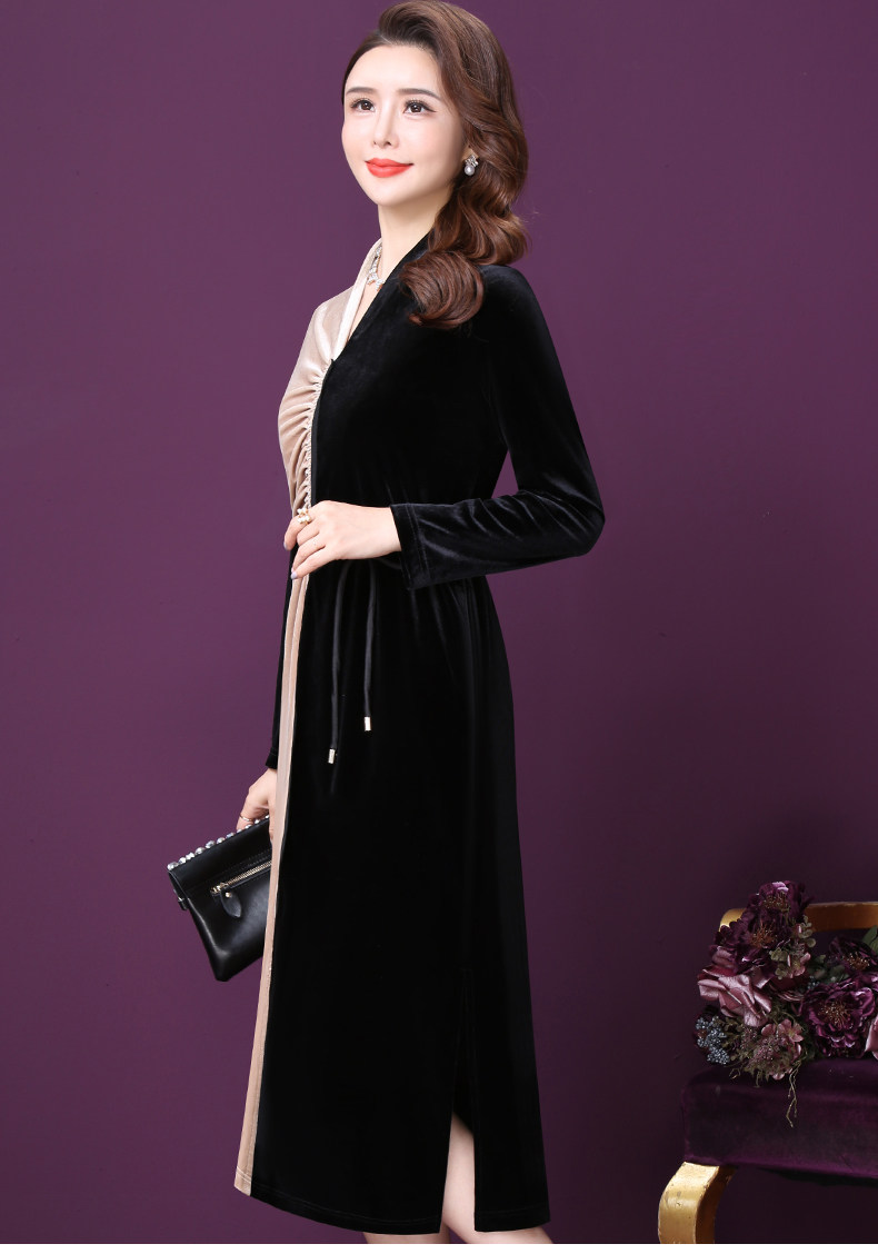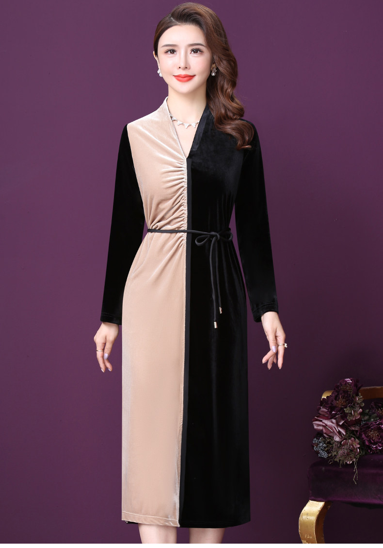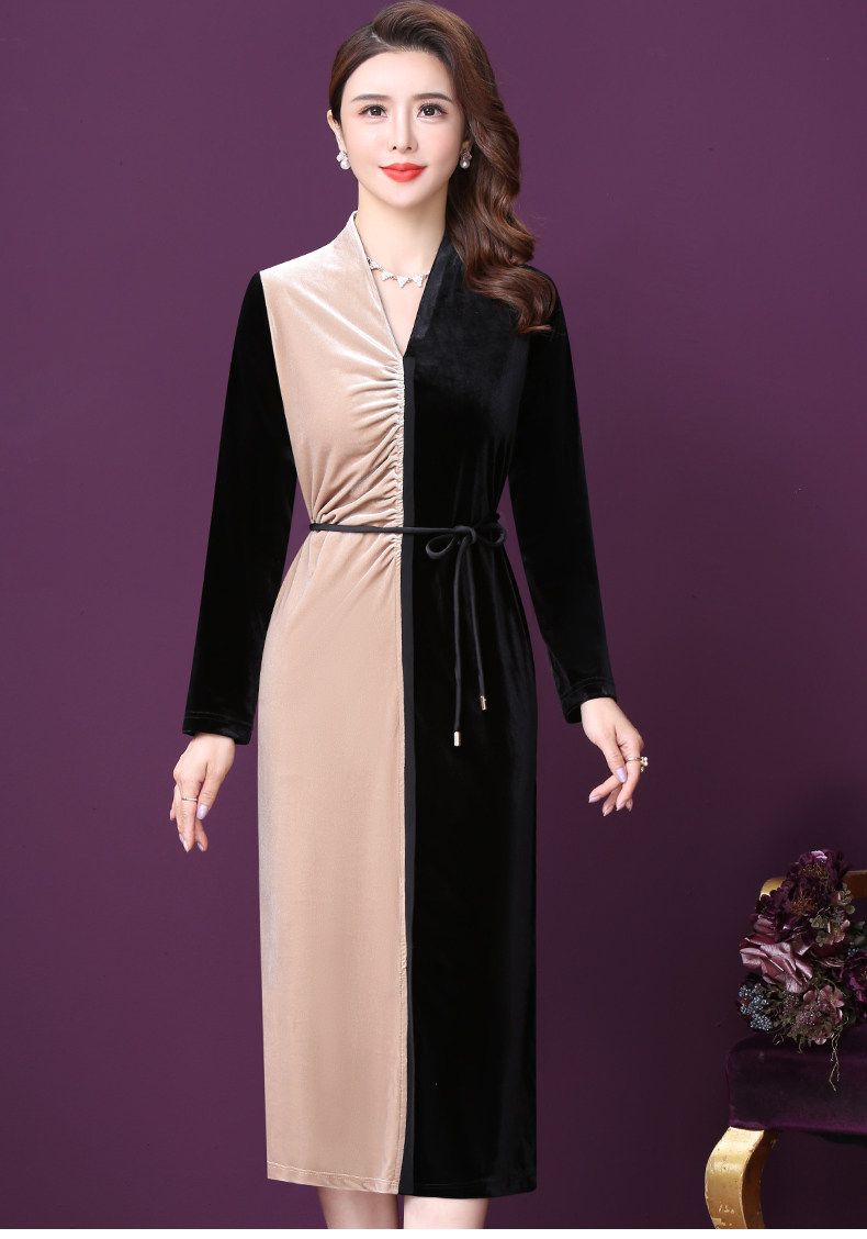 WXY-W-PS-003新款秋装法式复古V领名媛气质修身裙子
