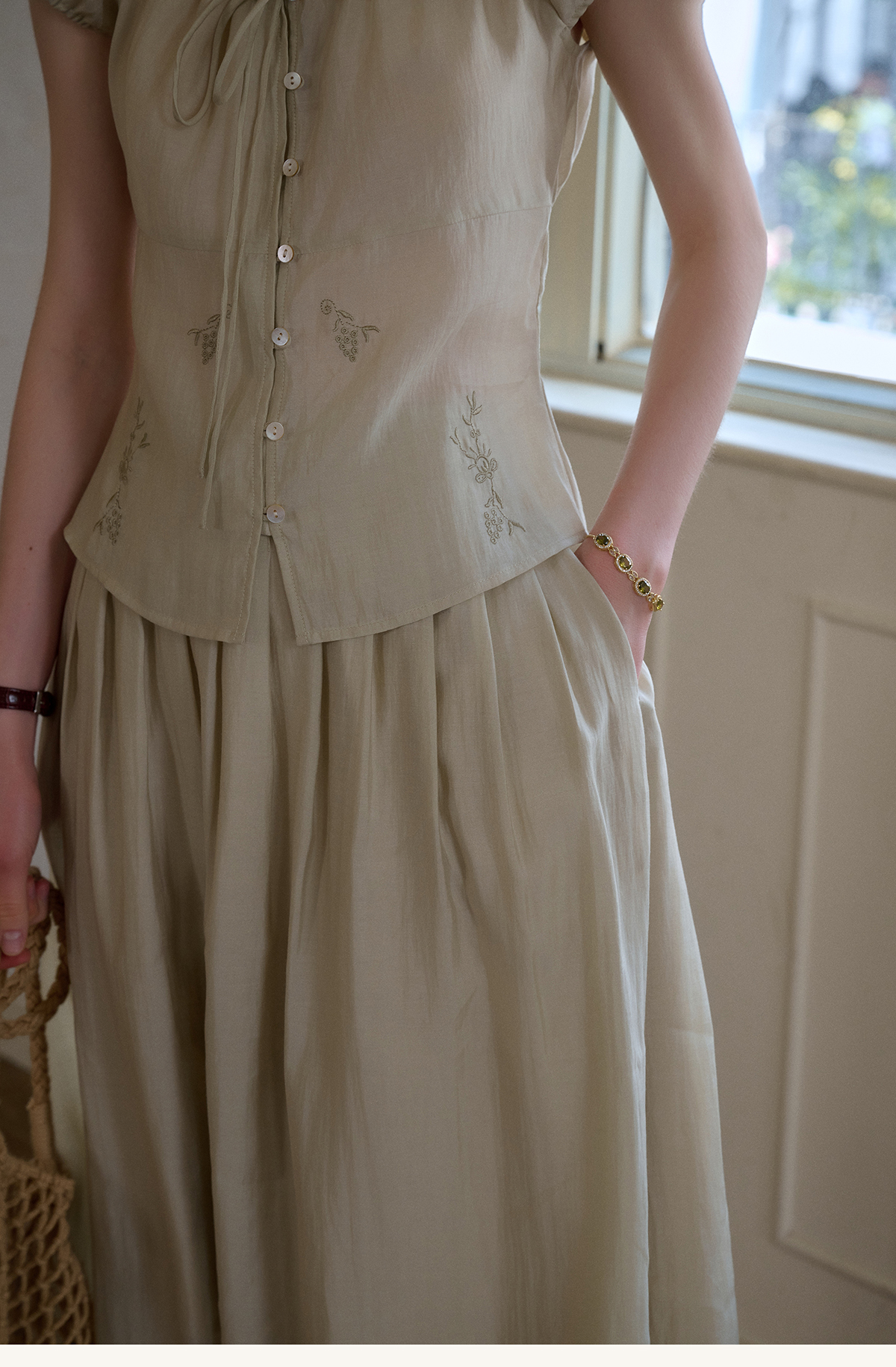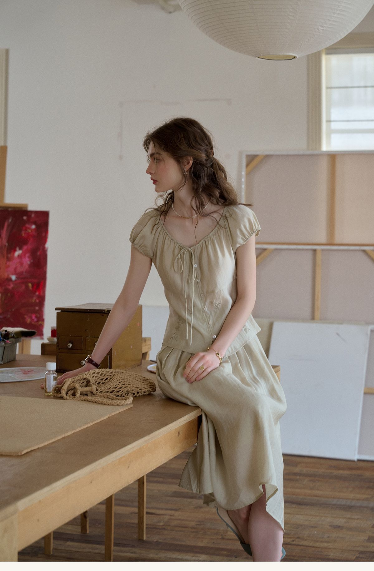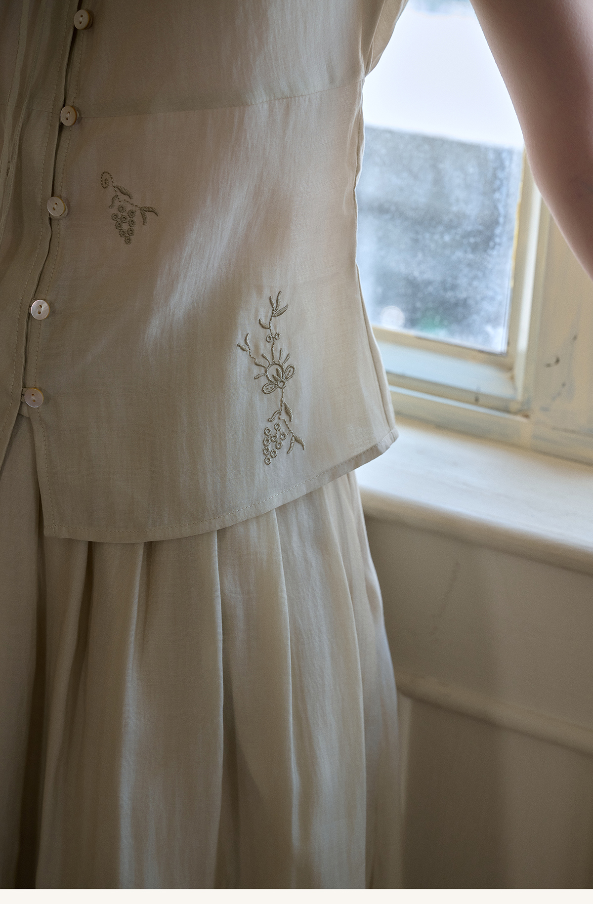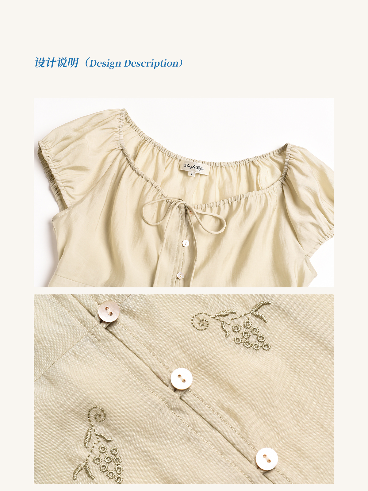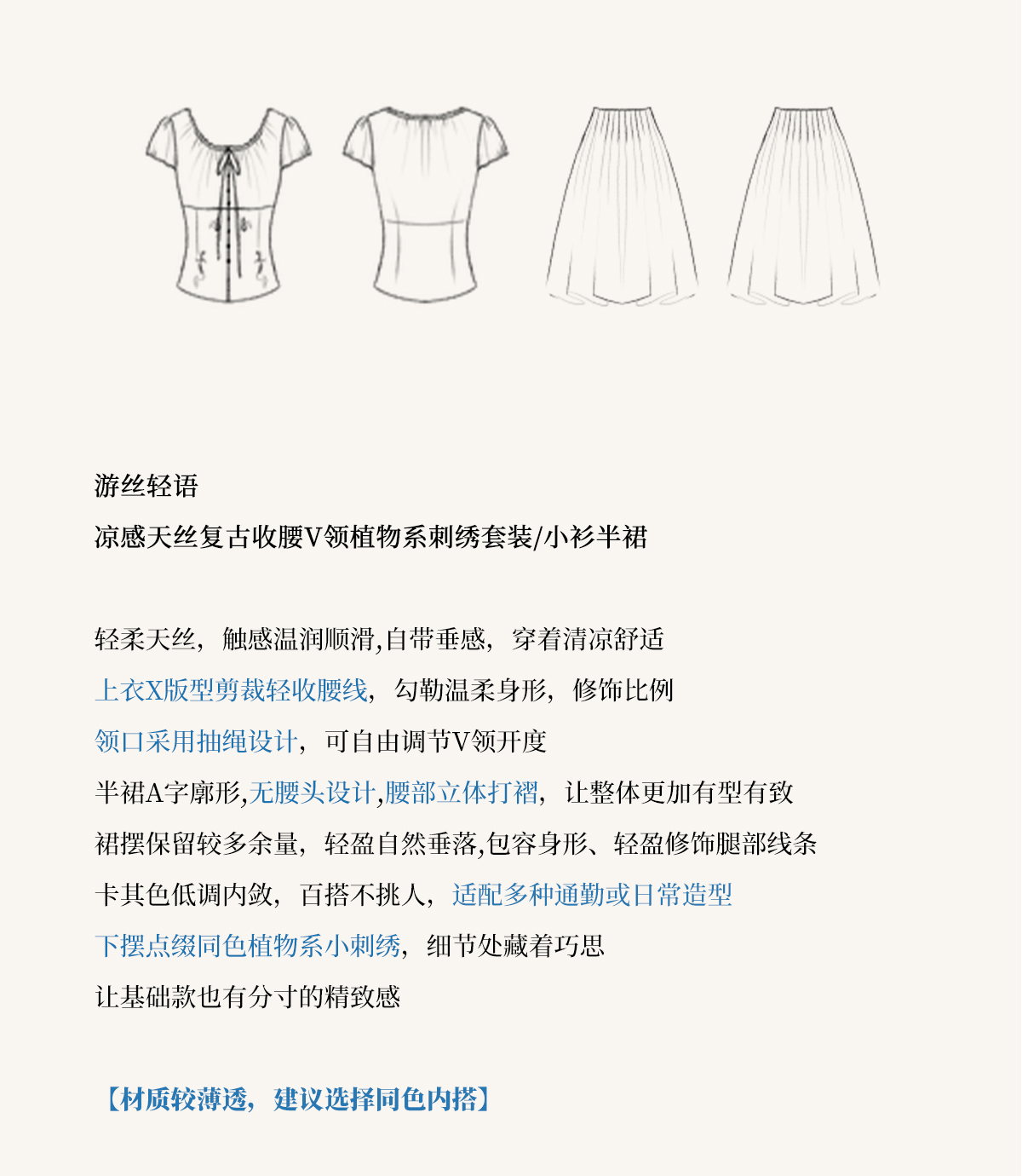 (小眠专属)SimpleRetro天丝复古V领植物系刺绣套装裙
