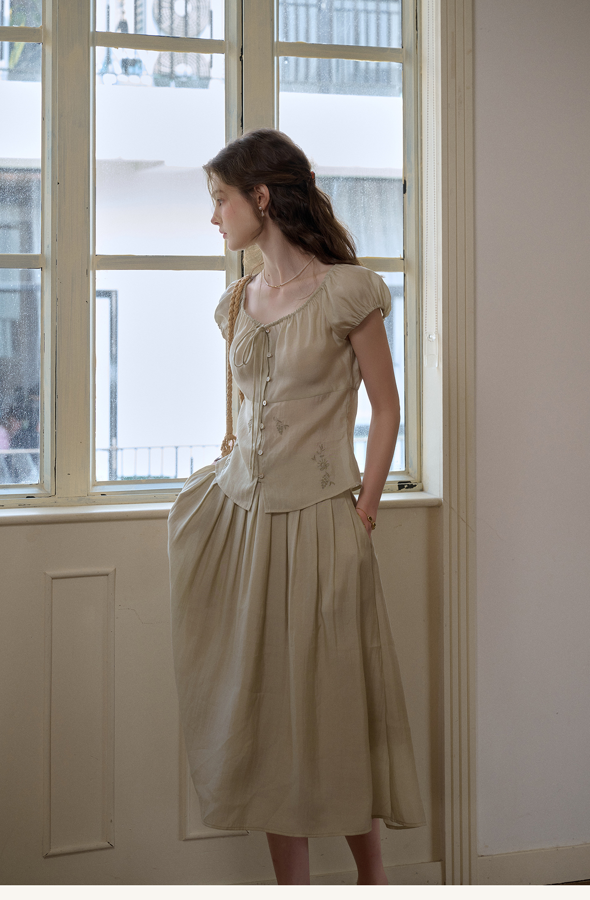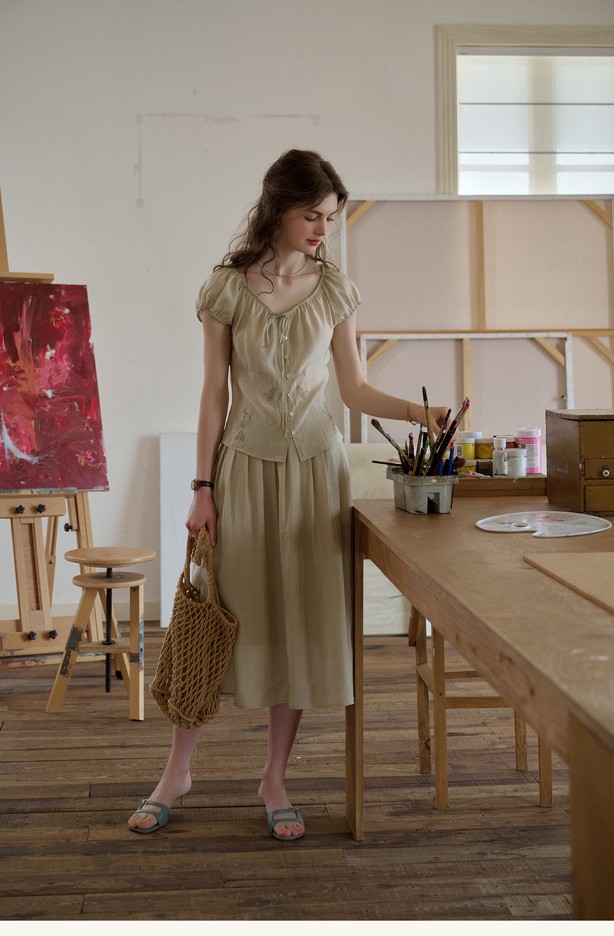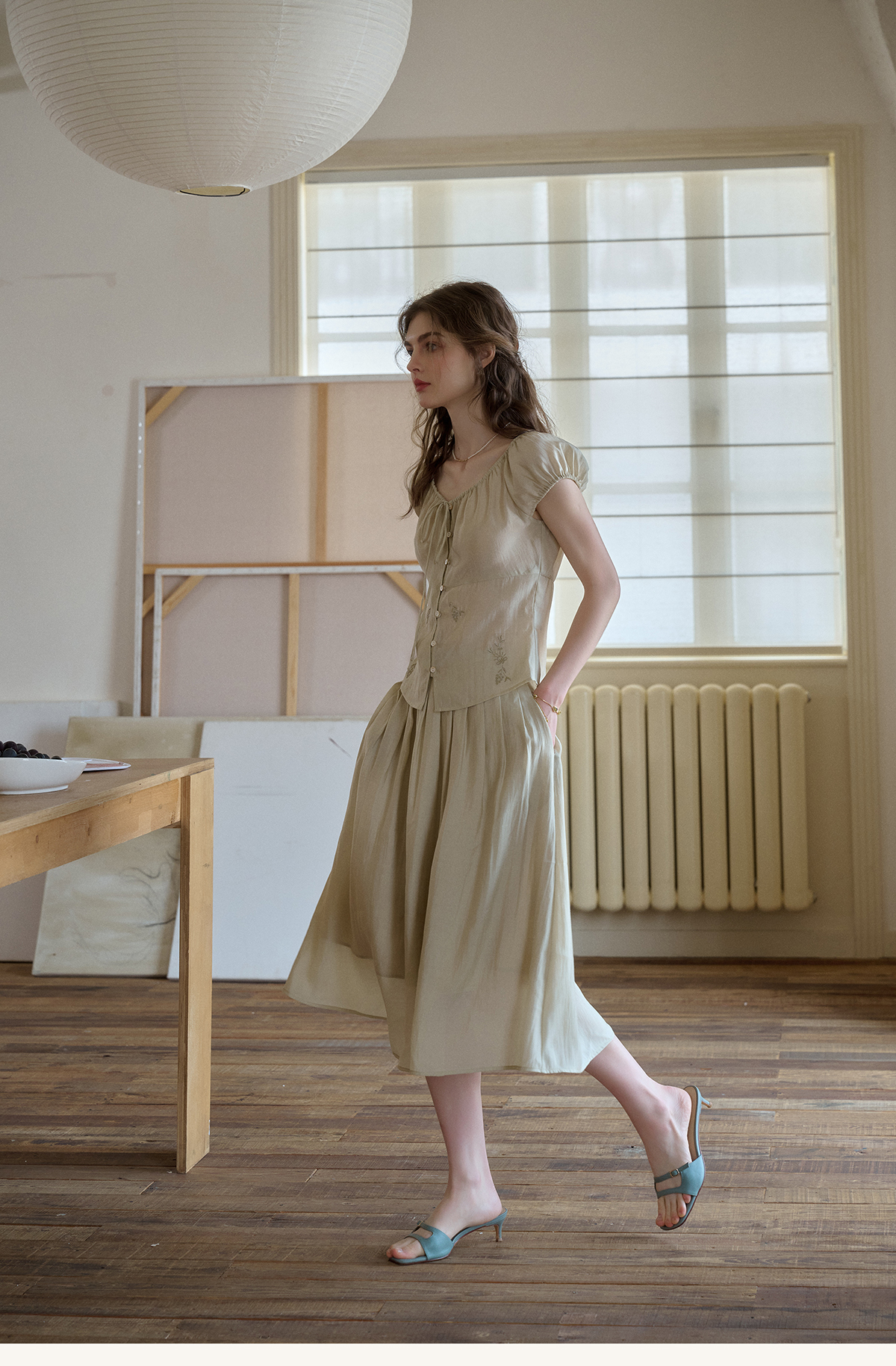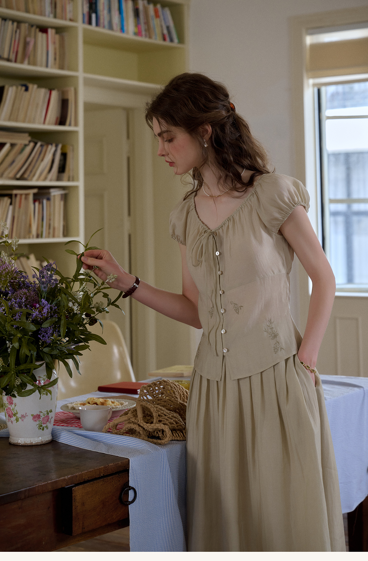 (小眠专属)SimpleRetro天丝复古V领植物系刺绣套装裙
