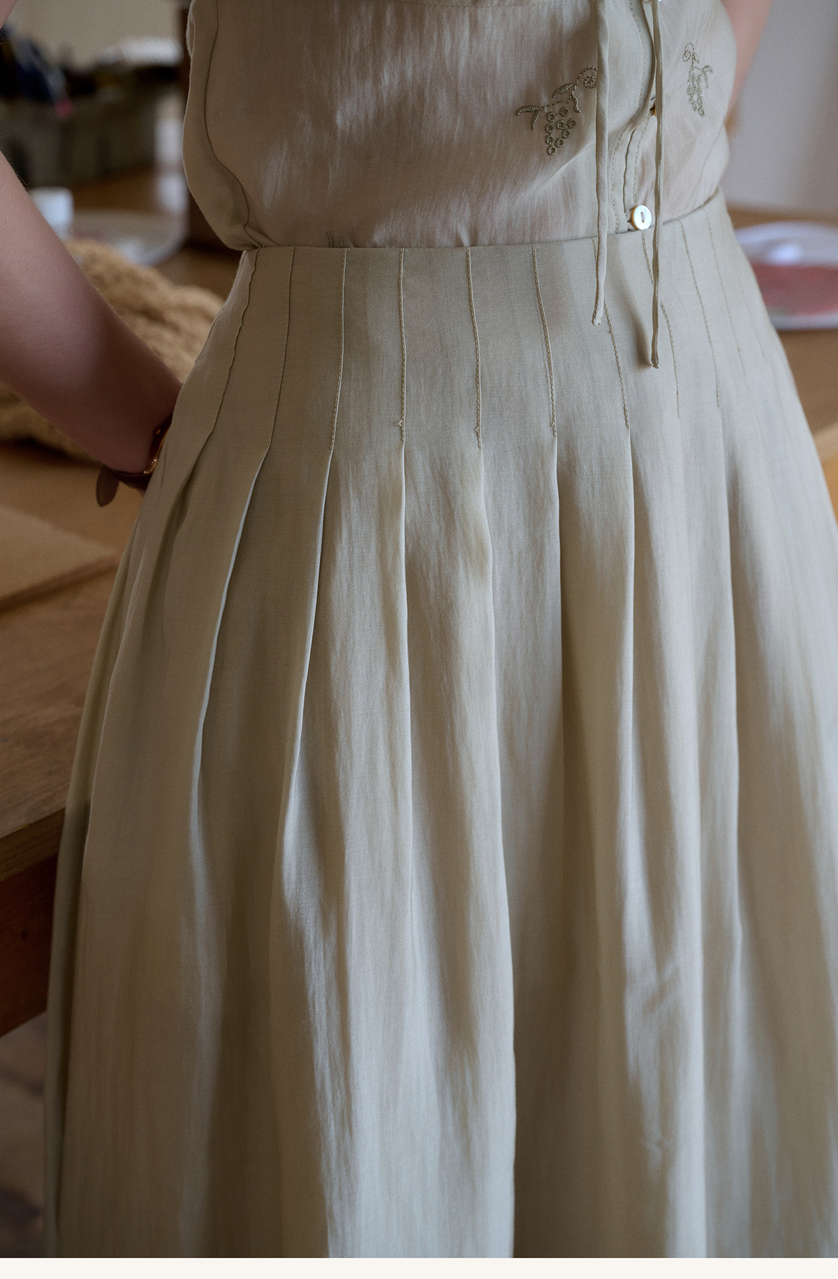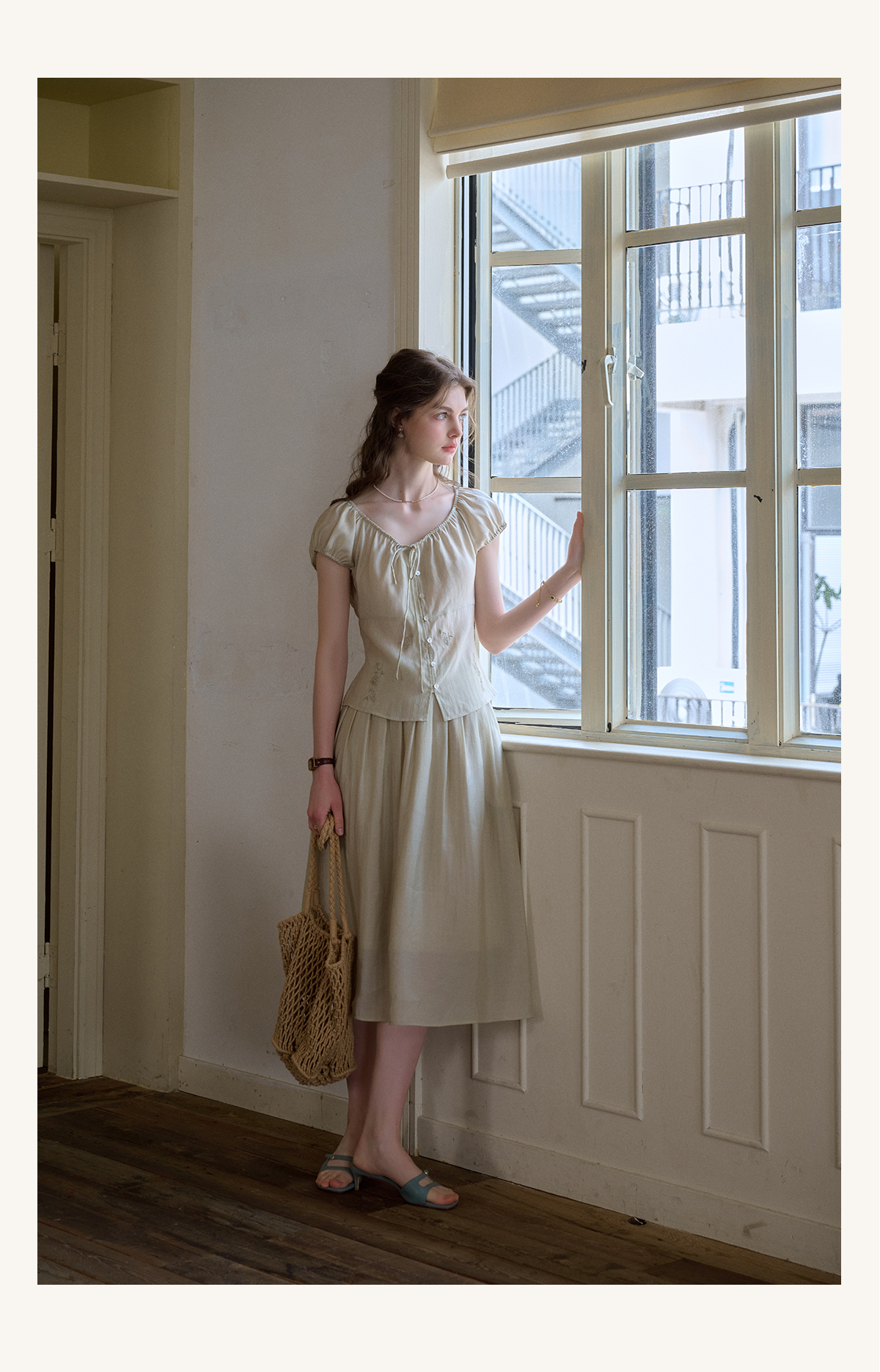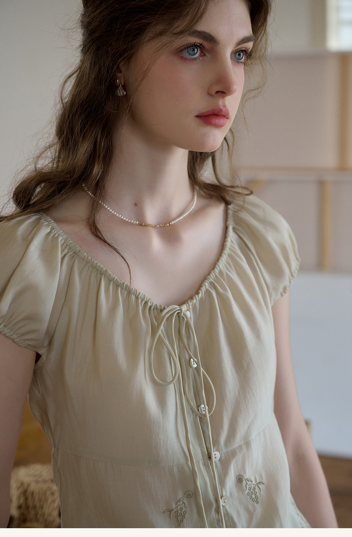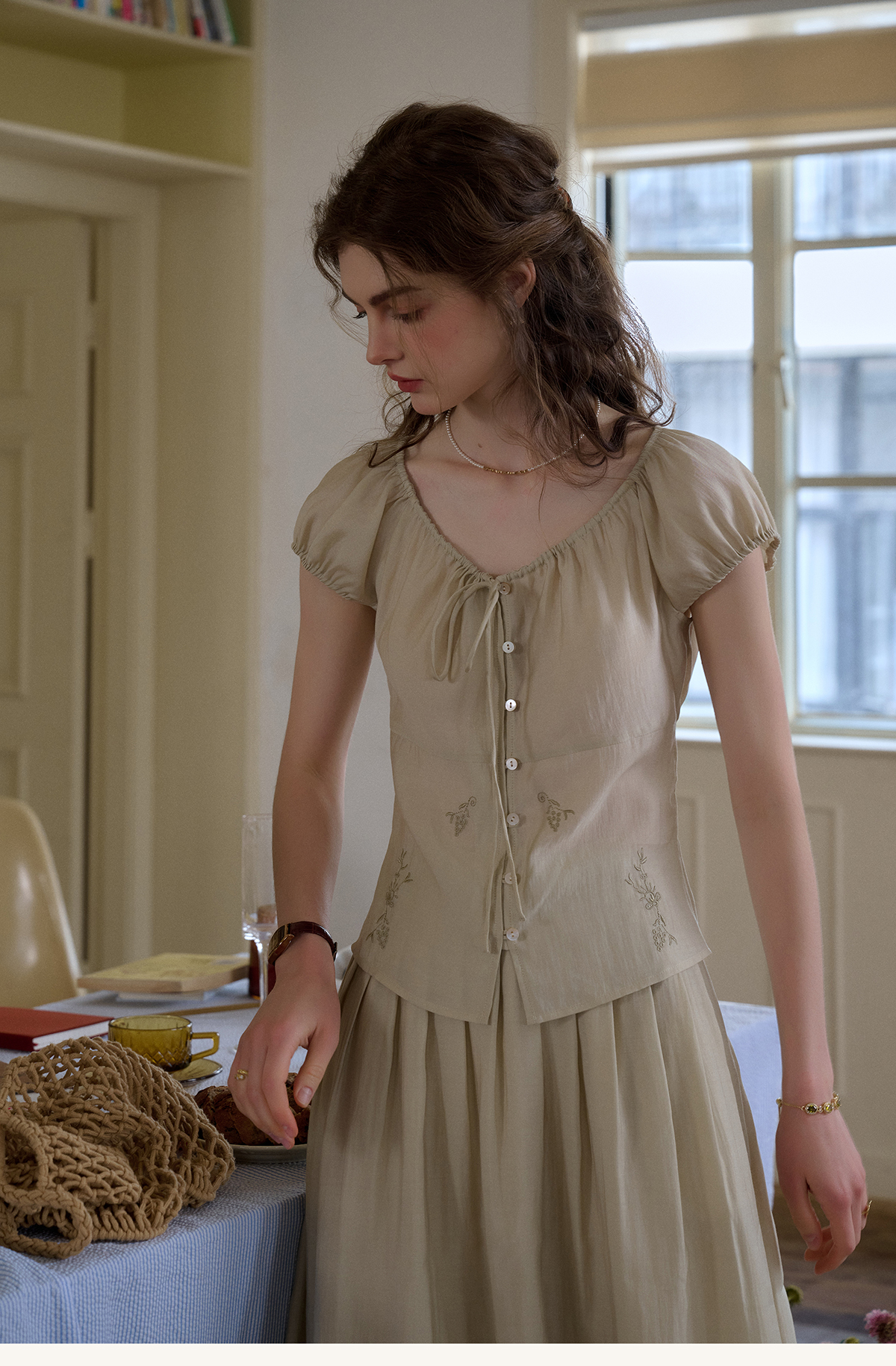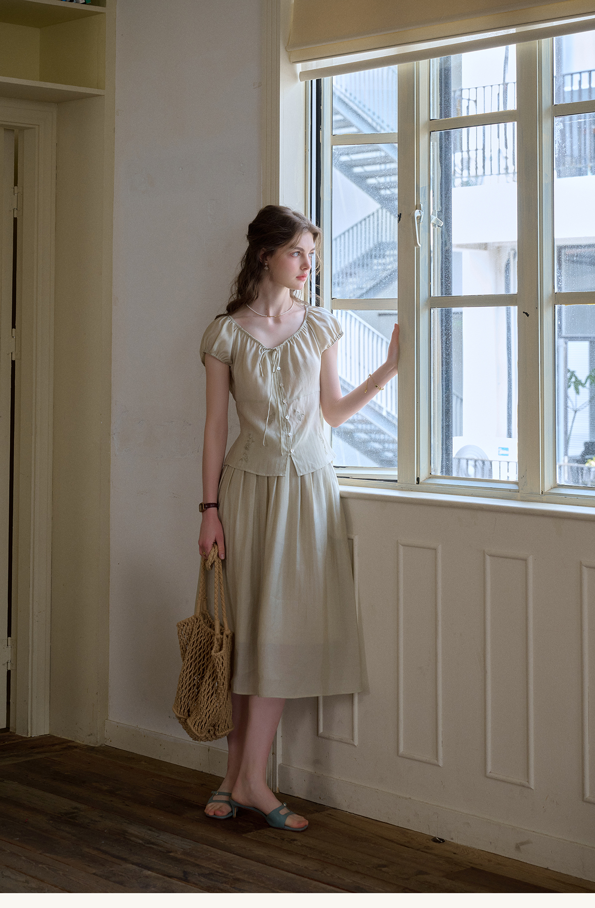 (小眠专属)SimpleRetro天丝复古V领植物系刺绣套装裙