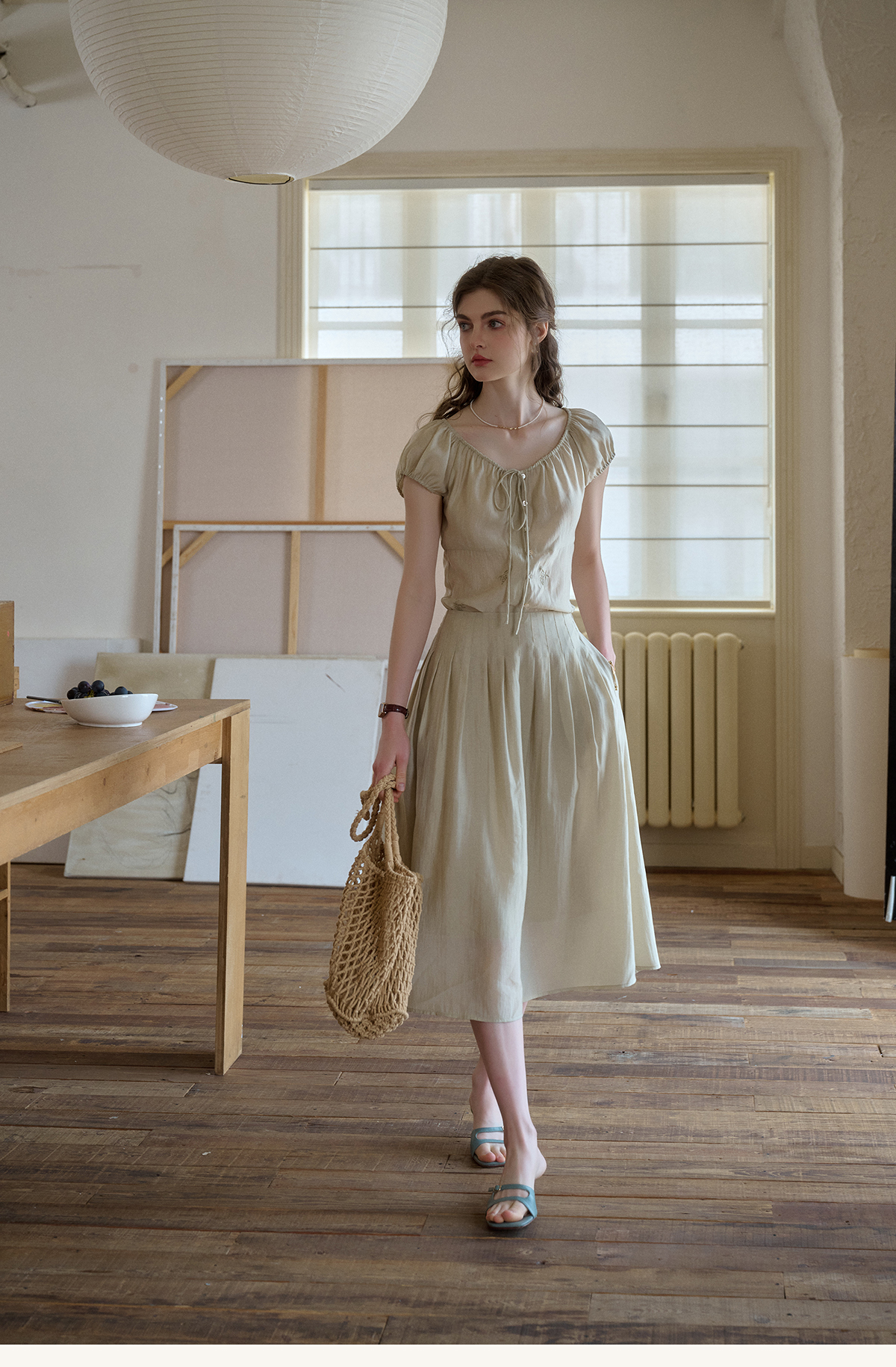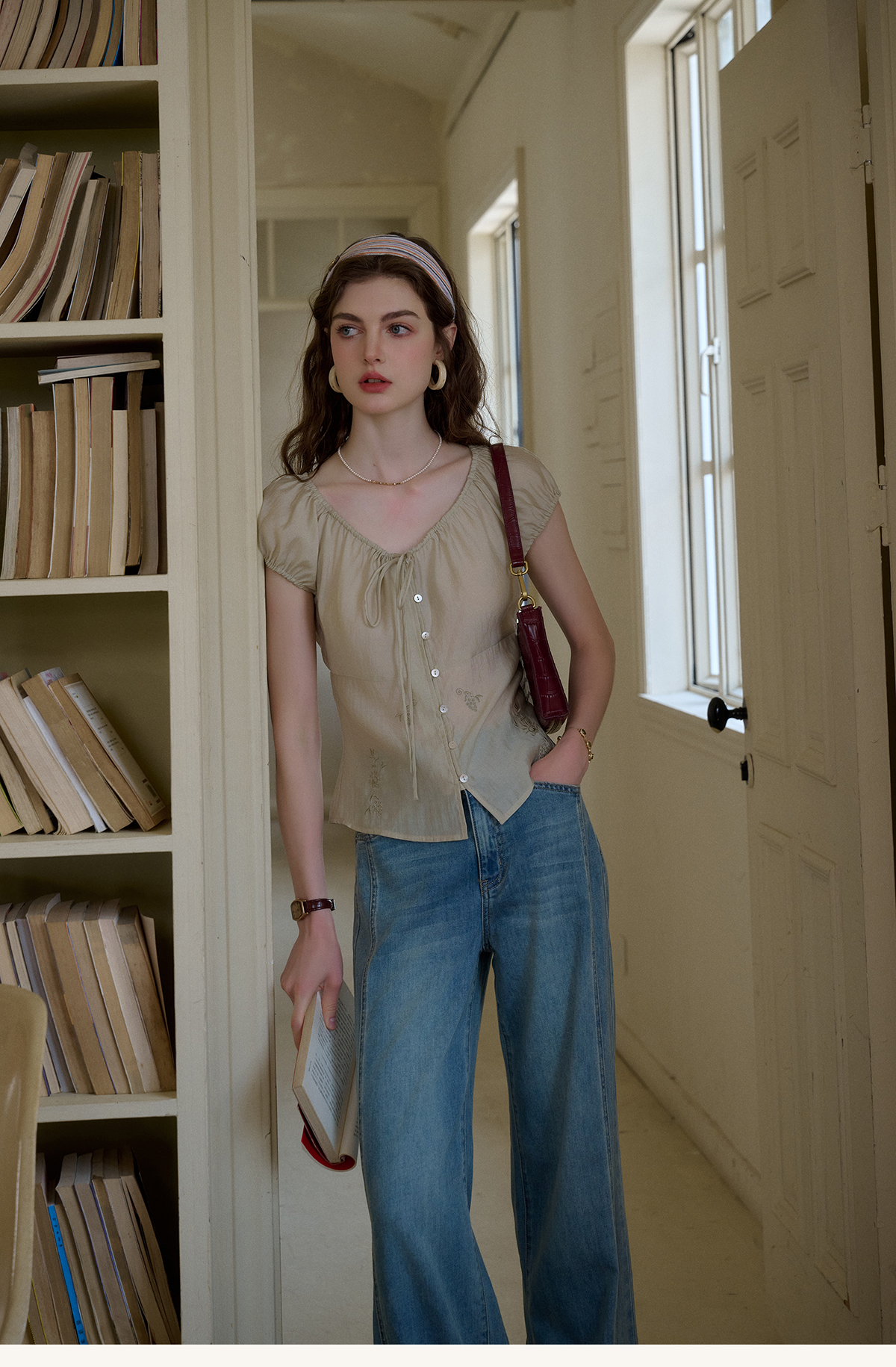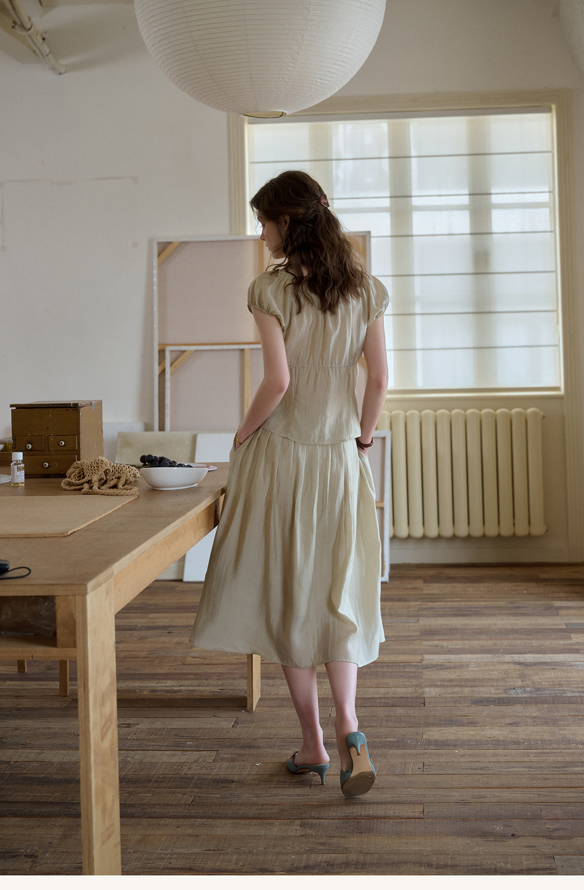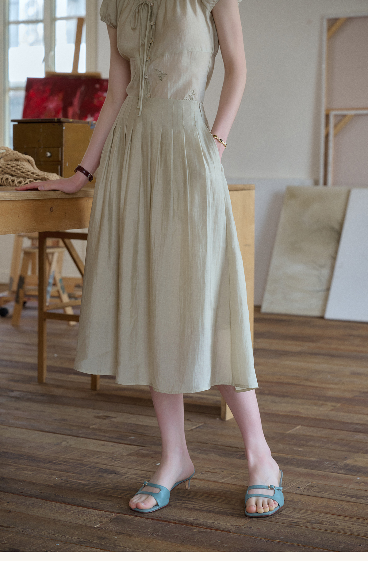 (小眠专属)SimpleRetro天丝复古V领植物系刺绣套装裙