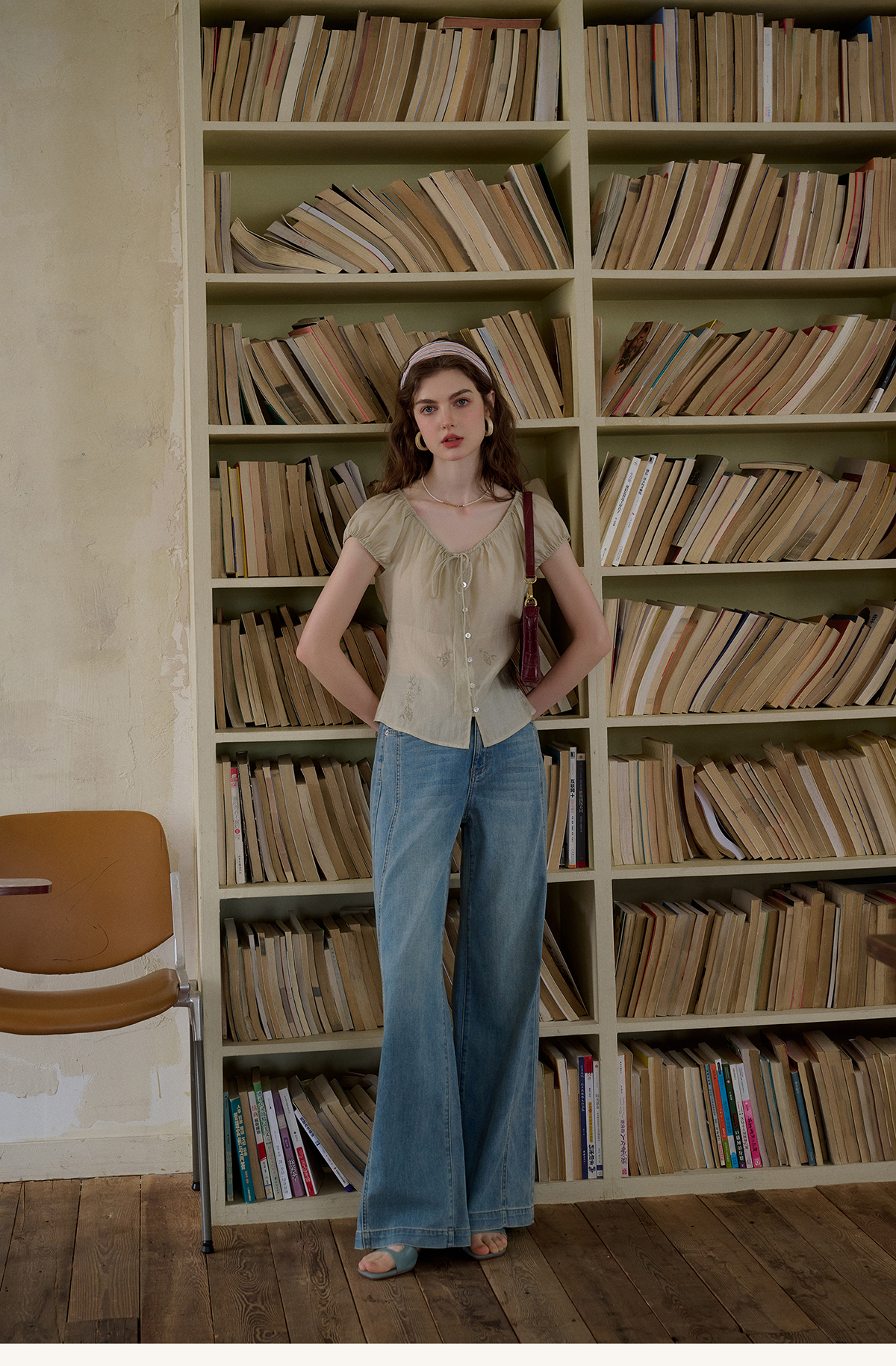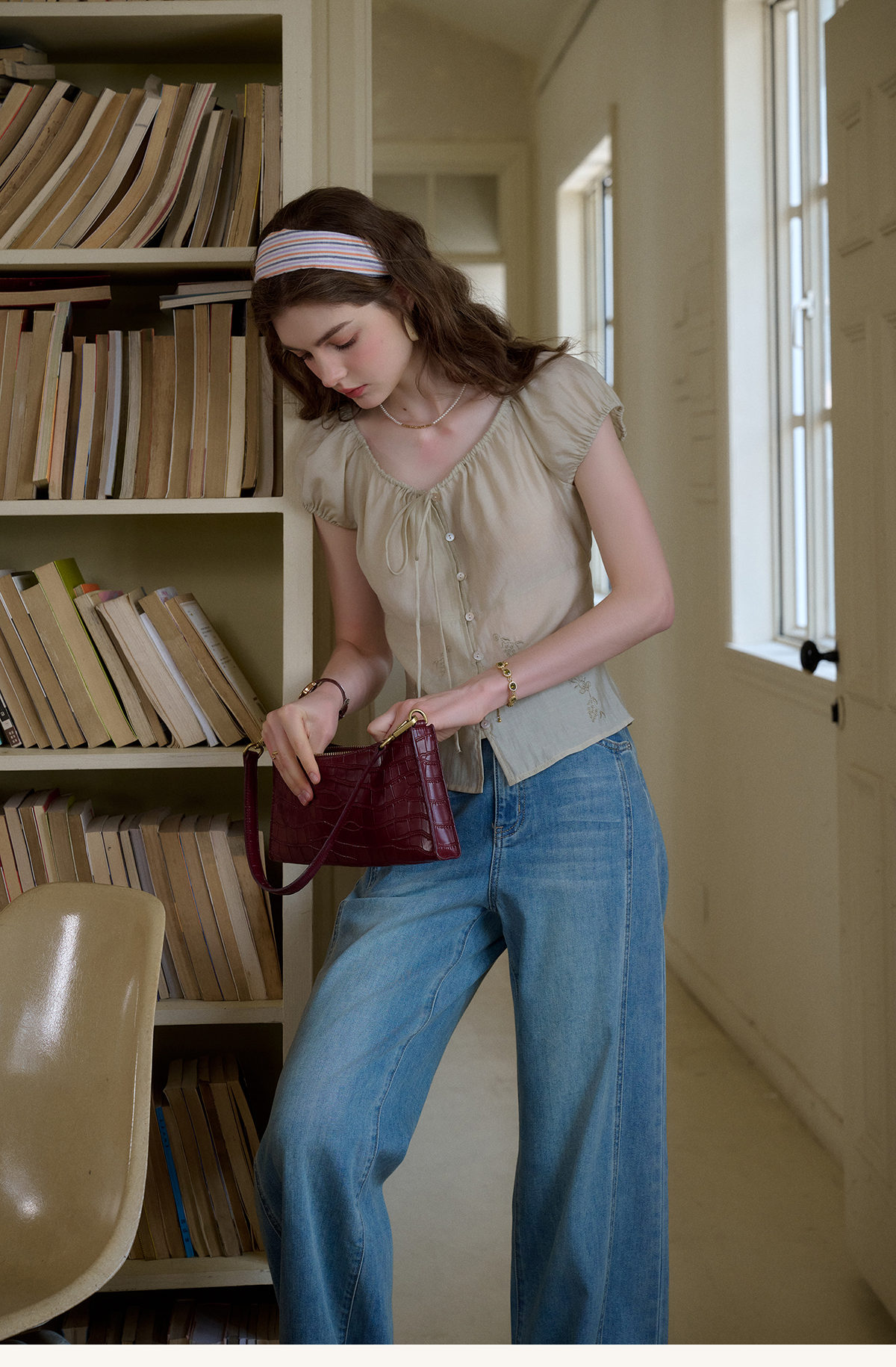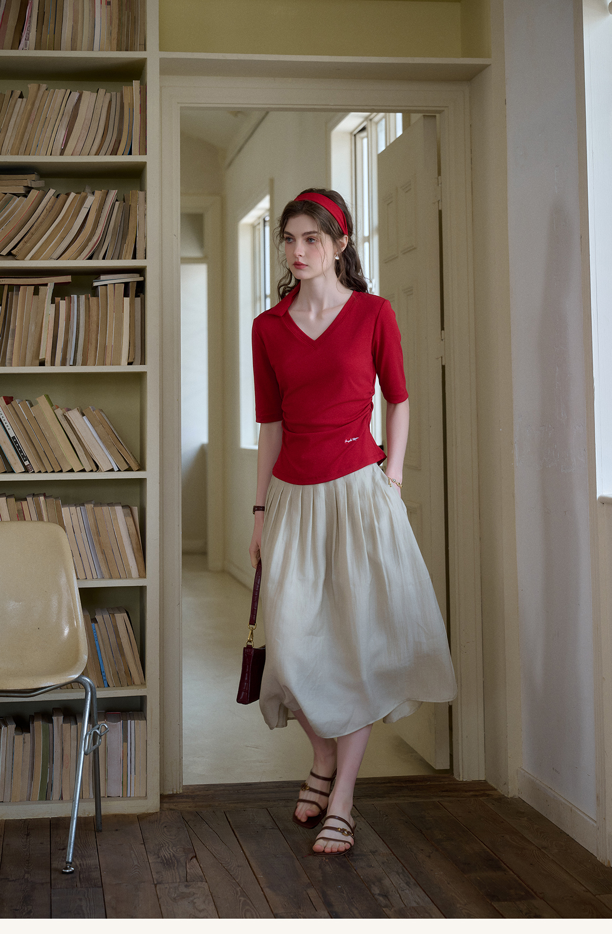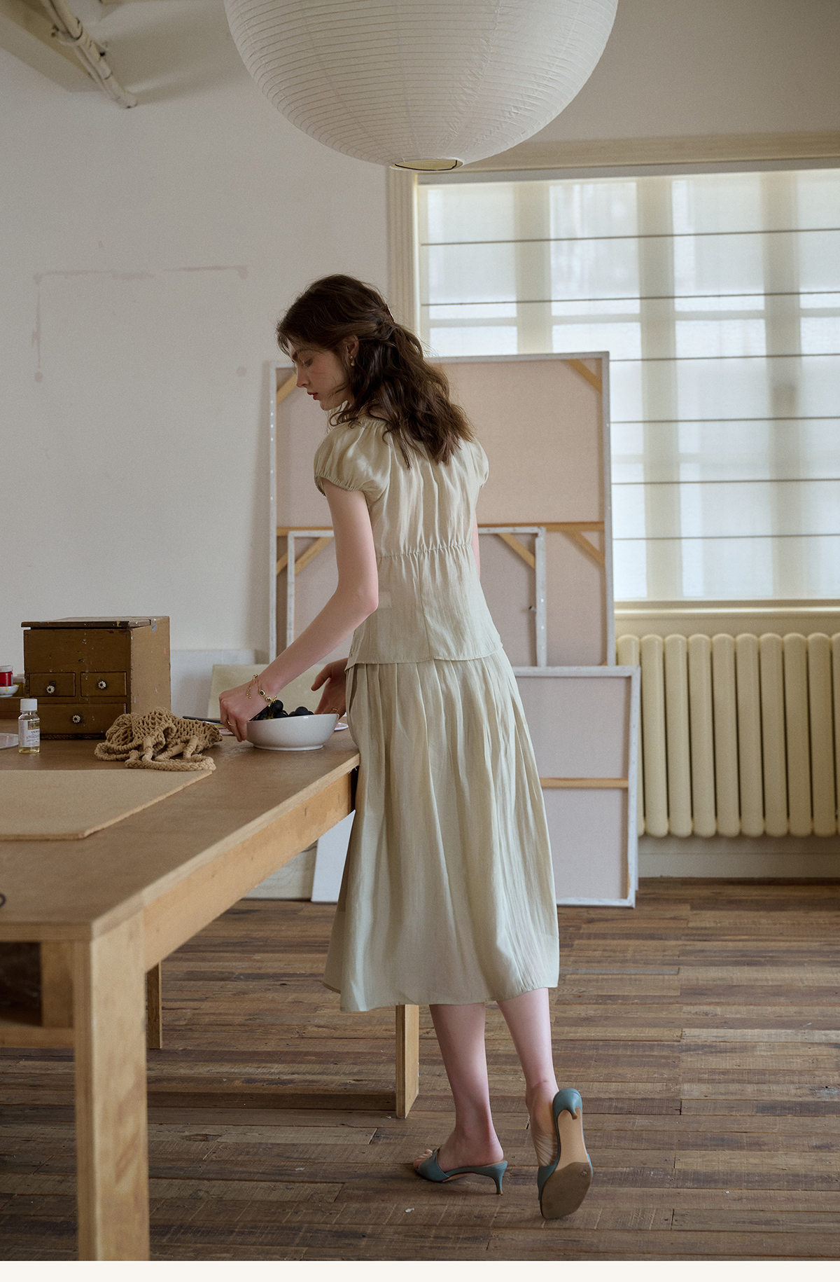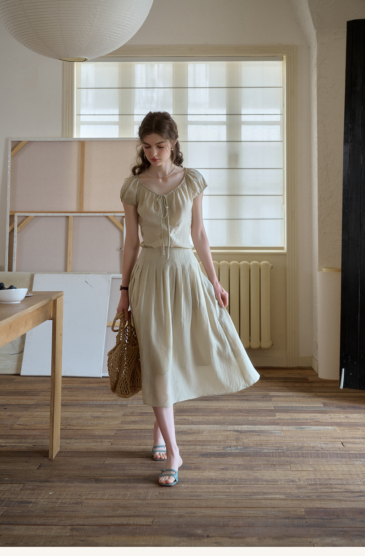 (小眠专属)SimpleRetro天丝复古V领植物系刺绣套装裙
