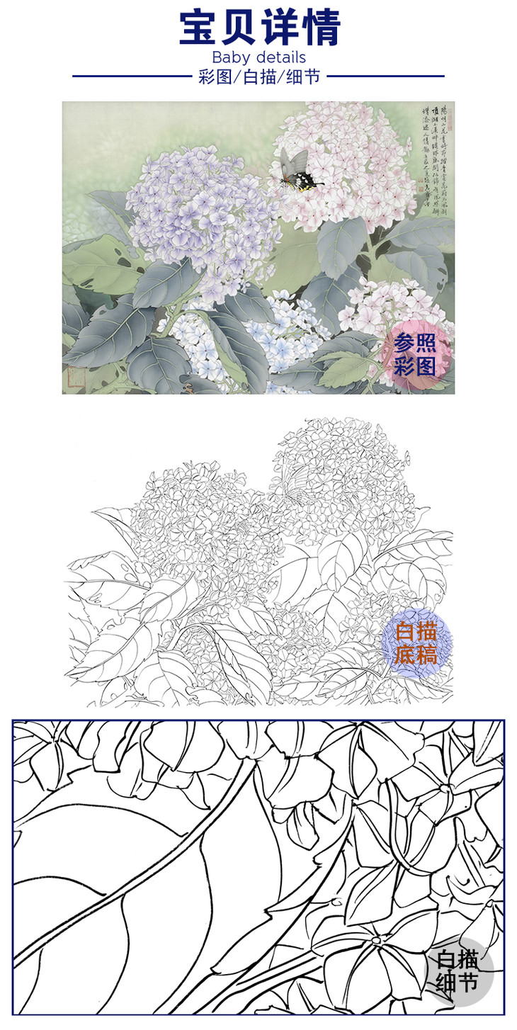 横幅工笔花鸟白描底稿-张克齐-绣球花-A515