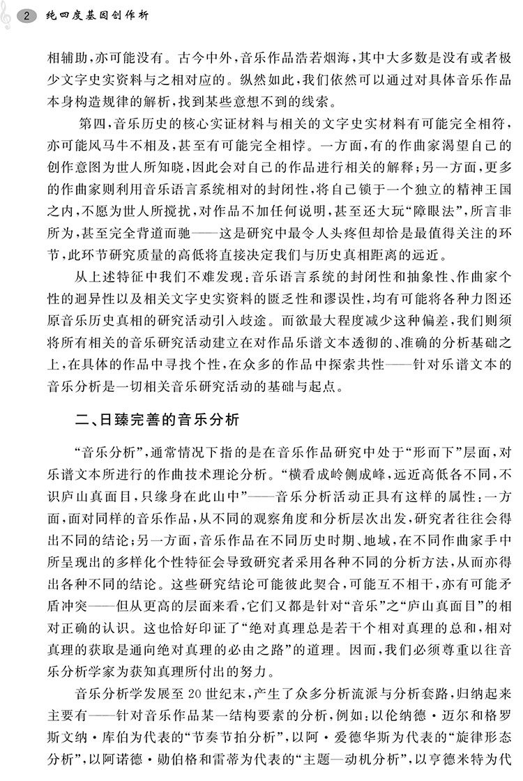 《纯四度基因创作析》从“纯音程四度”小小着眼点出发,追根溯源,旁征博引,上通下达,