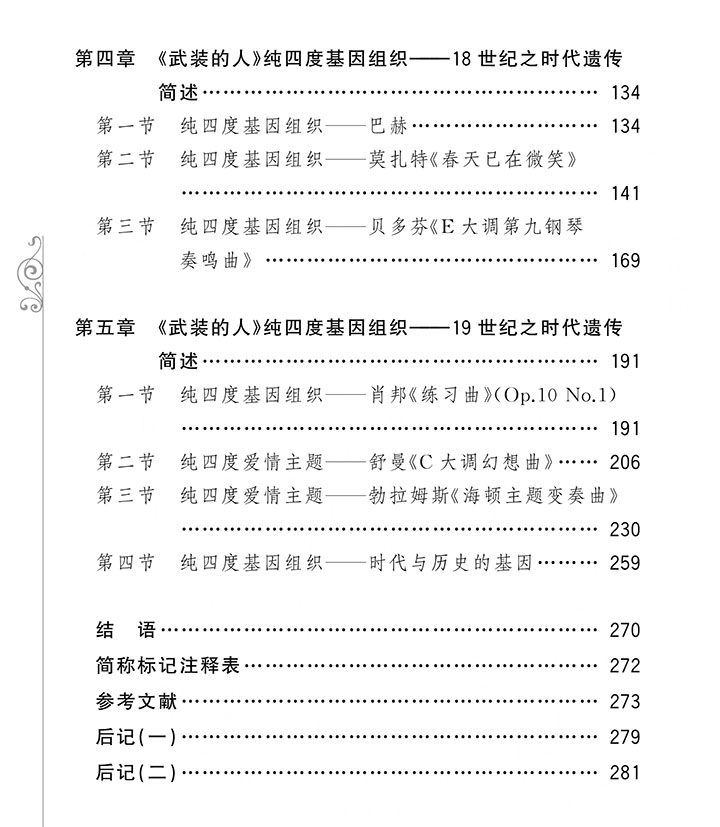 更进而拓展至莫扎特、贝多芬、舒伯特、萧邦、舒曼、李斯特、勃拉姆斯、格里格、德伏夏克、瓦格纳等从十八九世纪作曲家大量作品的分析,总结出纯四度核心元素在长时期音乐历史
