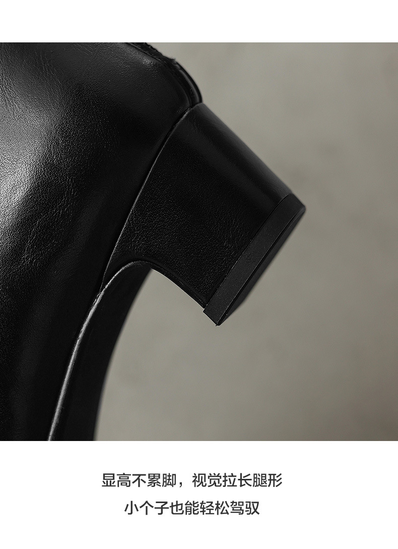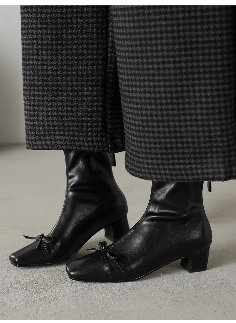 学院风蝴蝶结4cm中跟粗跟后拉链短筒马丁靴方头弹力瘦瘦靴女2025 商品图4