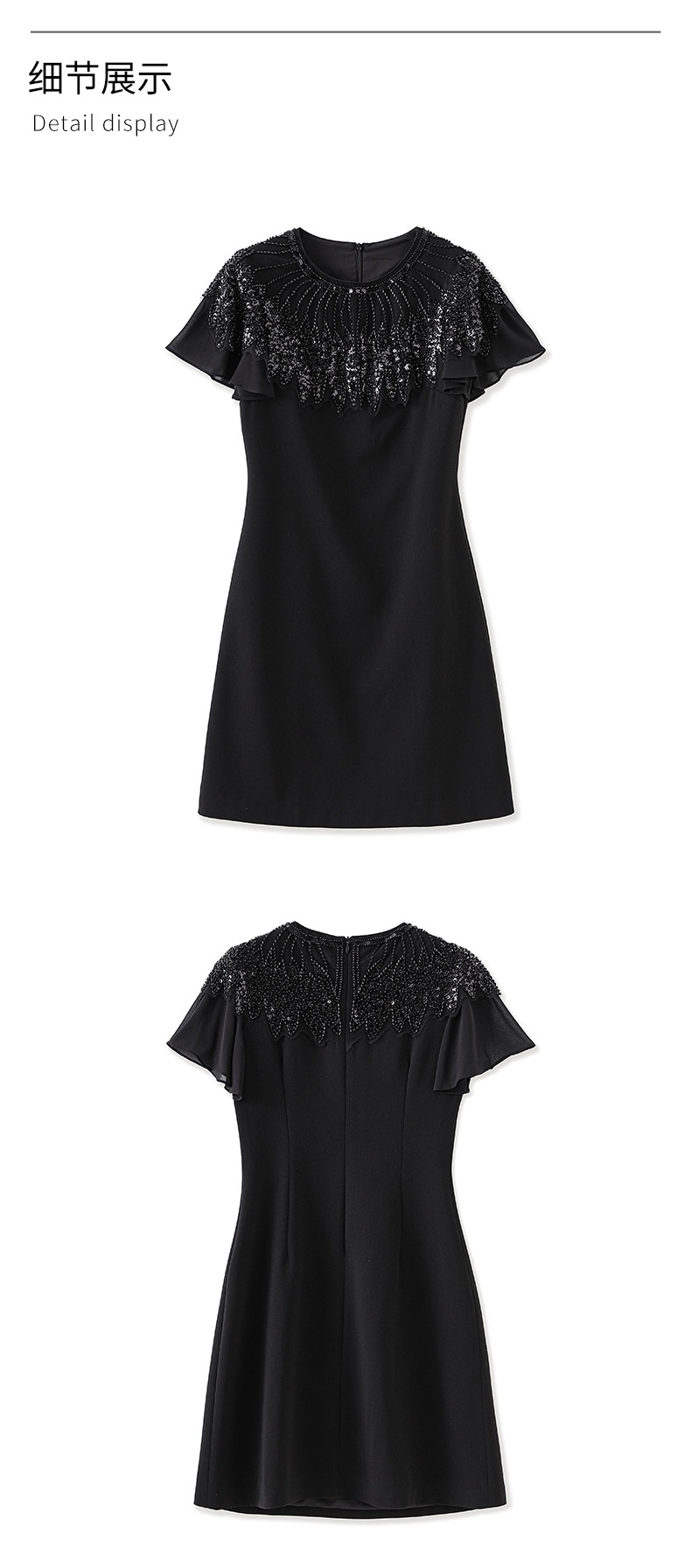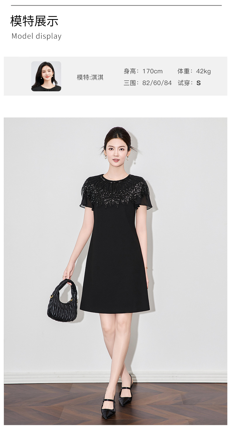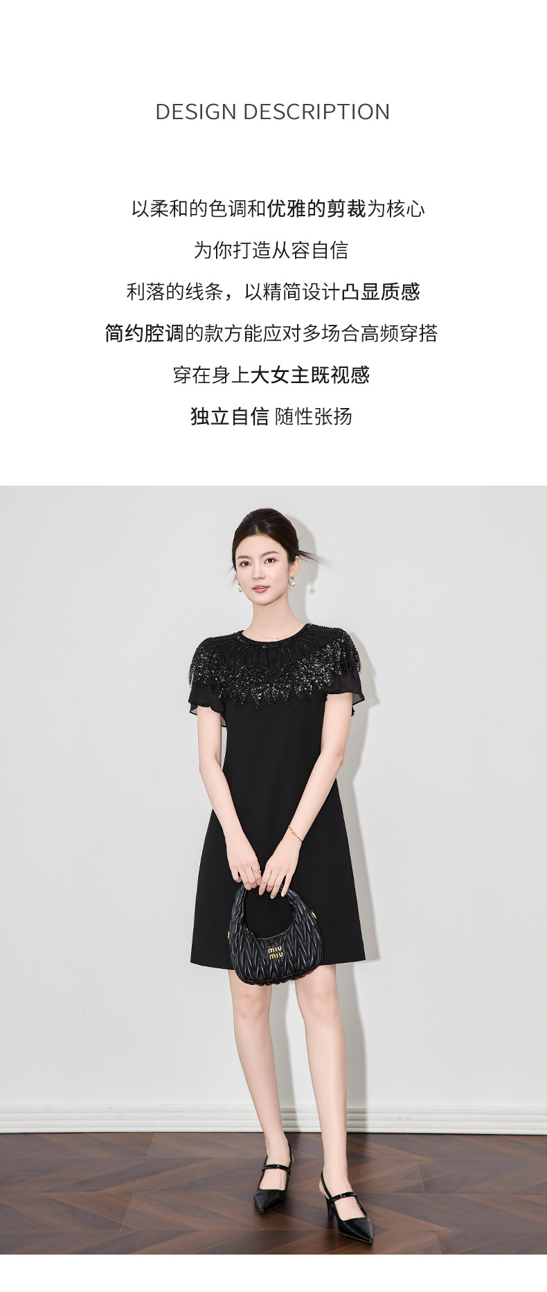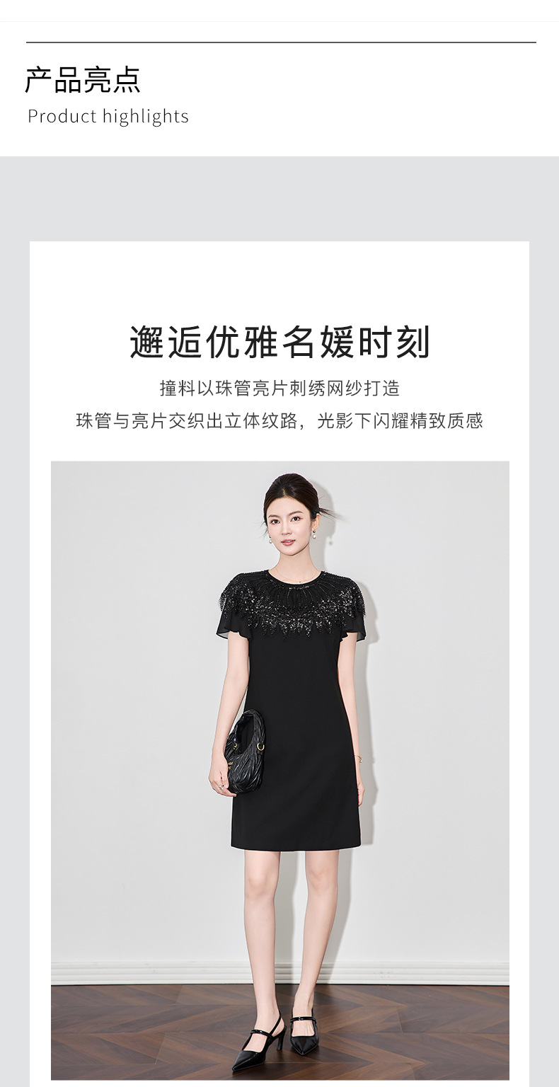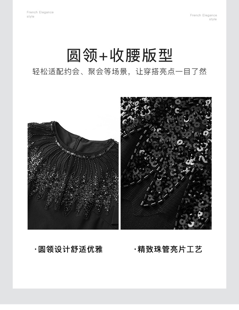 「高货wl」全新升级【铂金会员330/天猫439/差价109】(20137)洛诗琳法式轻奢名媛气质圆领重工钉珠亮片刺绣网纱连衣裙