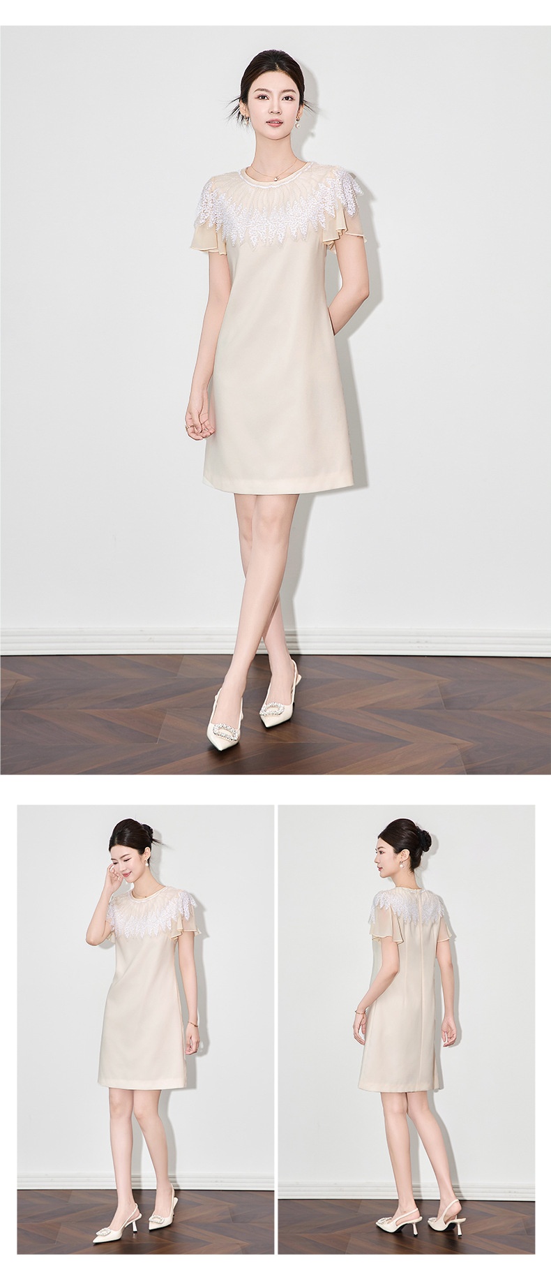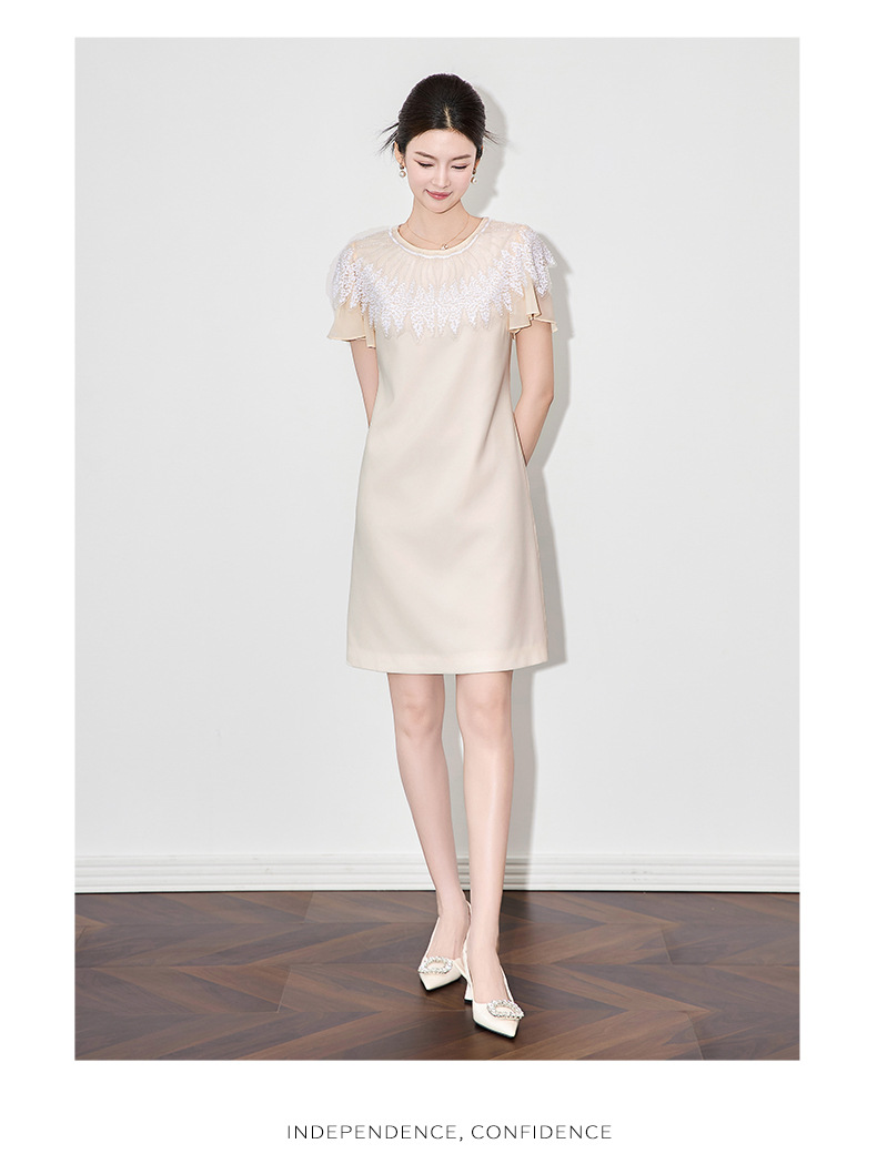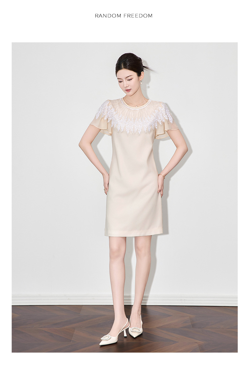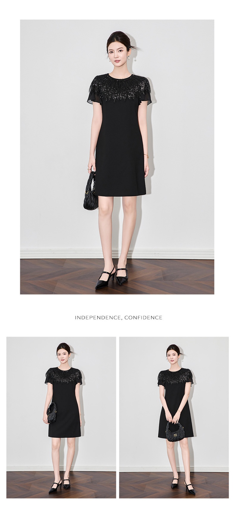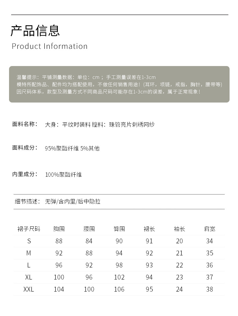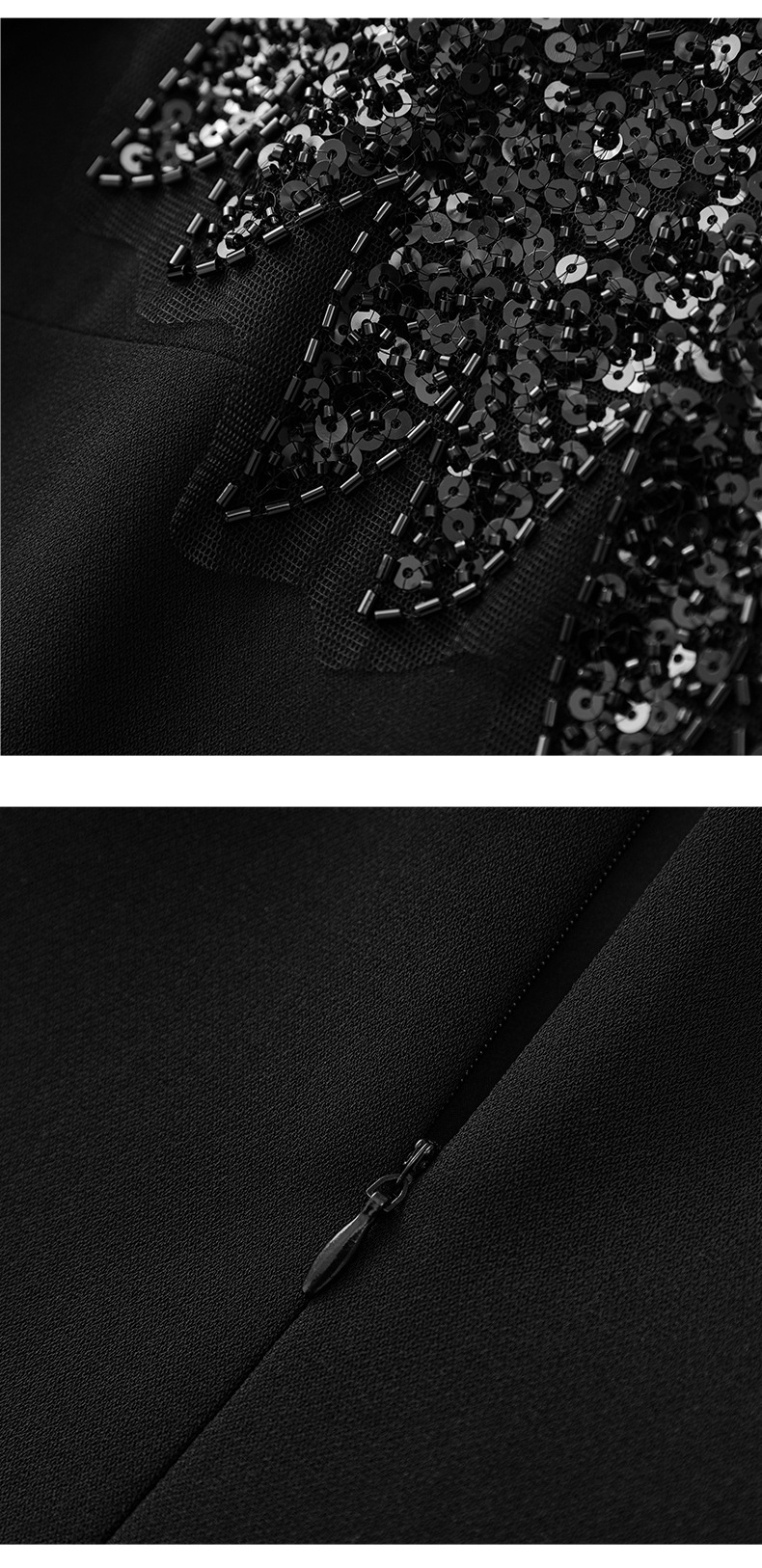 「高货wl」全新升级【铂金会员330/天猫439/差价109】(20137)洛诗琳法式轻奢名媛气质圆领重工钉珠亮片刺绣网纱连衣裙