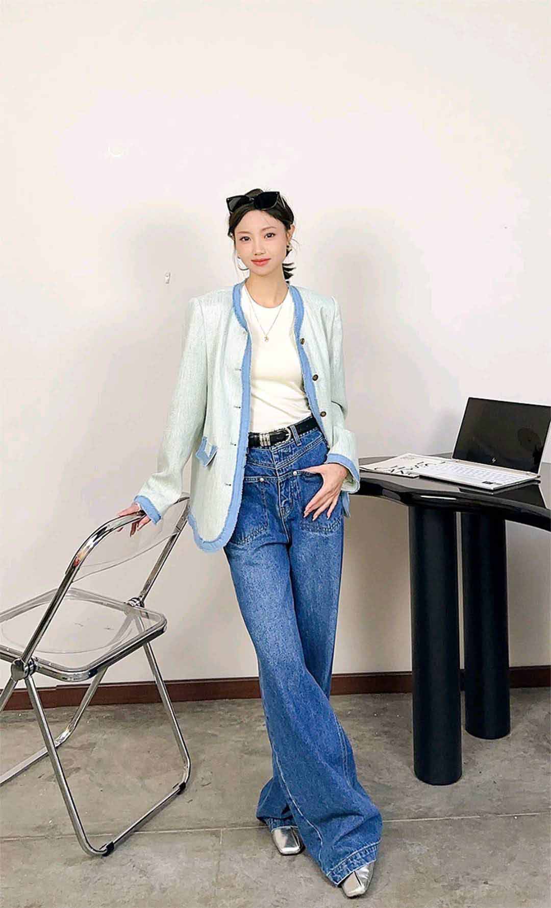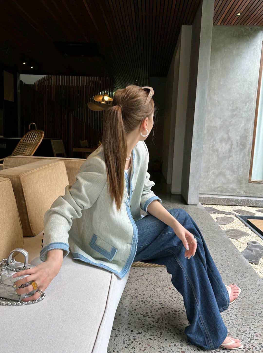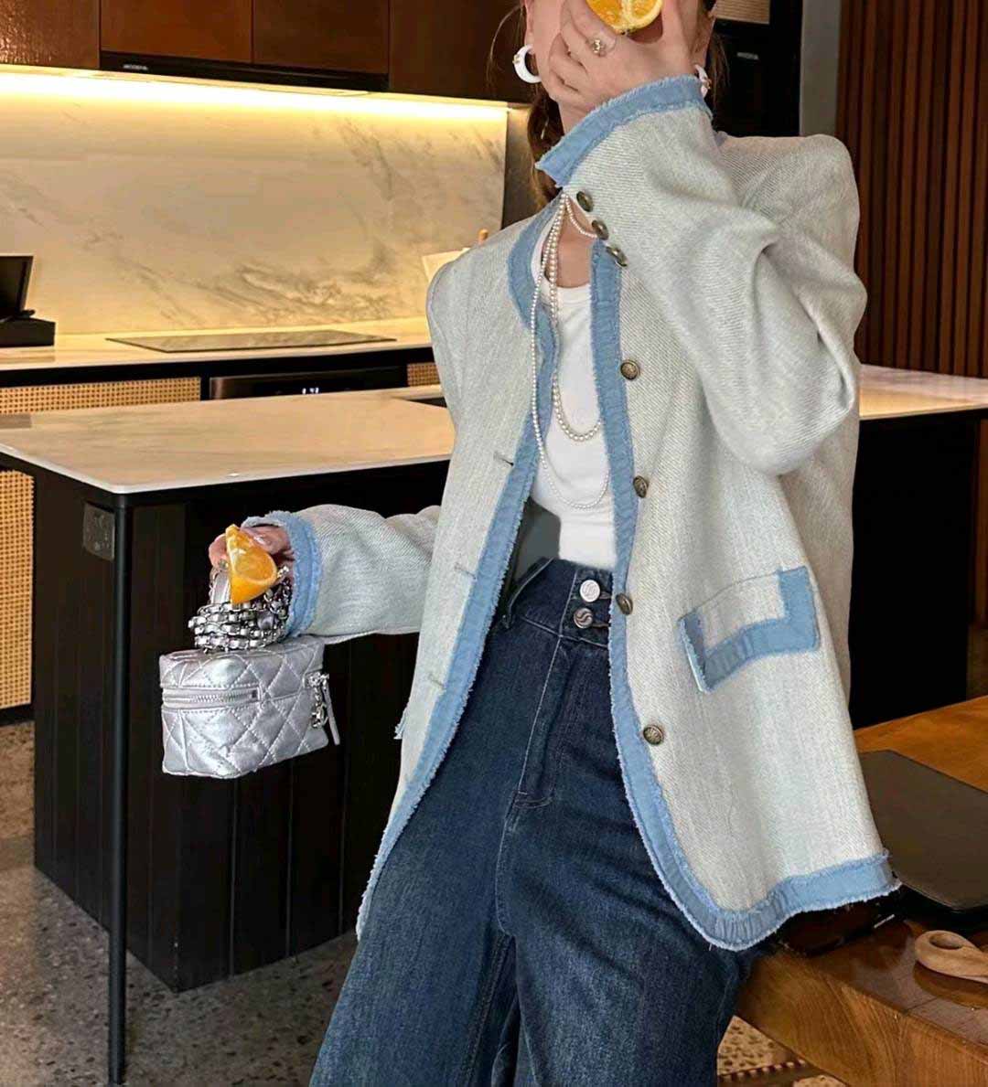 牛仔布和精致小香风的结合,既有型又不拘一格,