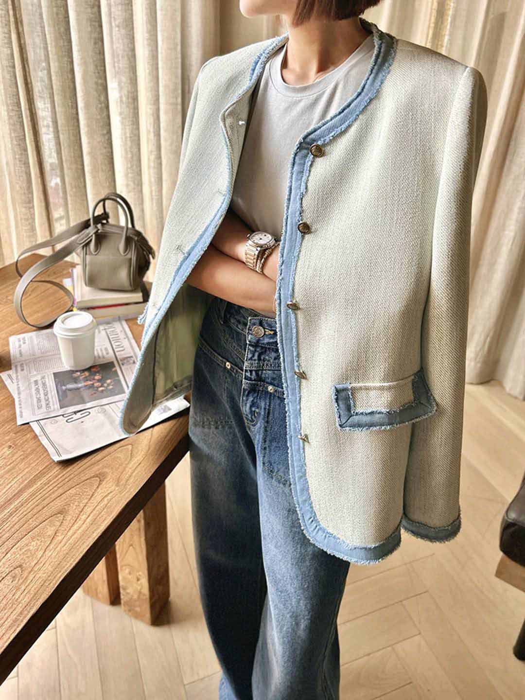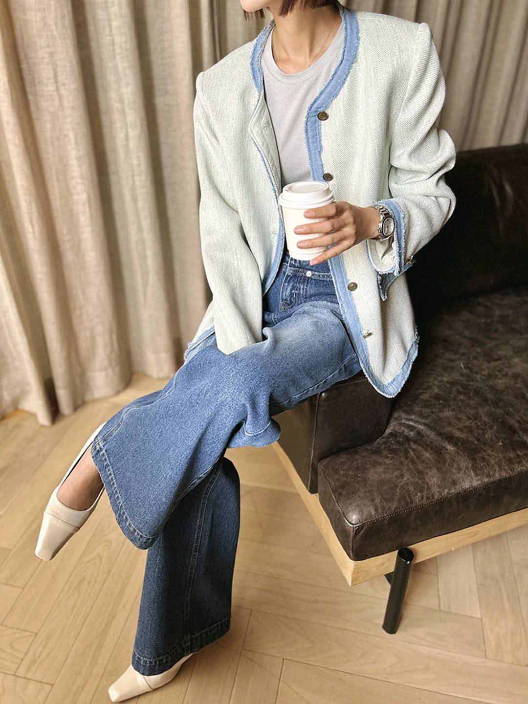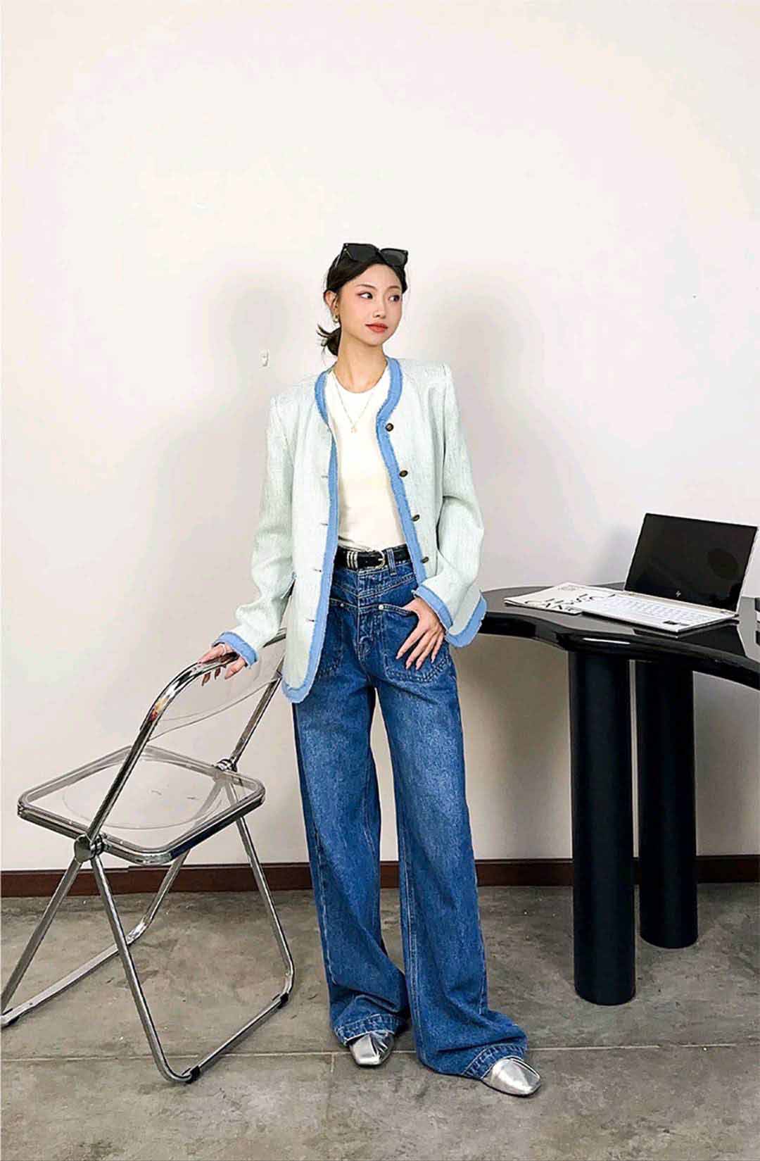 牛仔布和精致小香风的结合,既有型又不拘一格,