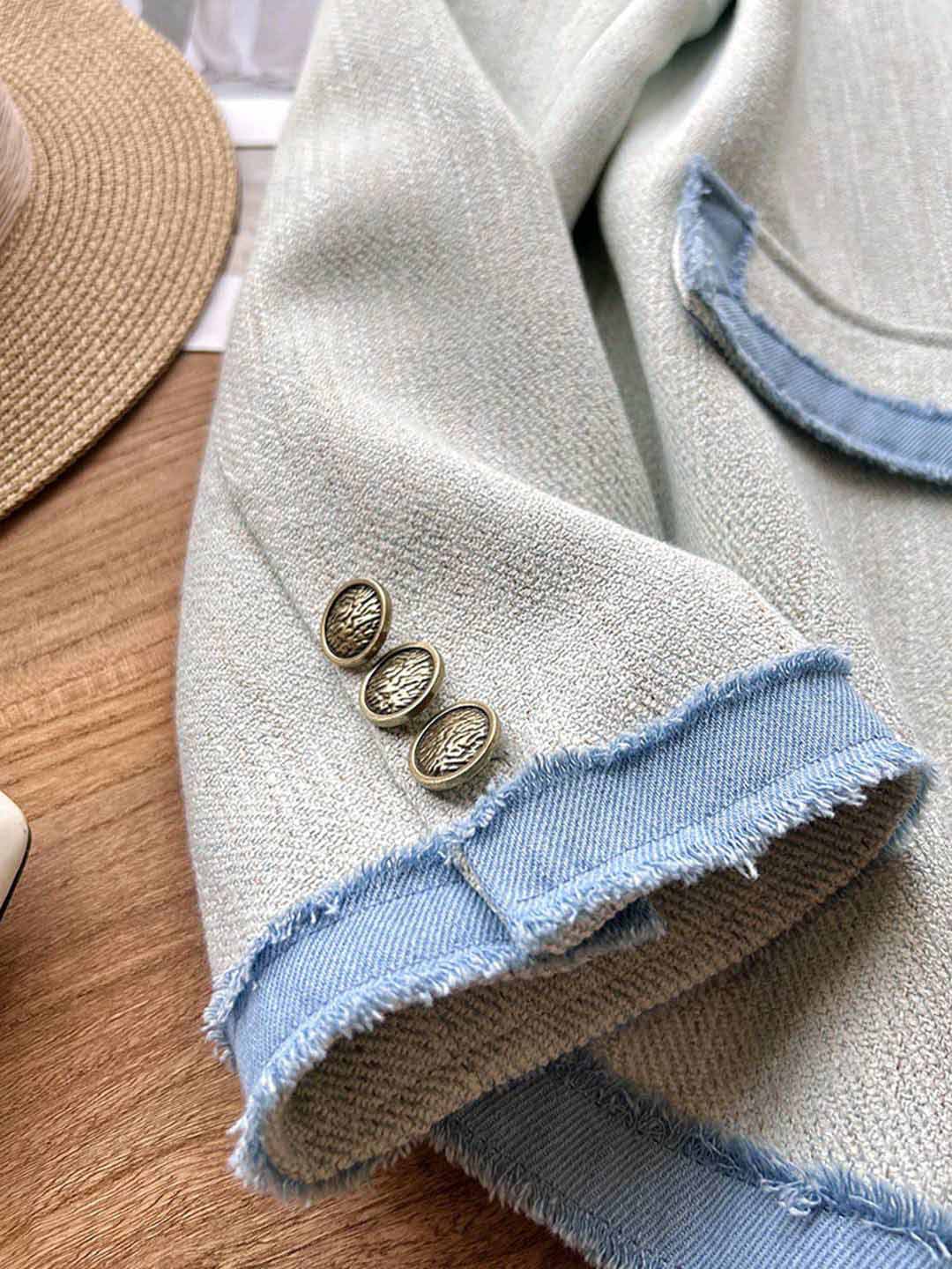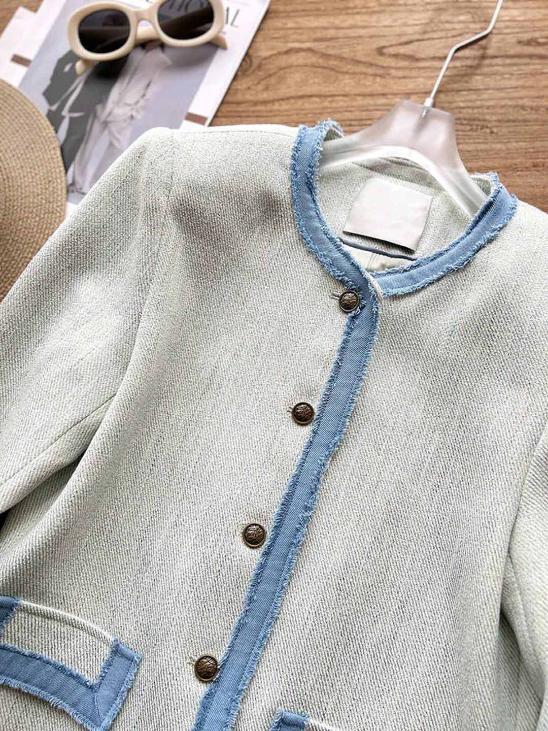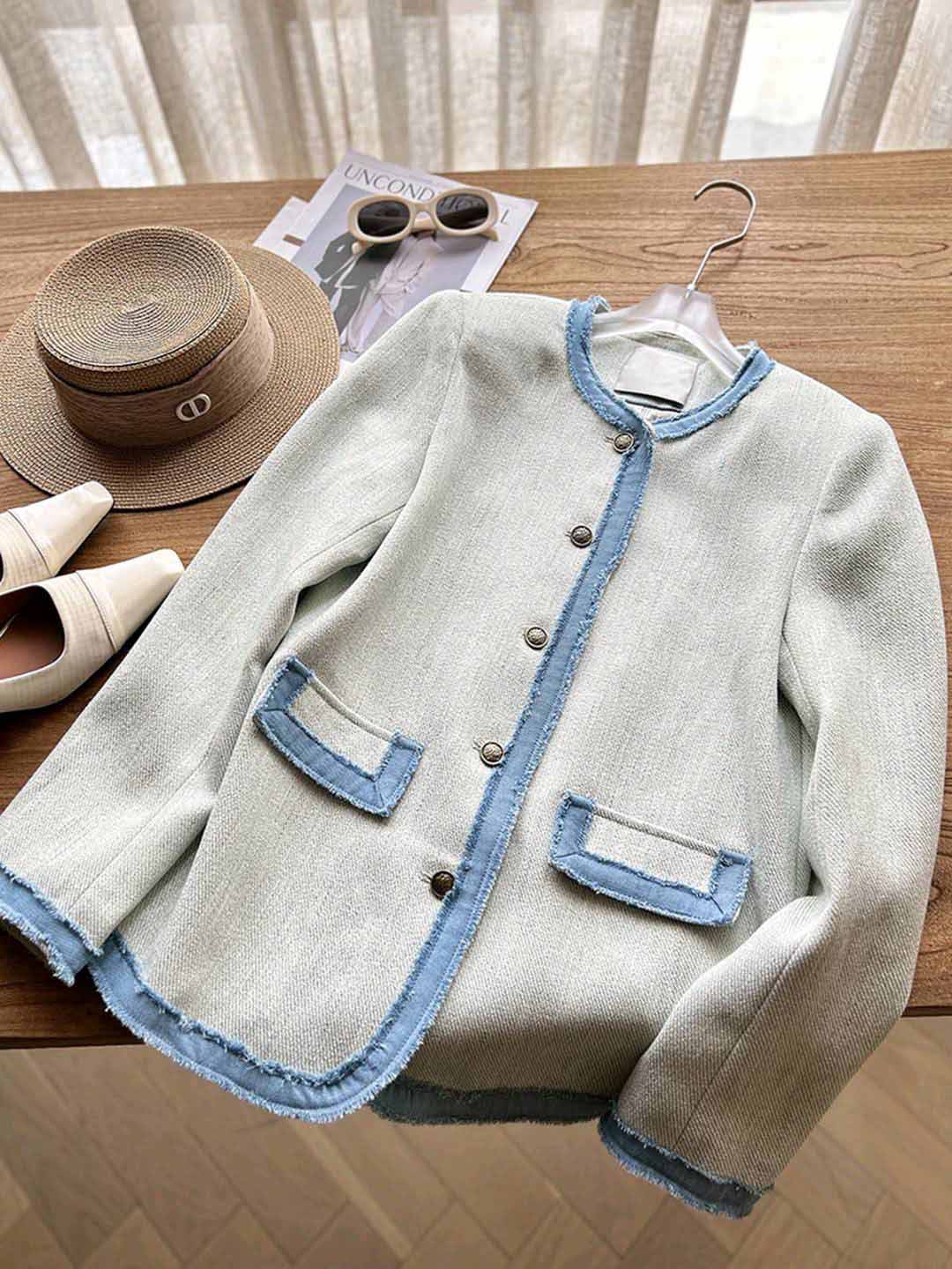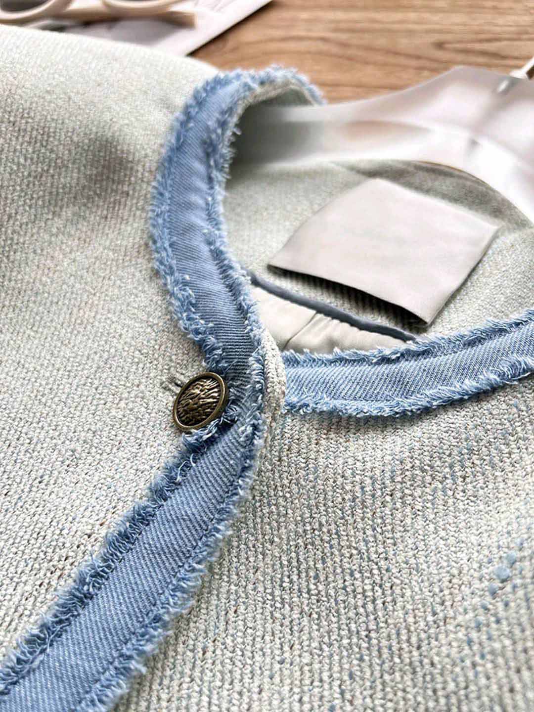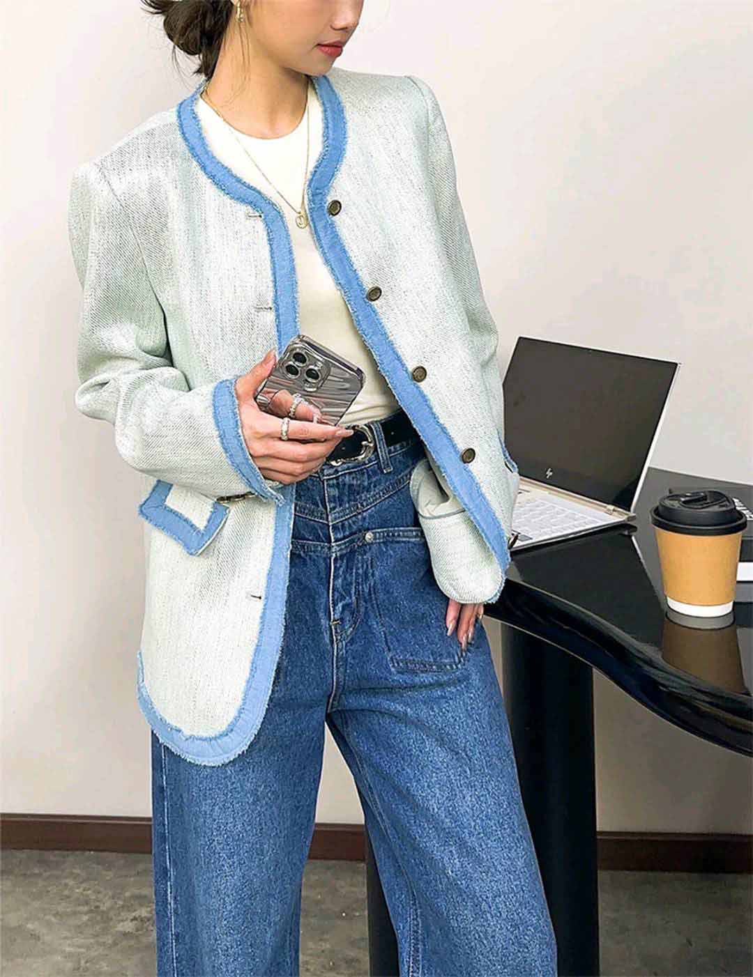 浅蓝色真的超级显白,撞色小香风穿起来既随性又有点优雅的小心机