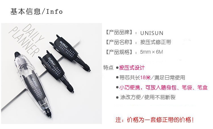 UNISUN 修正带 替芯5个装 涂改方便,使用不易断裂