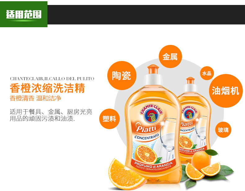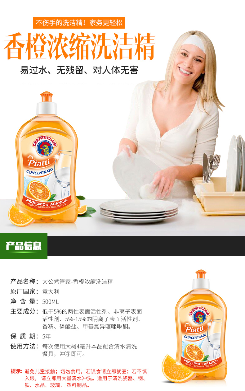 CHANTECLAIR 大公鸡管家 浓缩香橙洗洁精 护手润肤 (意大利进口) 500ml