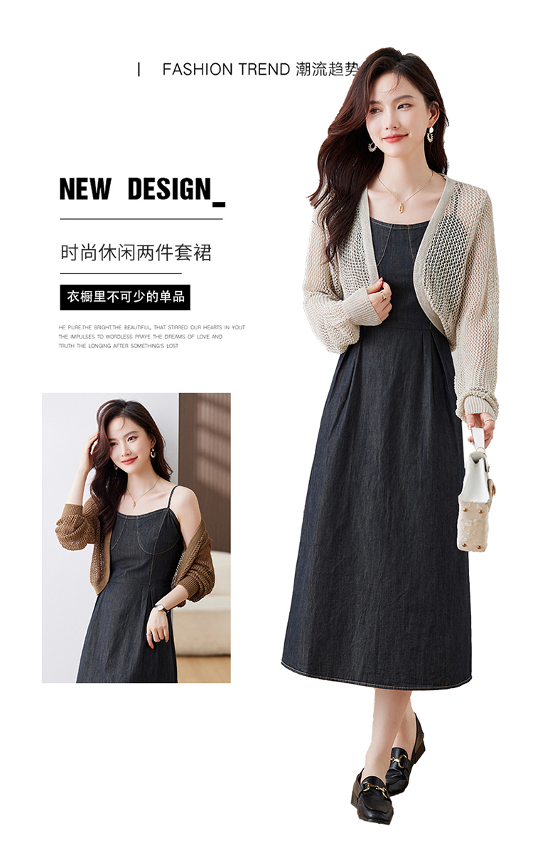 时尚优雅,开衫吊带连衣裙两件套HR-MEIQIN9112
