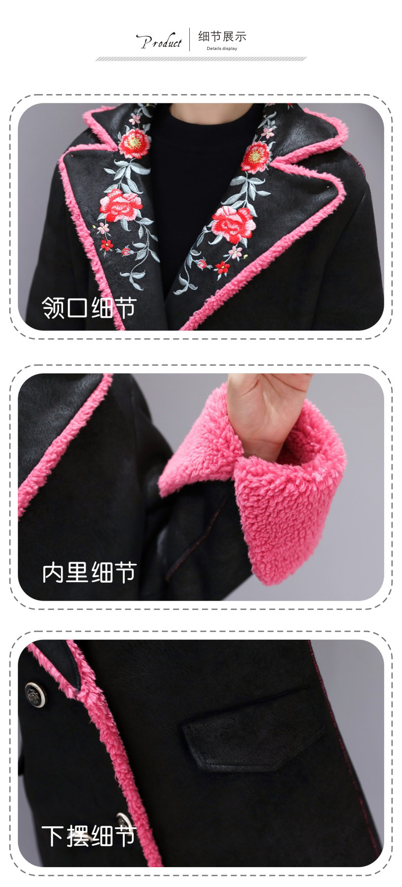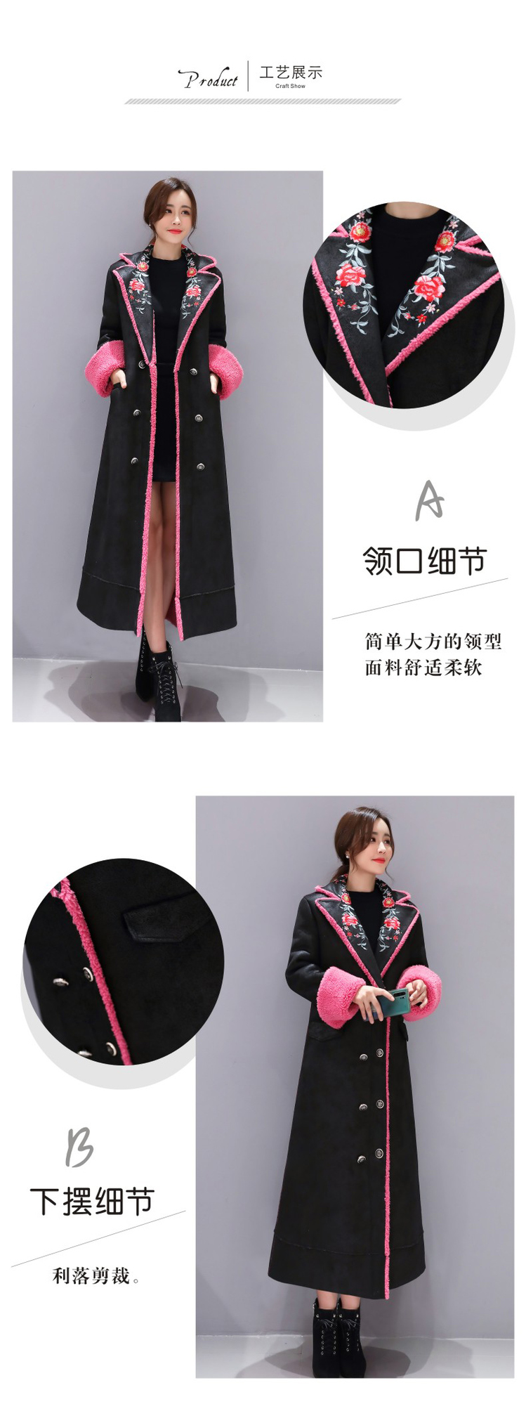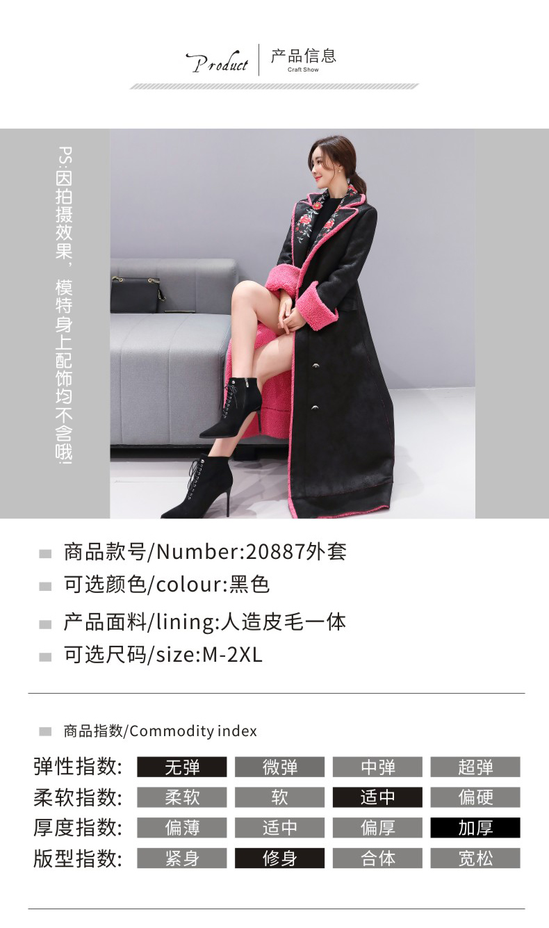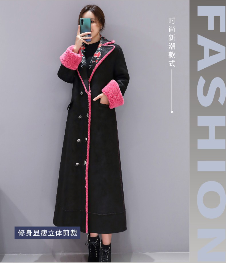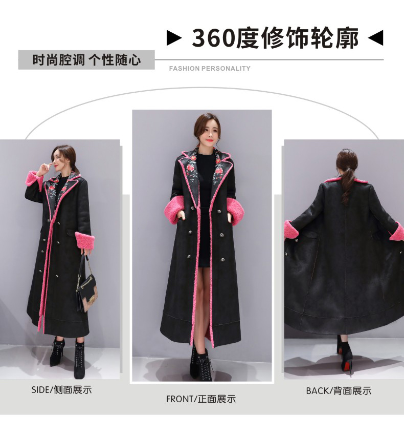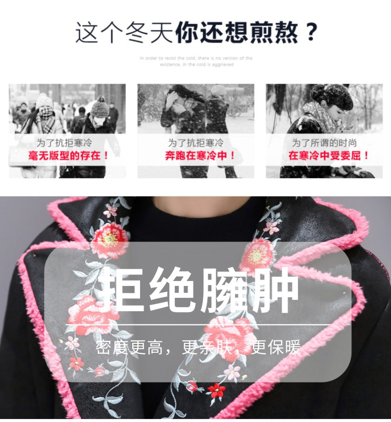WZNH-ZMFS20887冬装新款皮毛一体加毛加厚中长款外套绣花