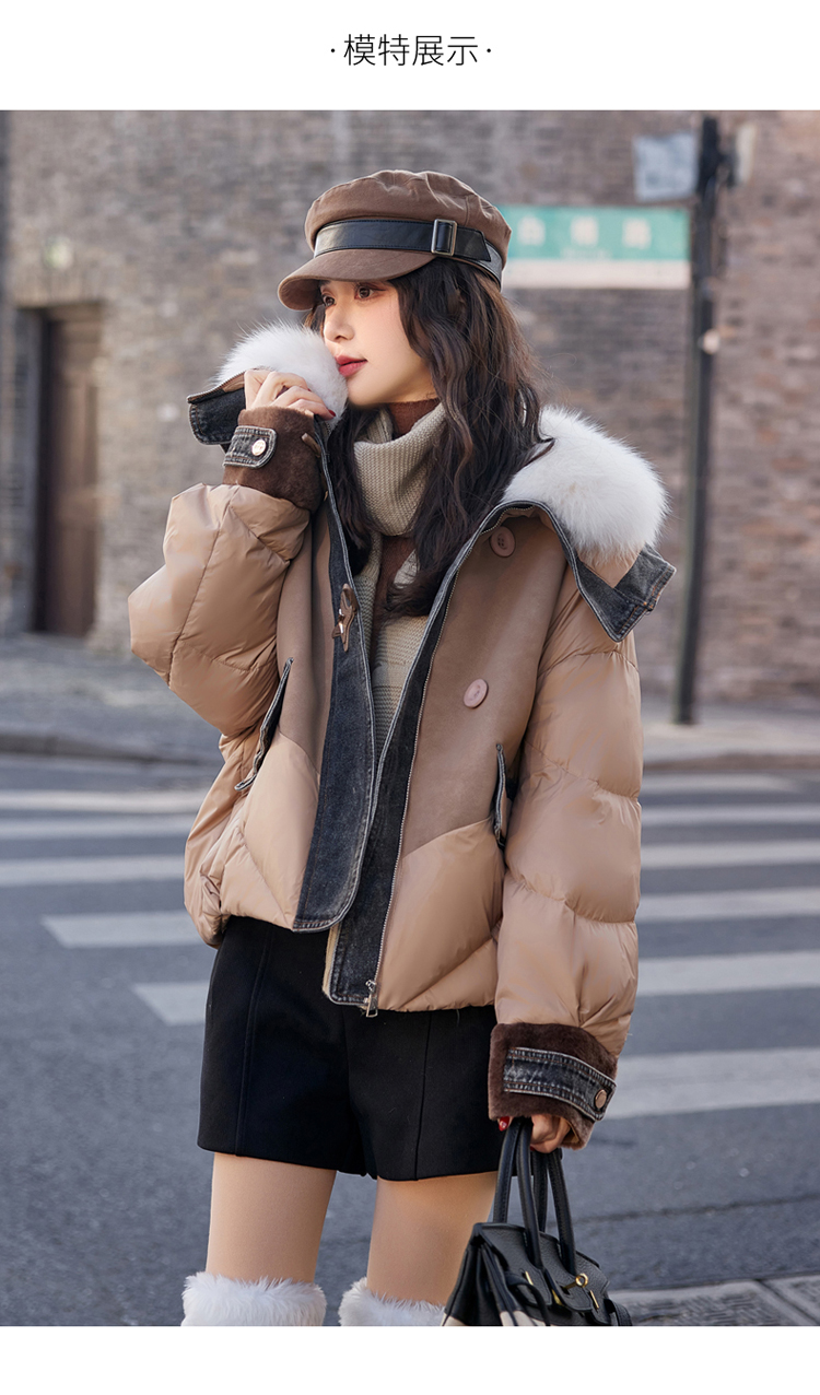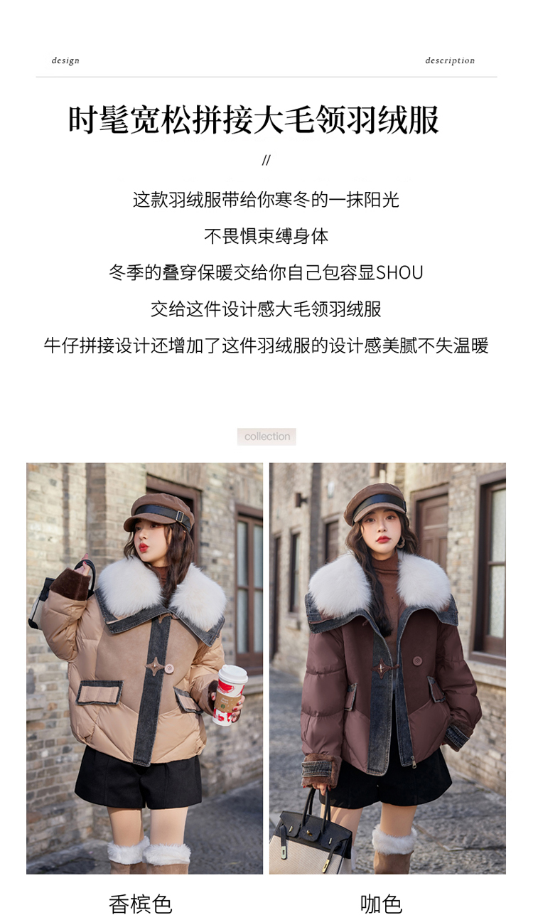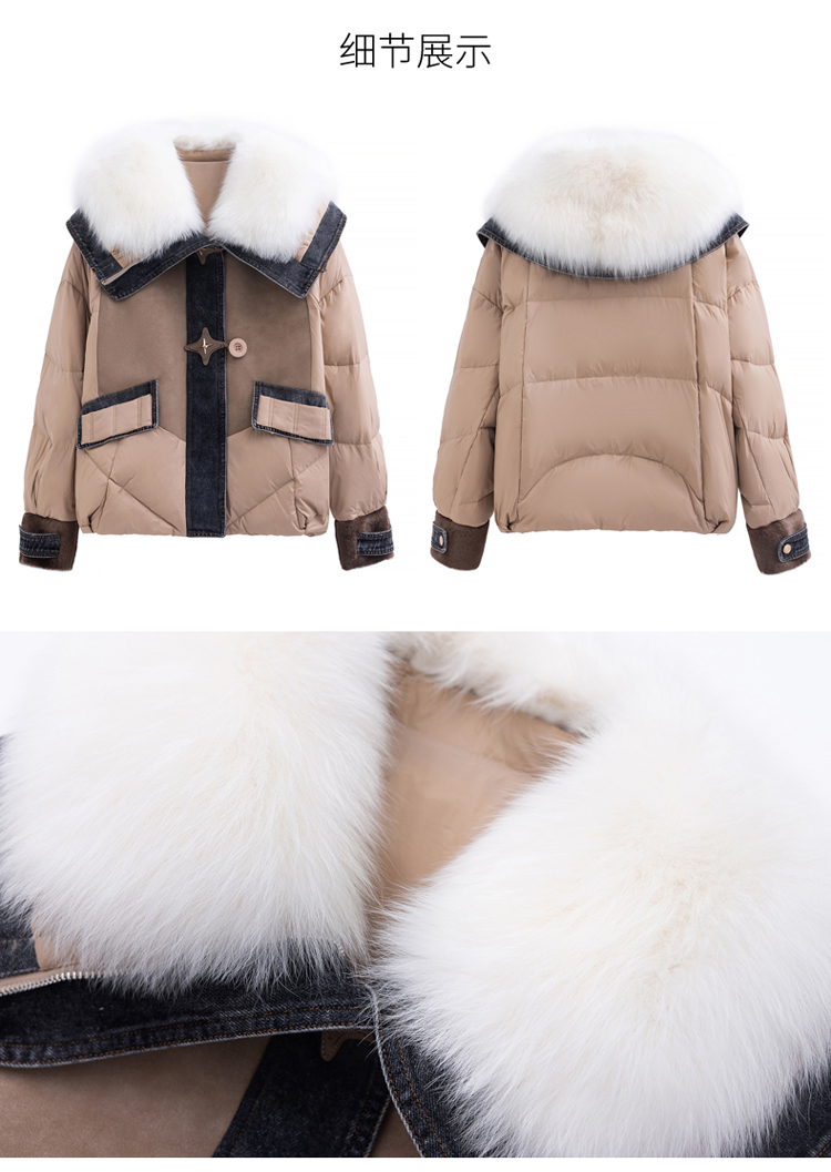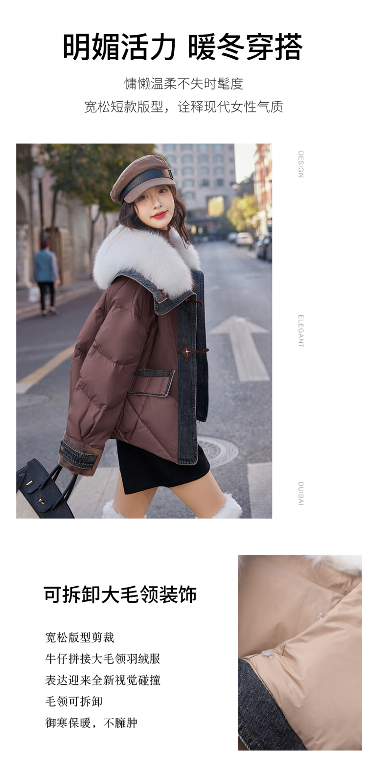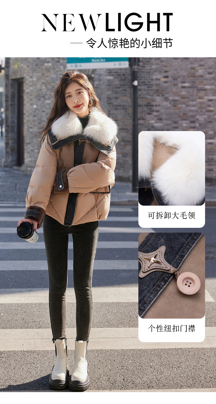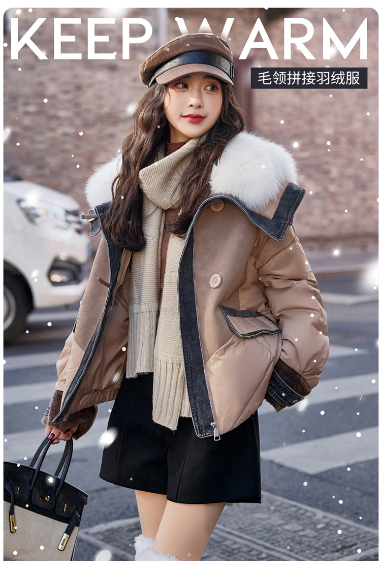 冬季新款,时尚休闲拼接短款白鸭绒大毛领羽绒服外套HR-CZJ3391