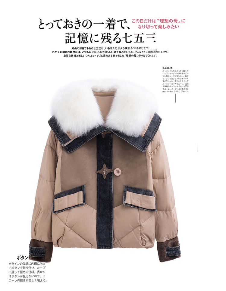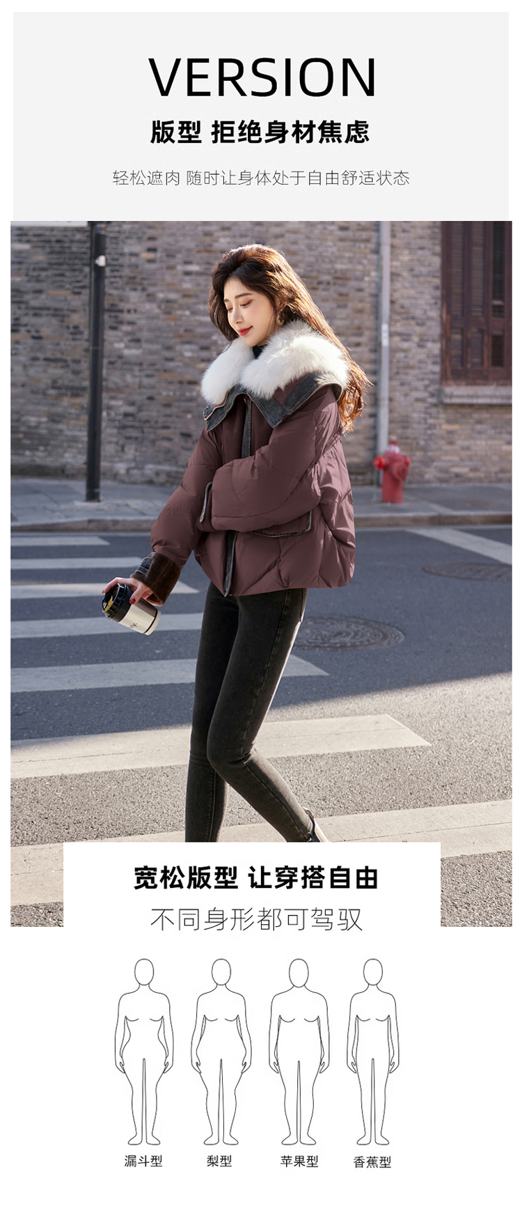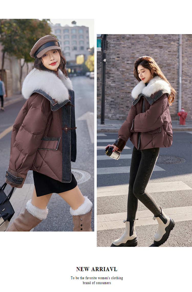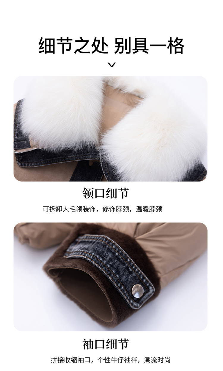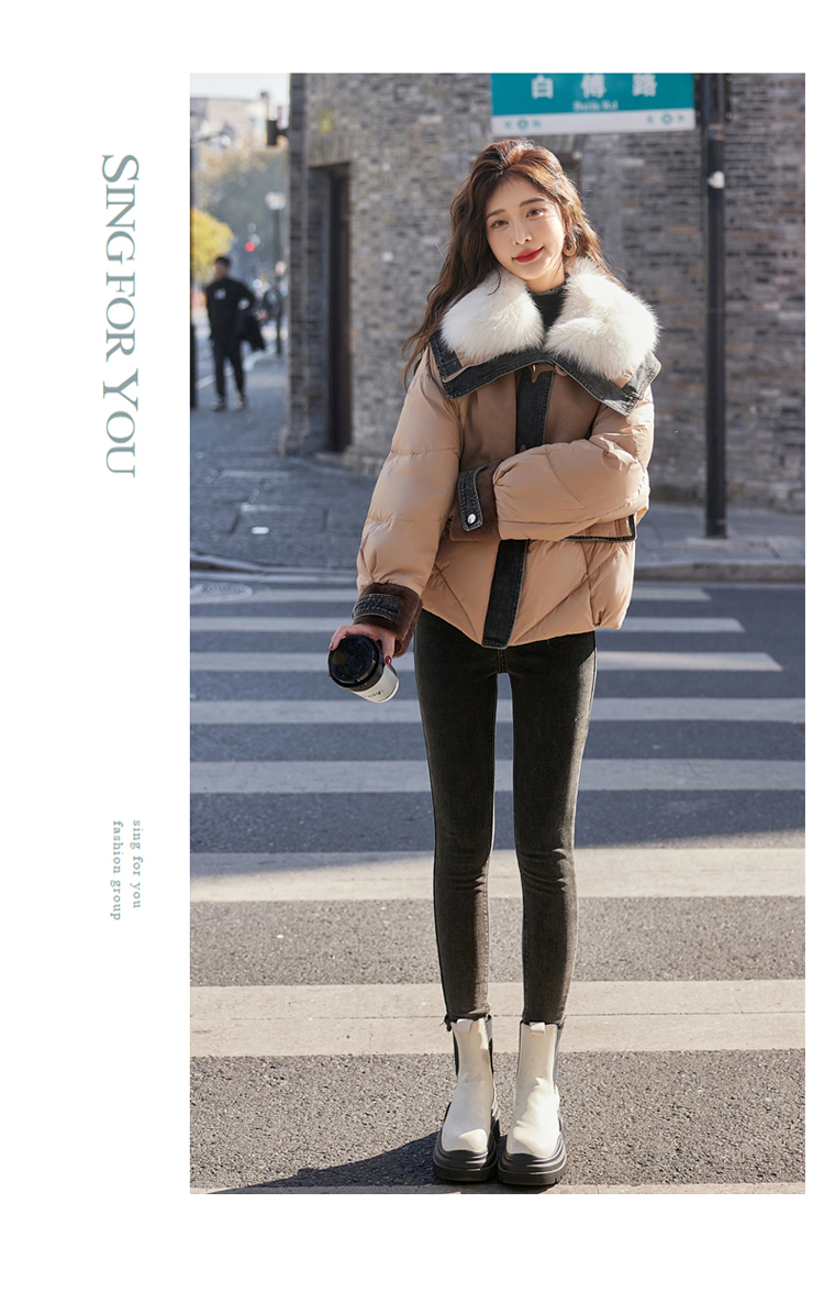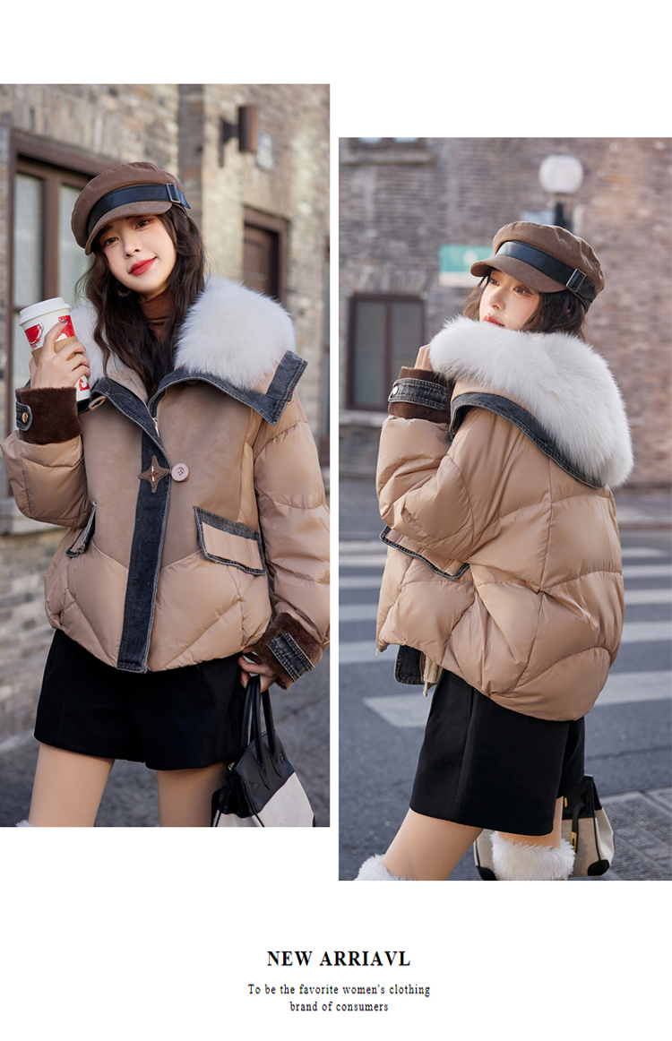 冬季新款,时尚休闲拼接短款白鸭绒大毛领羽绒服外套HR-CZJ3391