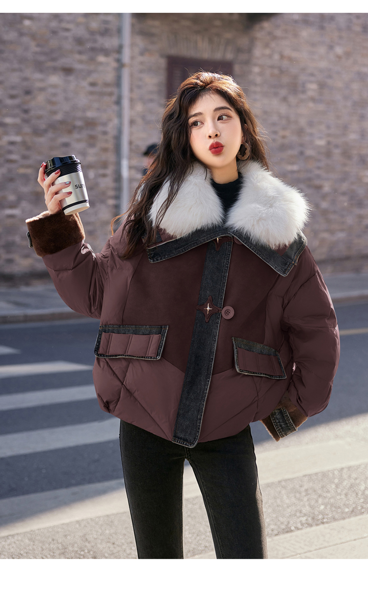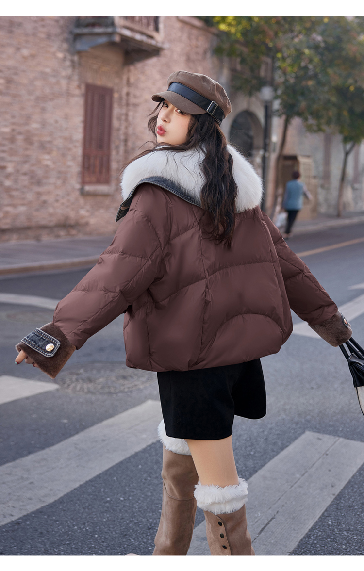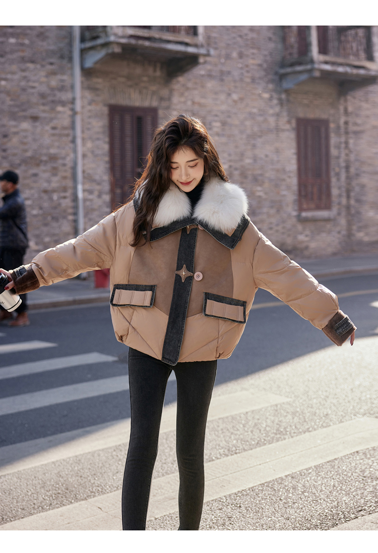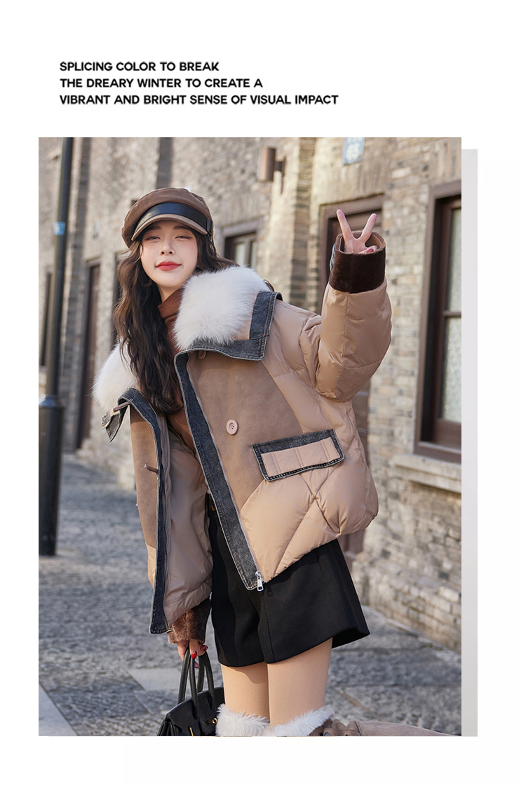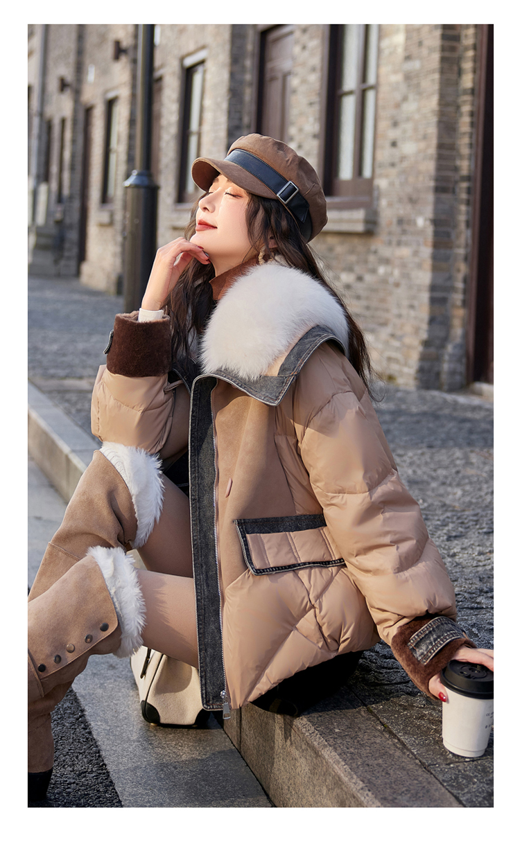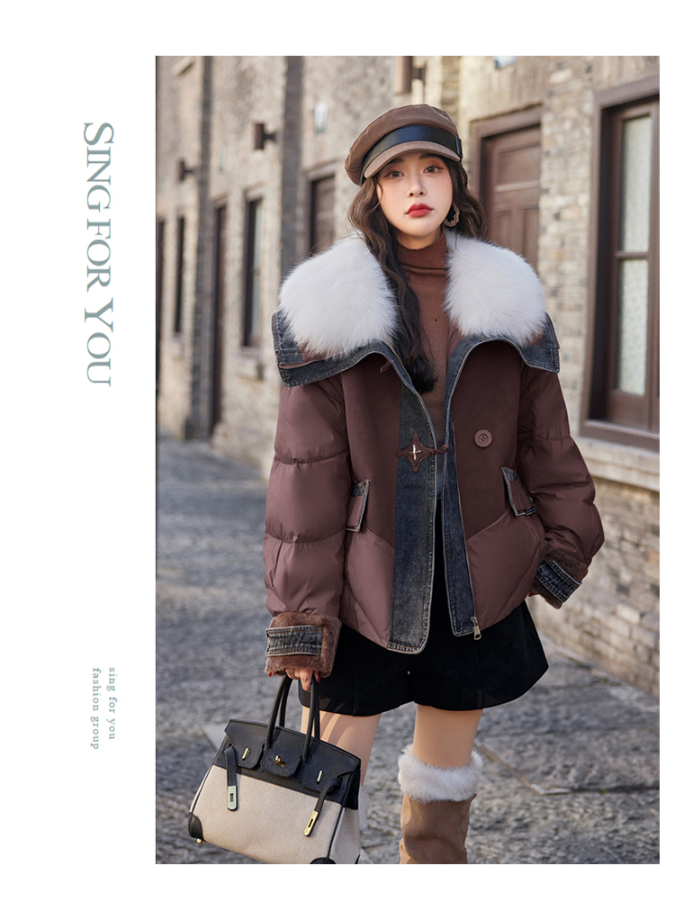 冬季新款,时尚休闲拼接短款白鸭绒大毛领羽绒服外套HR-CZJ3391