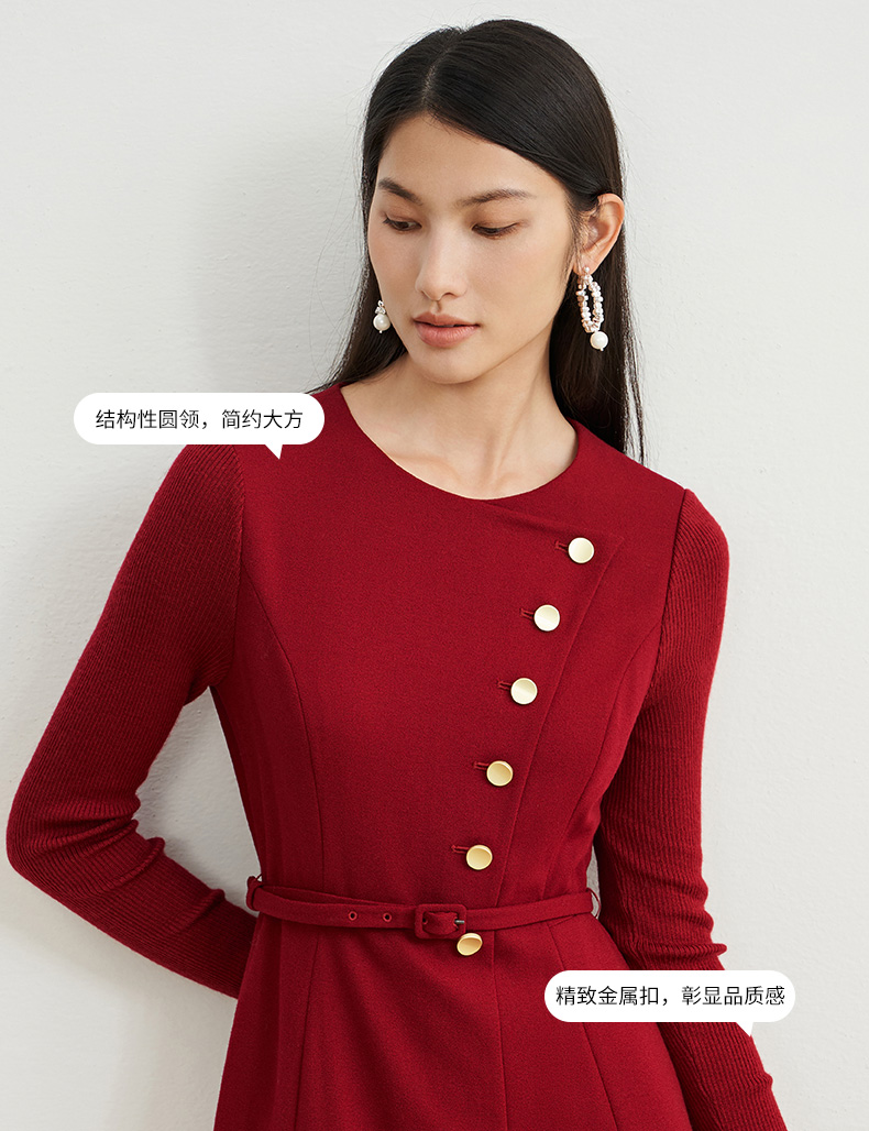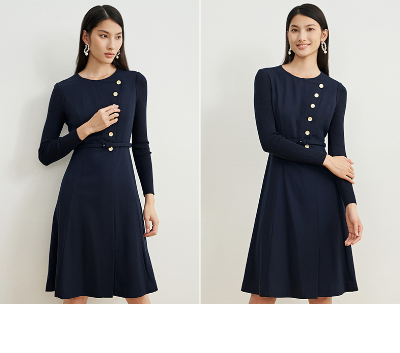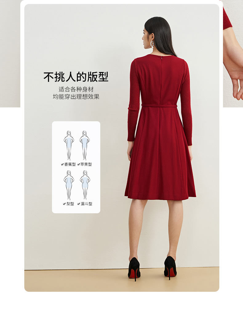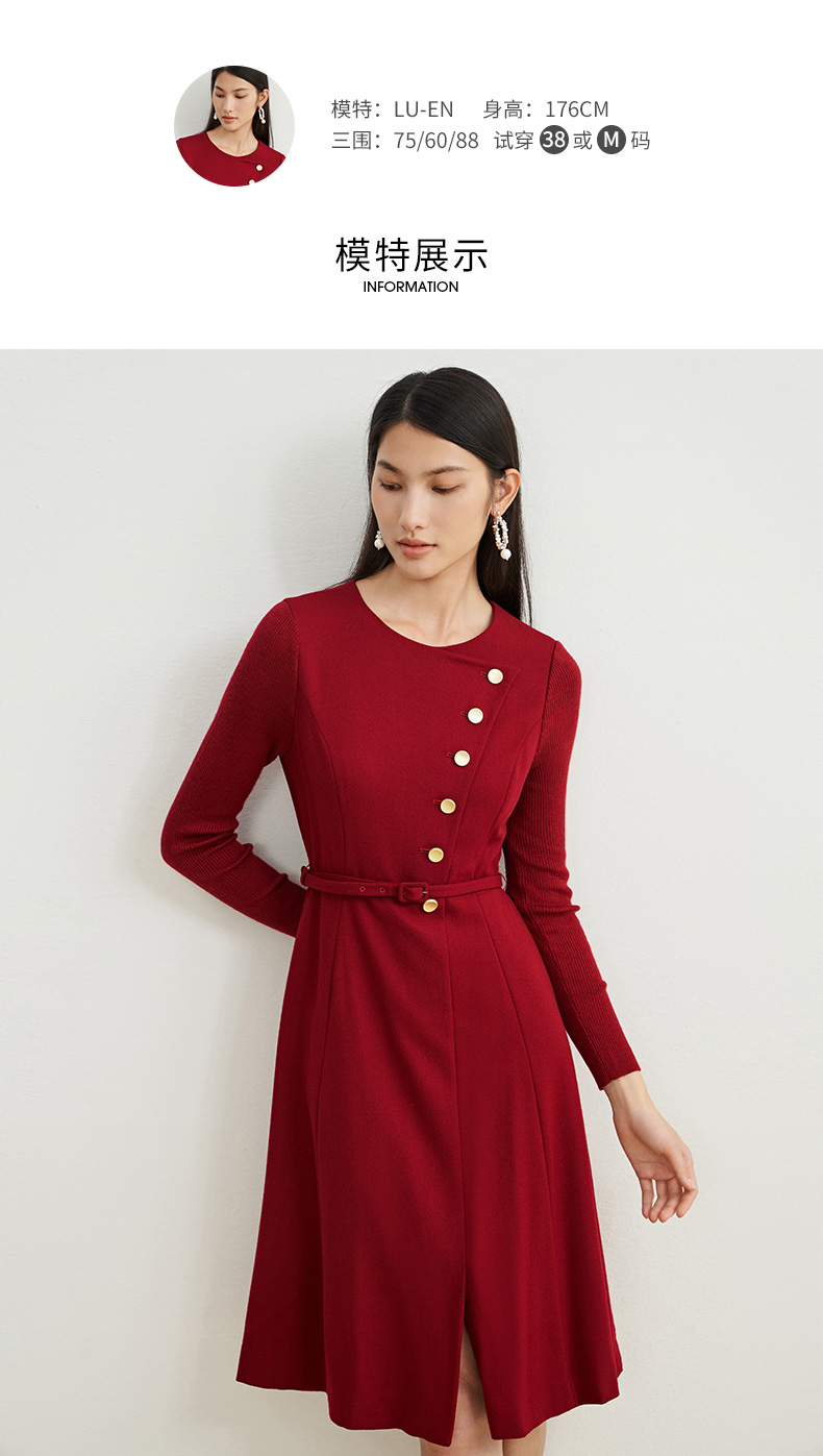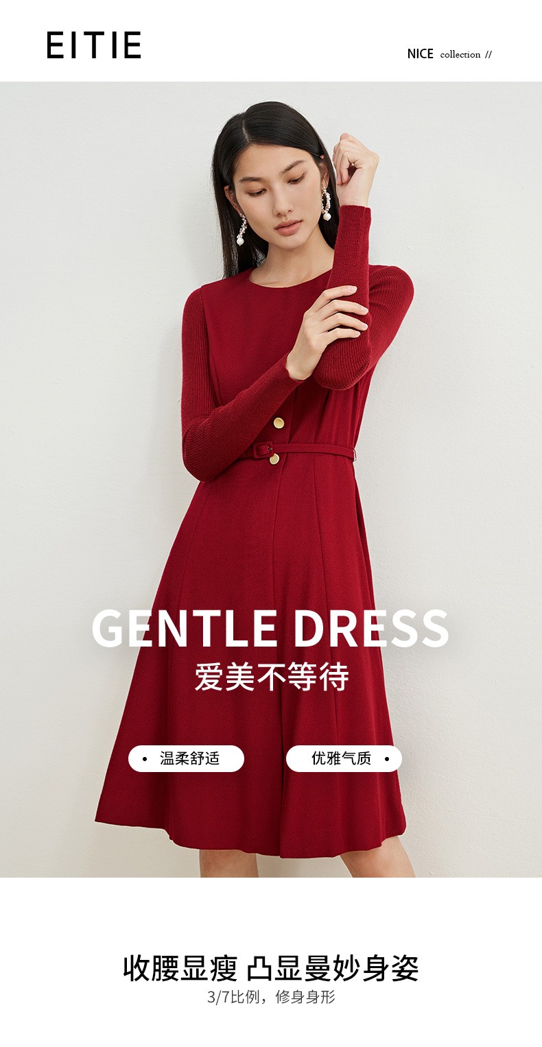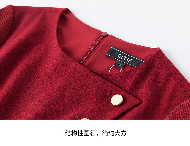 EITIE爱特爱冬季圆领收腰显瘦通勤连衣裙6807531(注意要干洗)