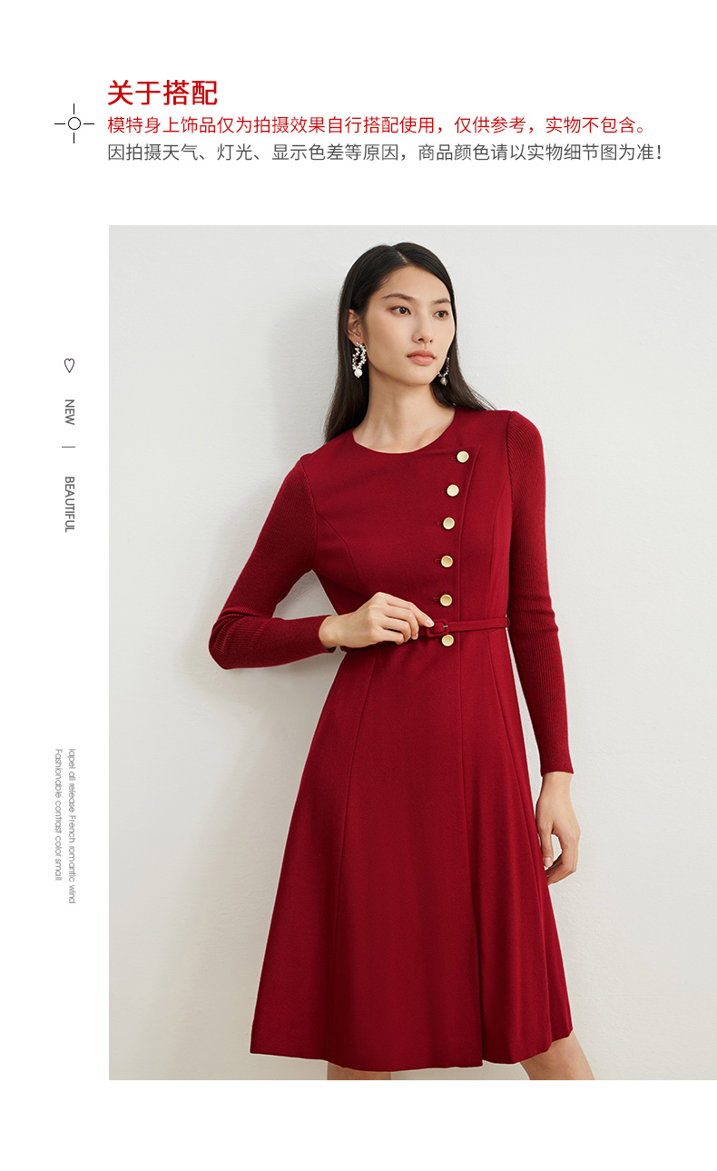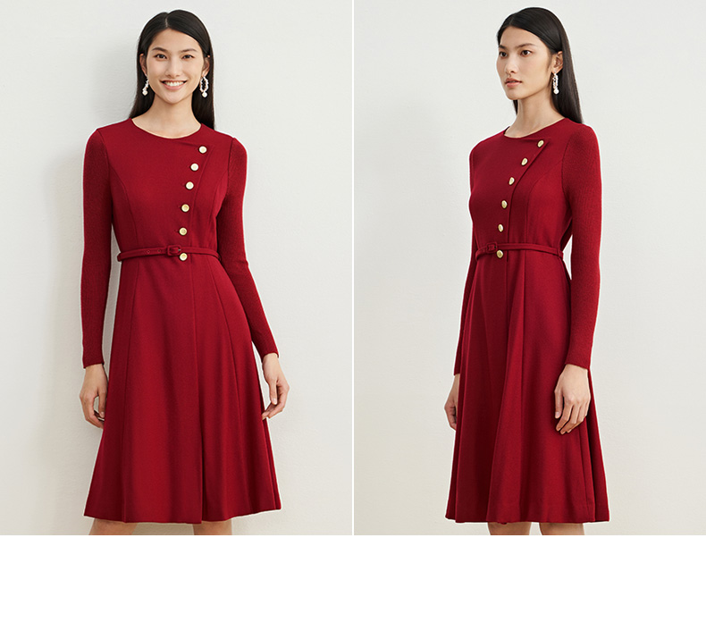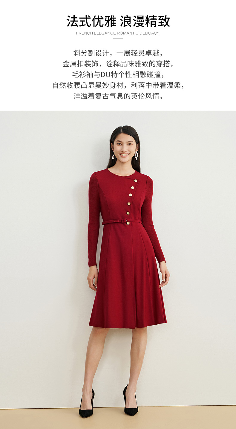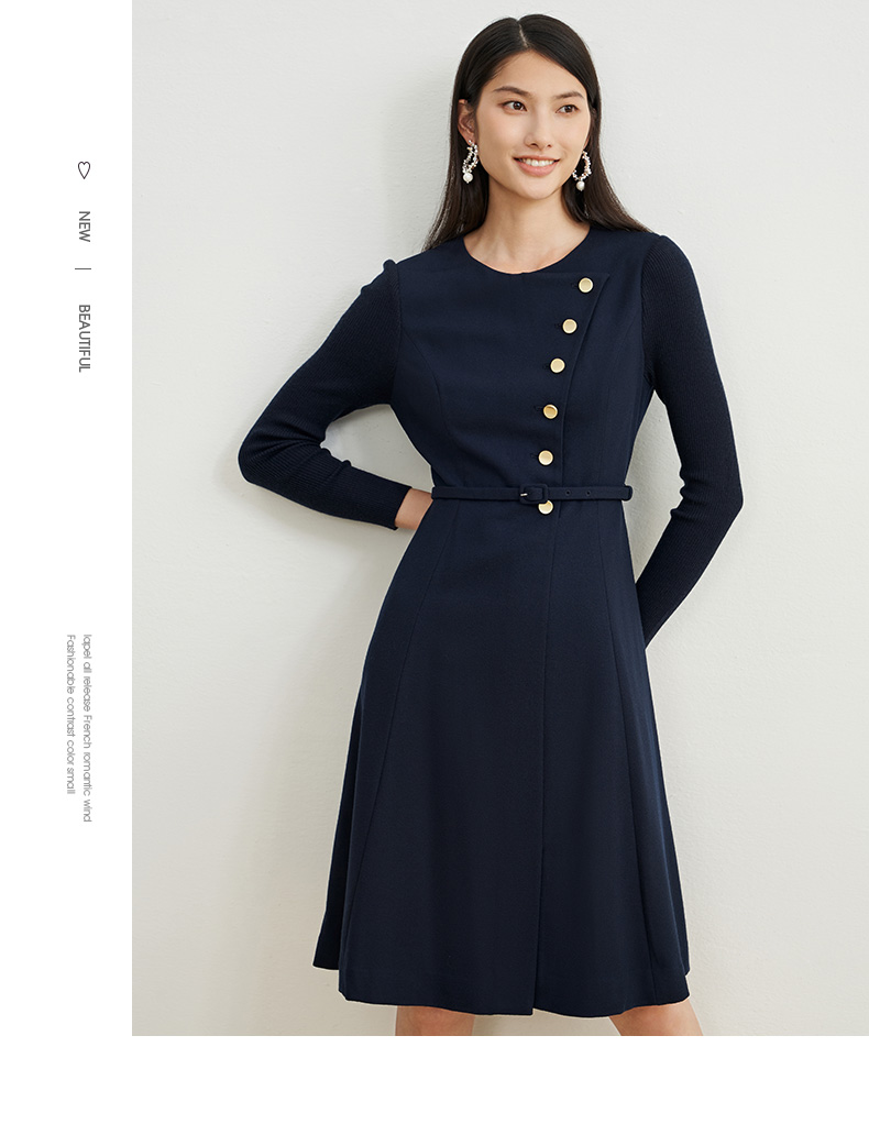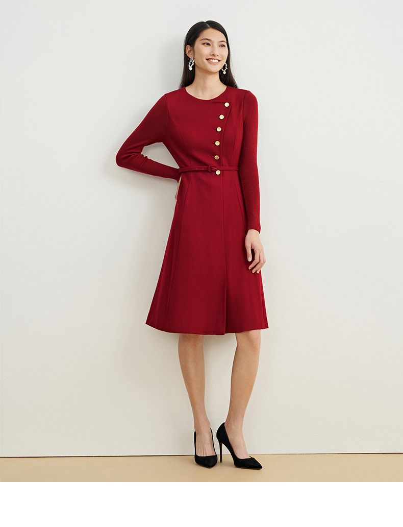 EITIE爱特爱冬季圆领收腰显瘦通勤连衣裙6807531(注意要干洗)