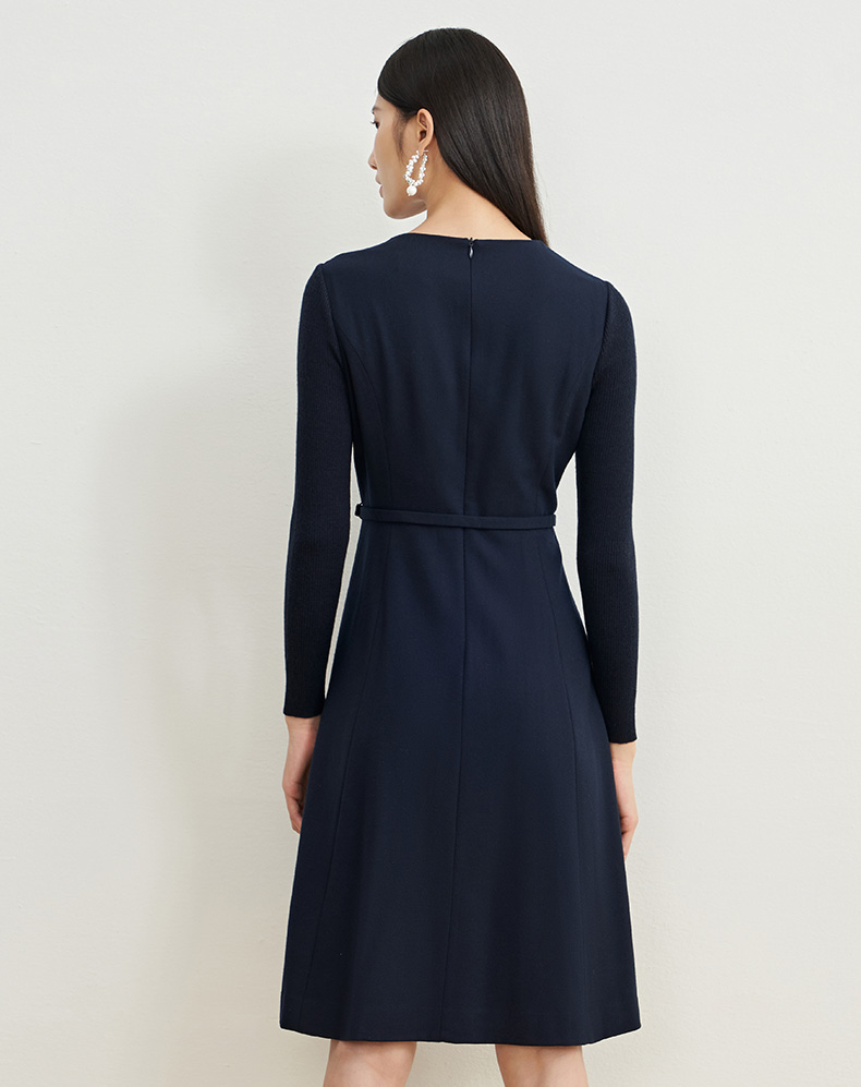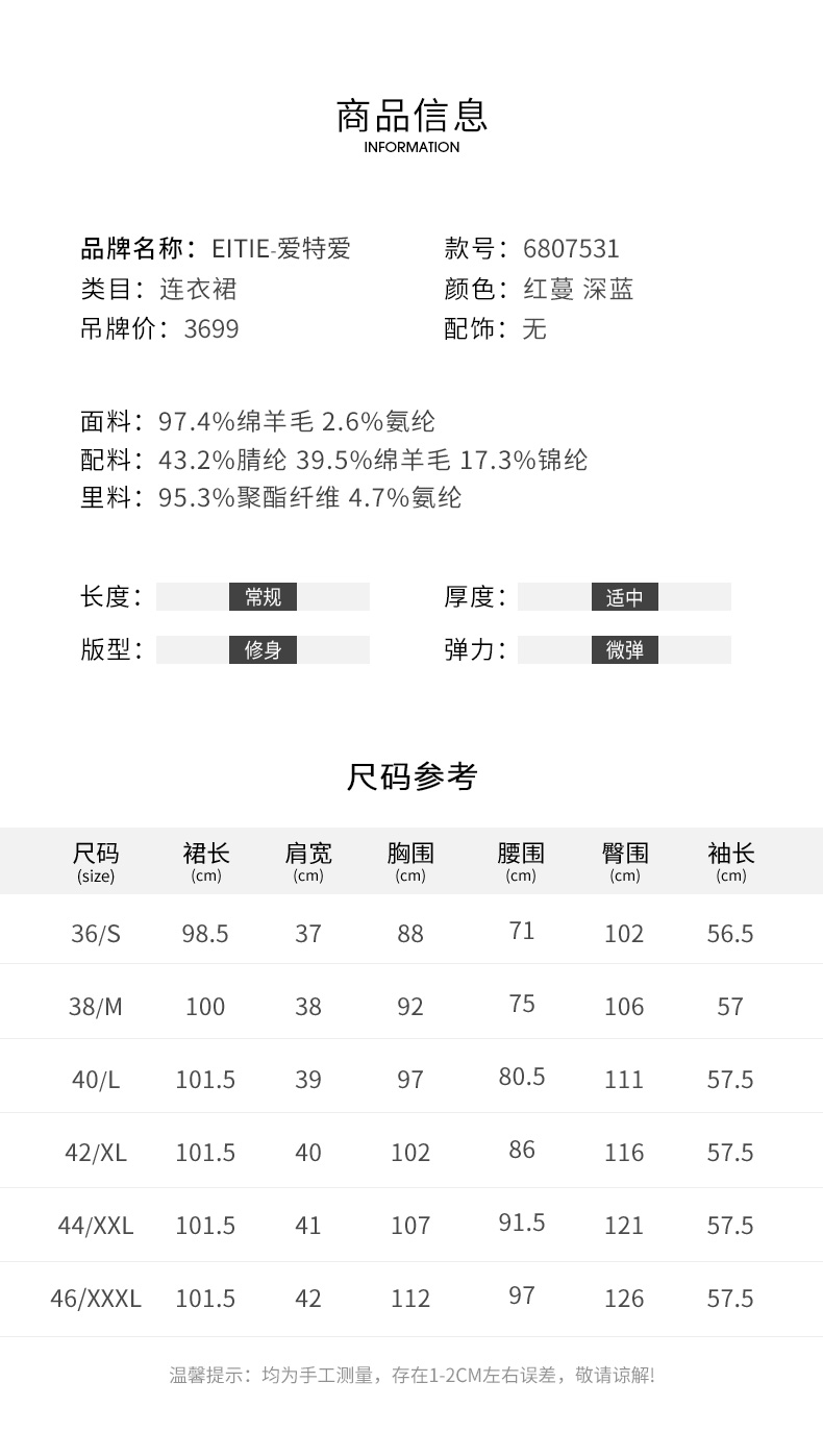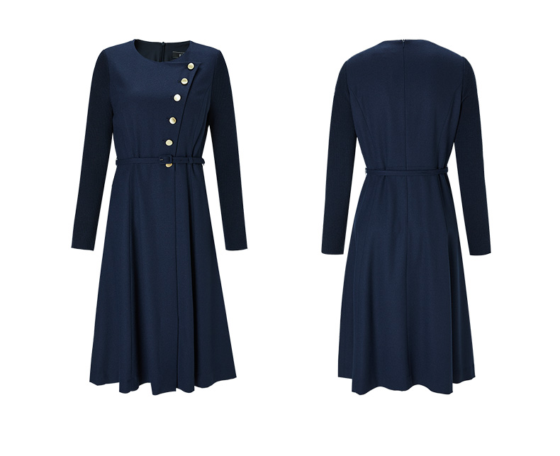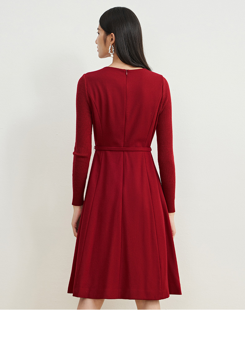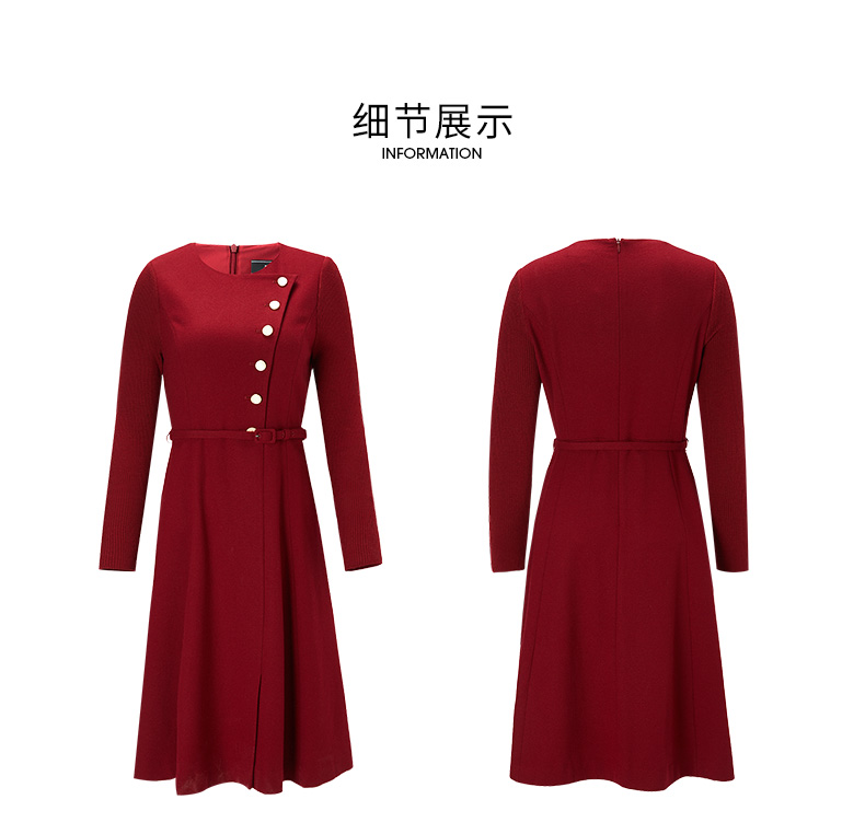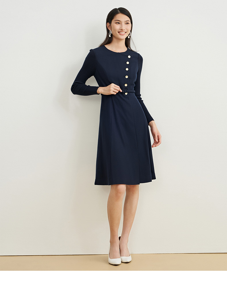 EITIE爱特爱冬季圆领收腰显瘦通勤连衣裙6807531(注意要干洗)