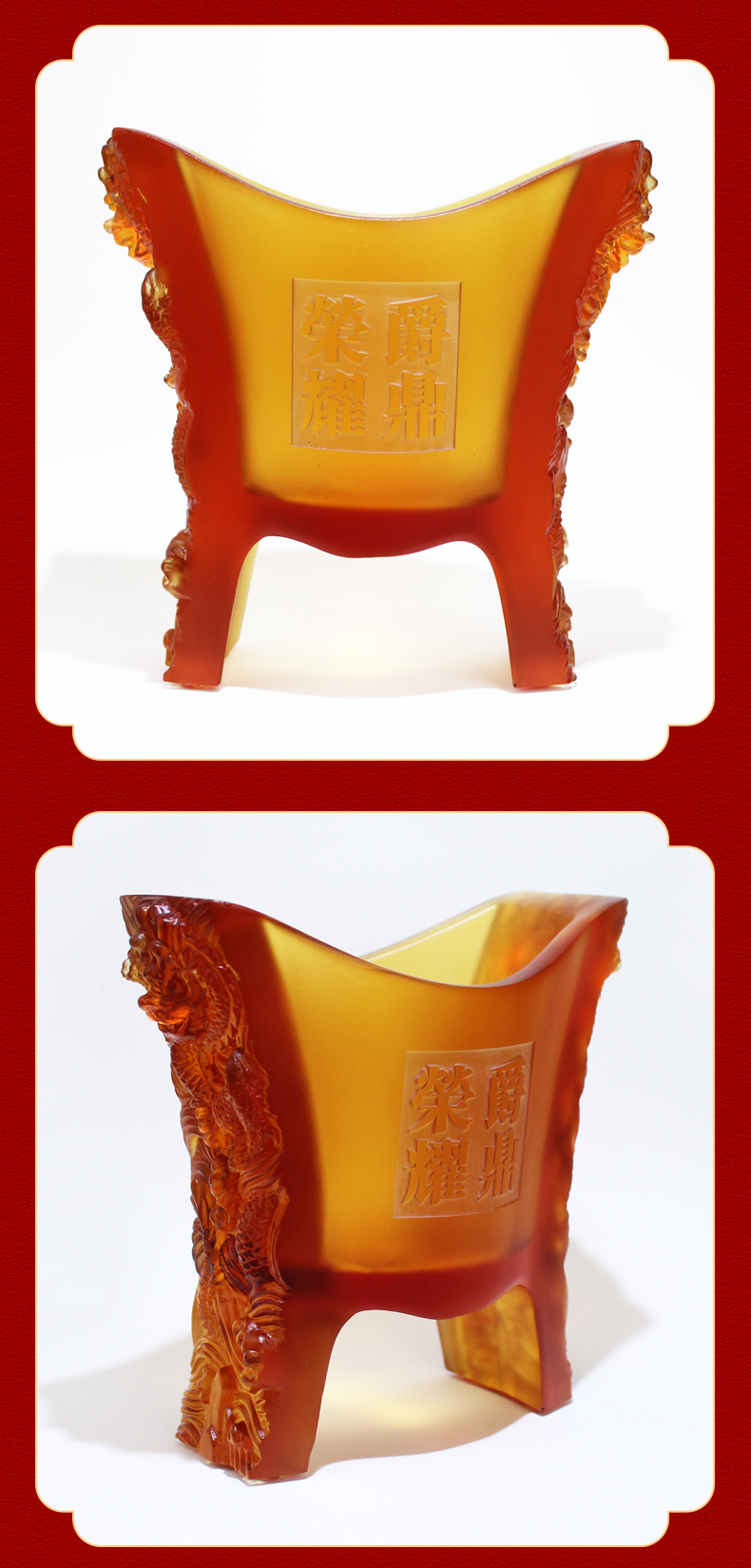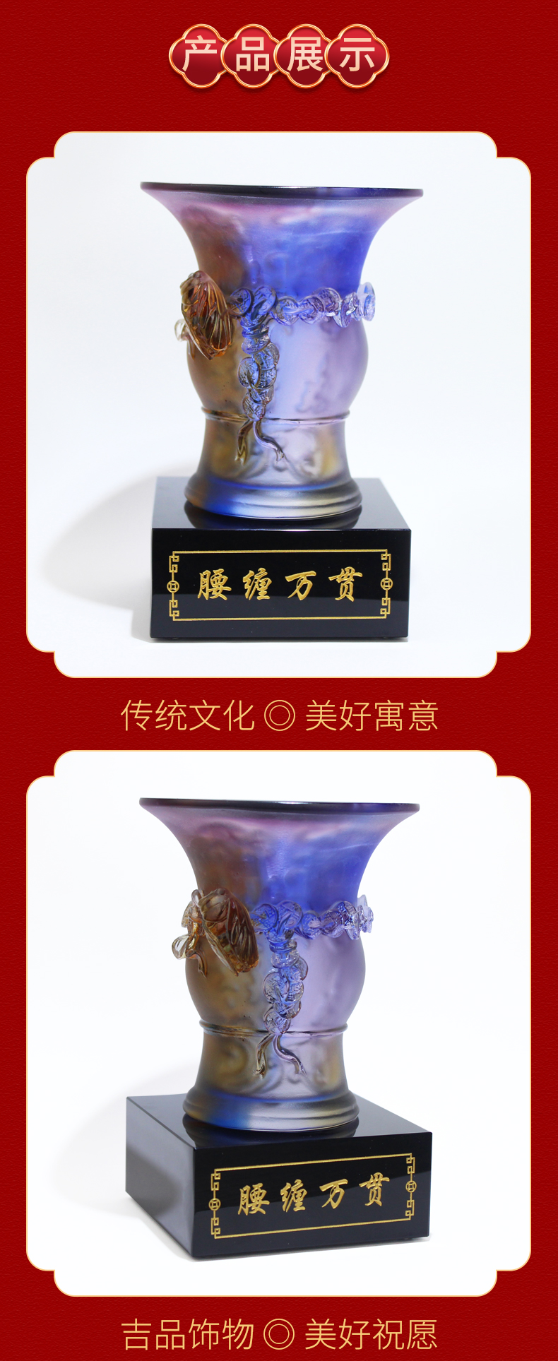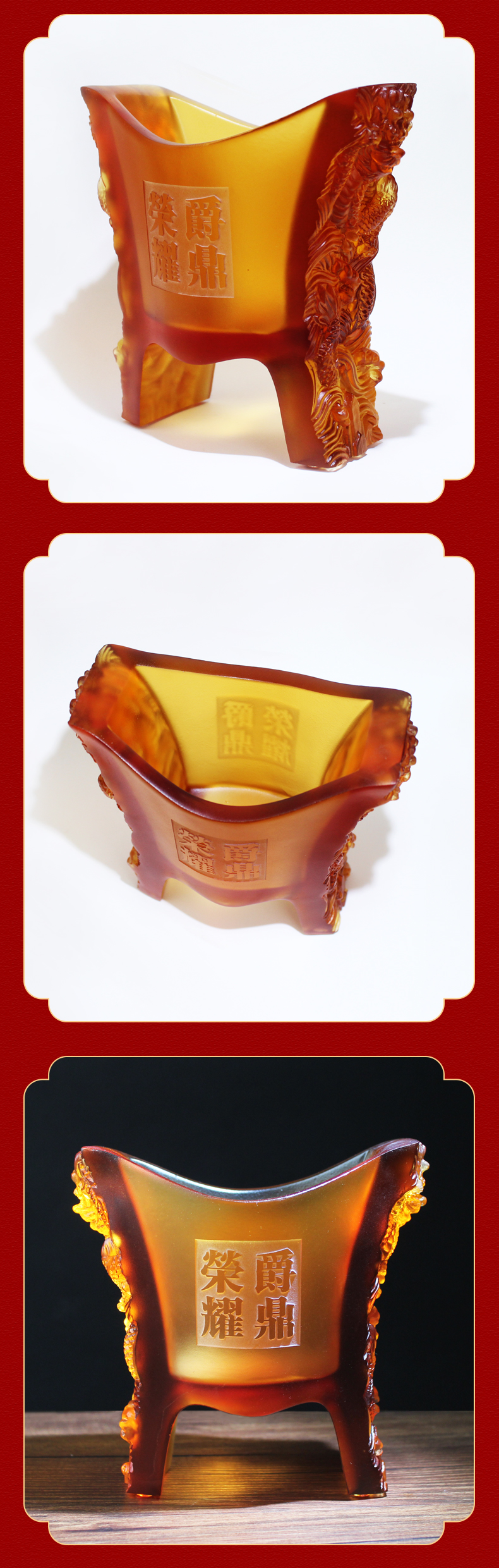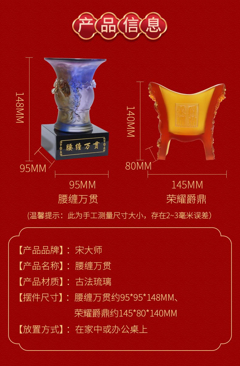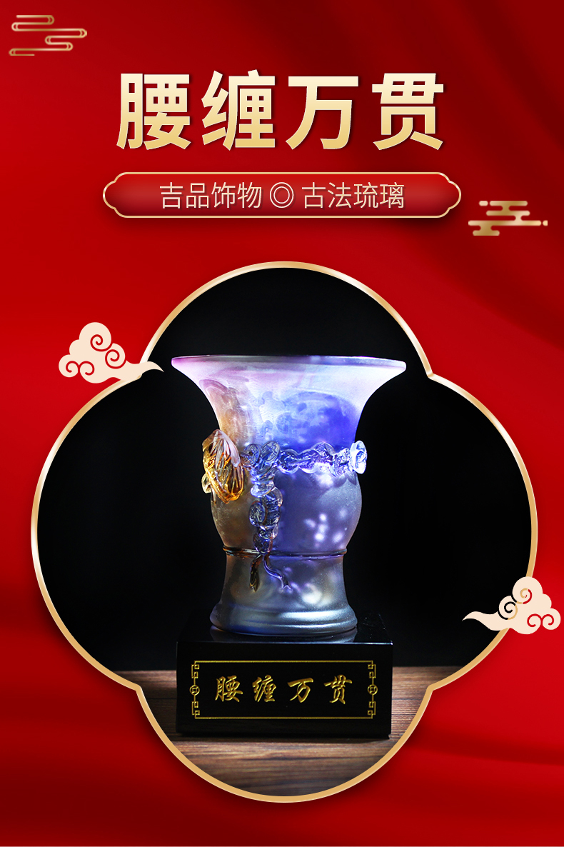 宋大师吉物新款 腰缠万贯荣耀爵鼎 古法琉璃工艺商务礼品摆件