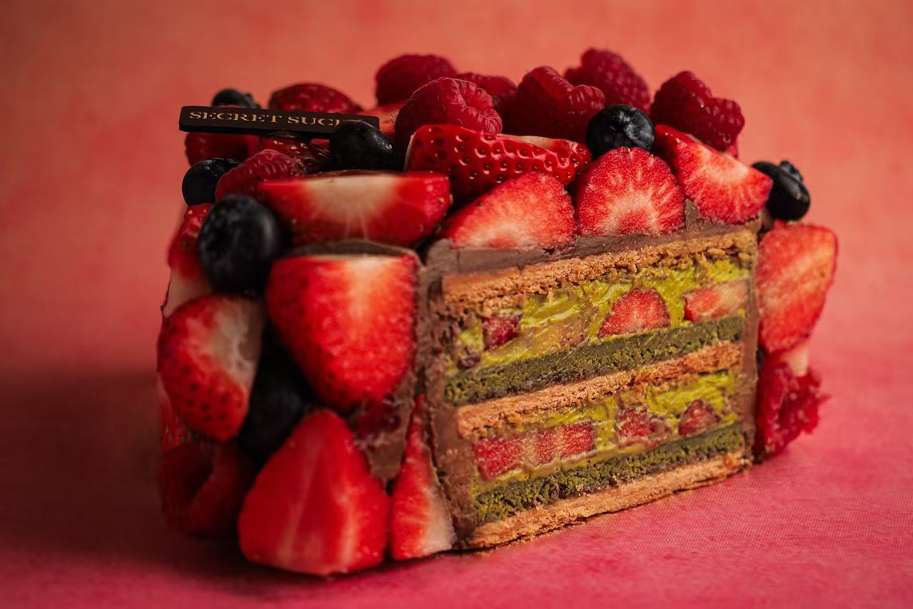 草莓的清甜与开心果的坚果香气、酥皮的黄油香浓相得益彰,开心果酥脆是每一层的额外惊喜。