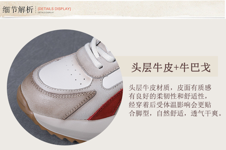 吉树热销2025真皮休闲运动鞋系带女鞋头层牛皮厚底拼色单鞋四季鞋 商品图4