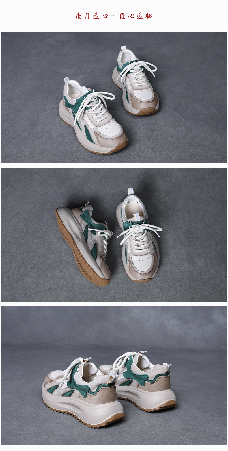 吉树热销2025真皮休闲运动鞋系带女鞋头层牛皮厚底拼色单鞋四季鞋 商品图3