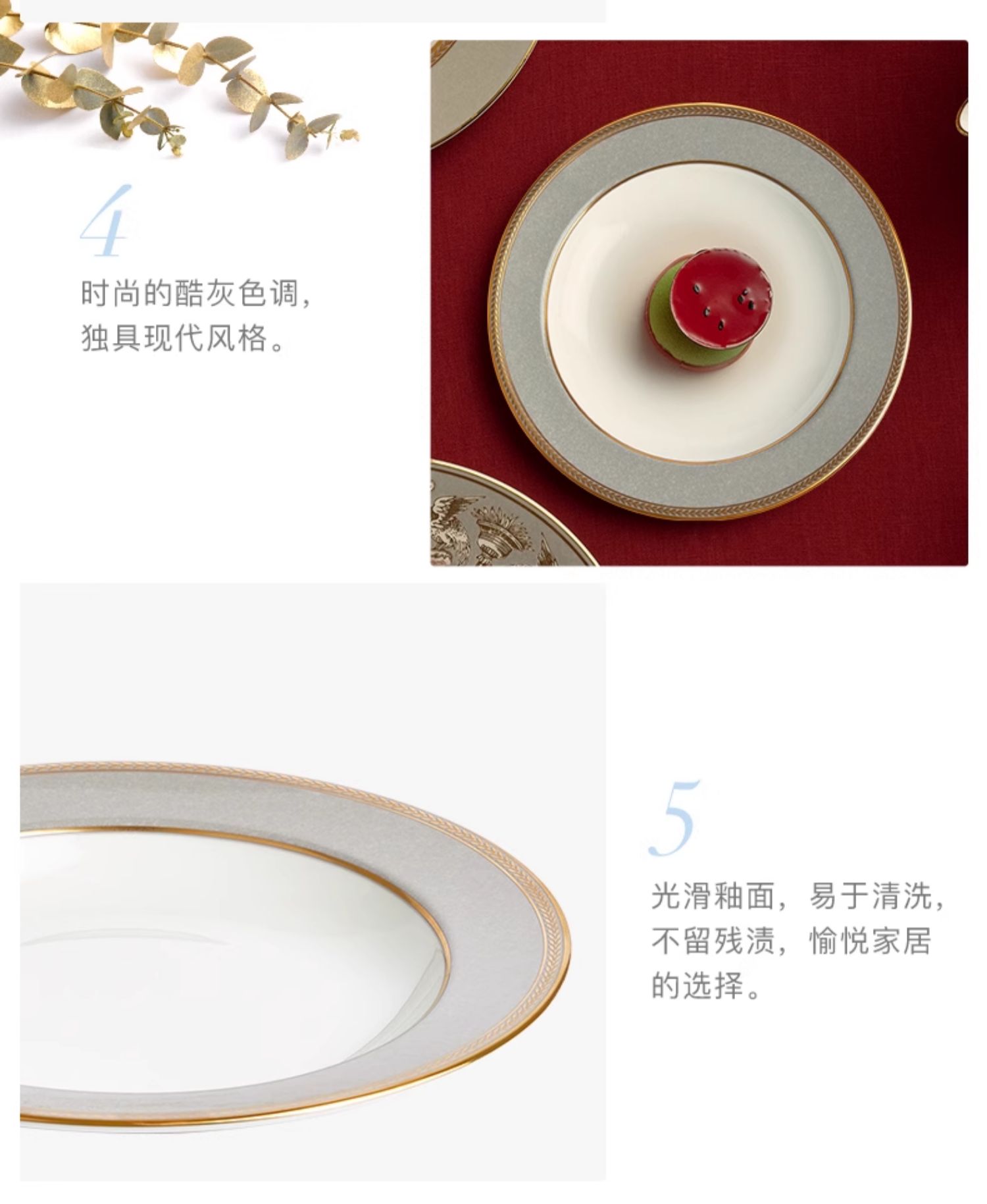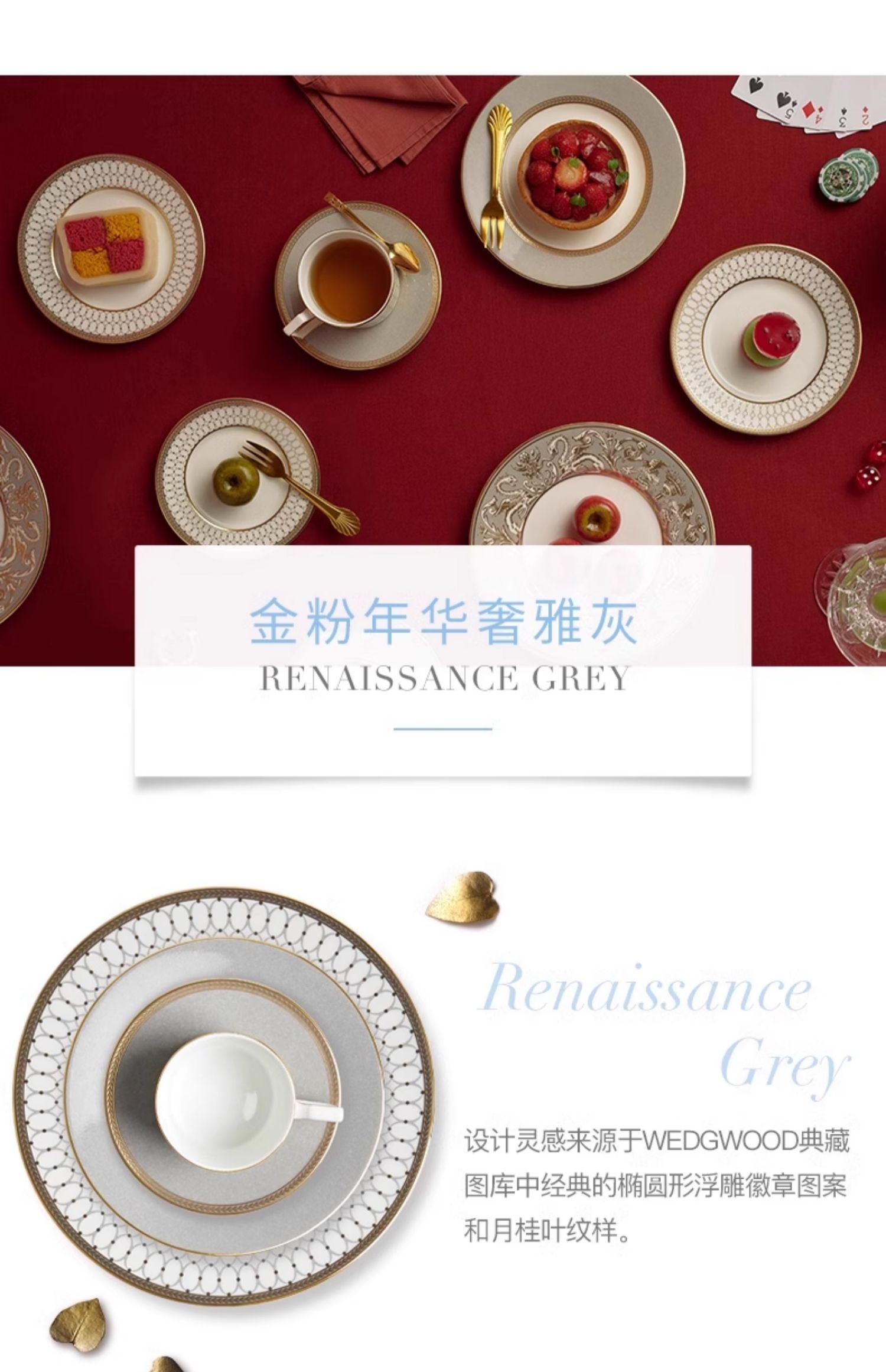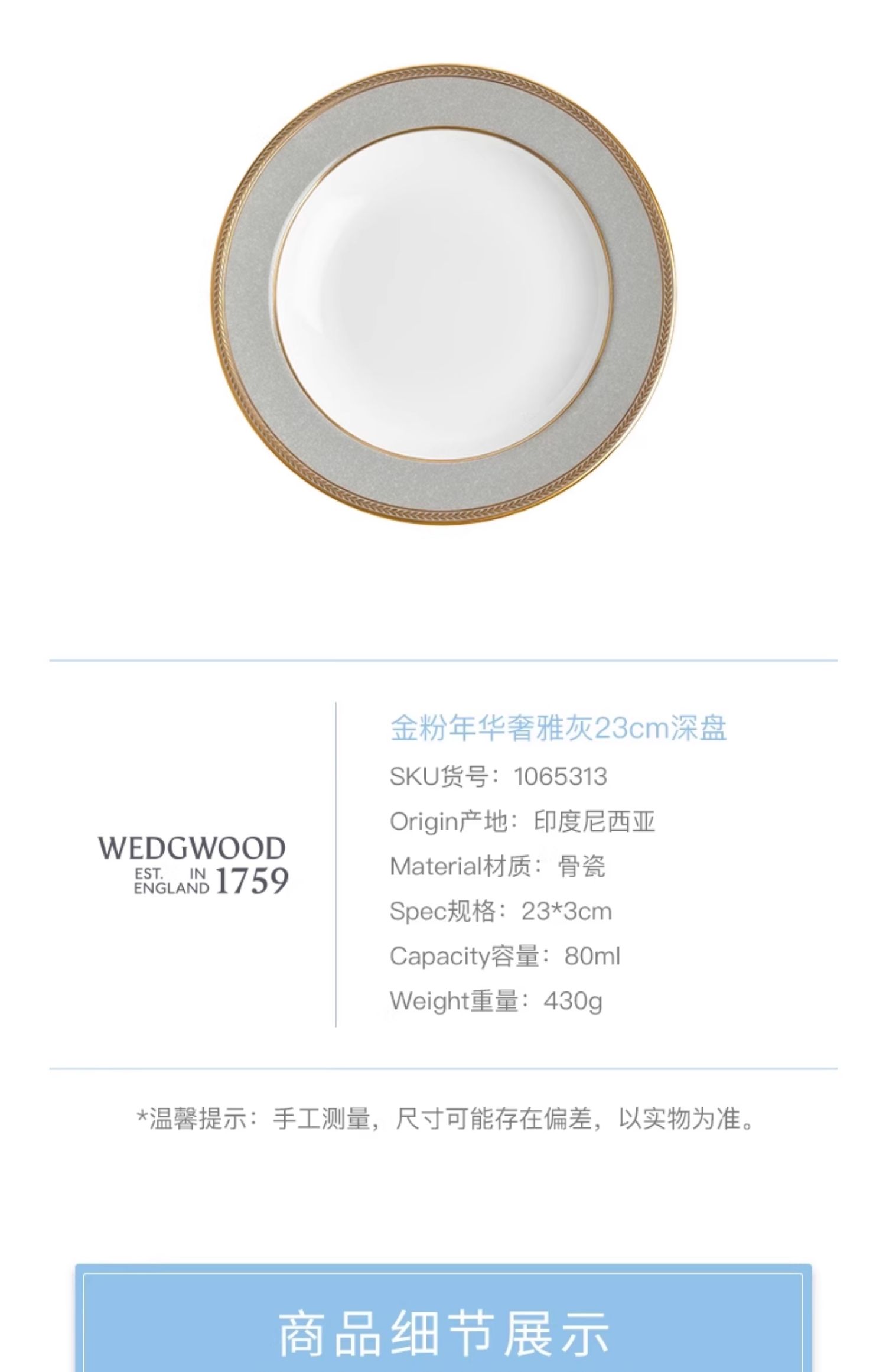 【WEDGWOOD】威基伍德 金粉年华奢雅灰23cm骨瓷深盘欧式盘子餐盘餐具