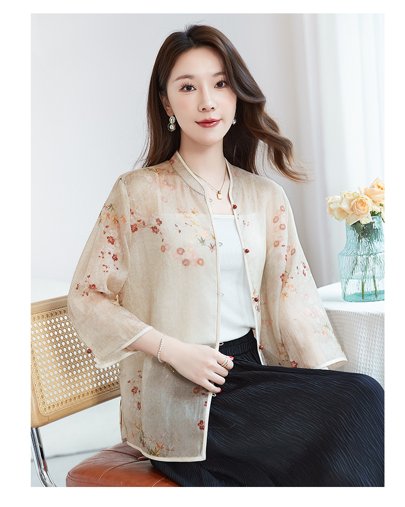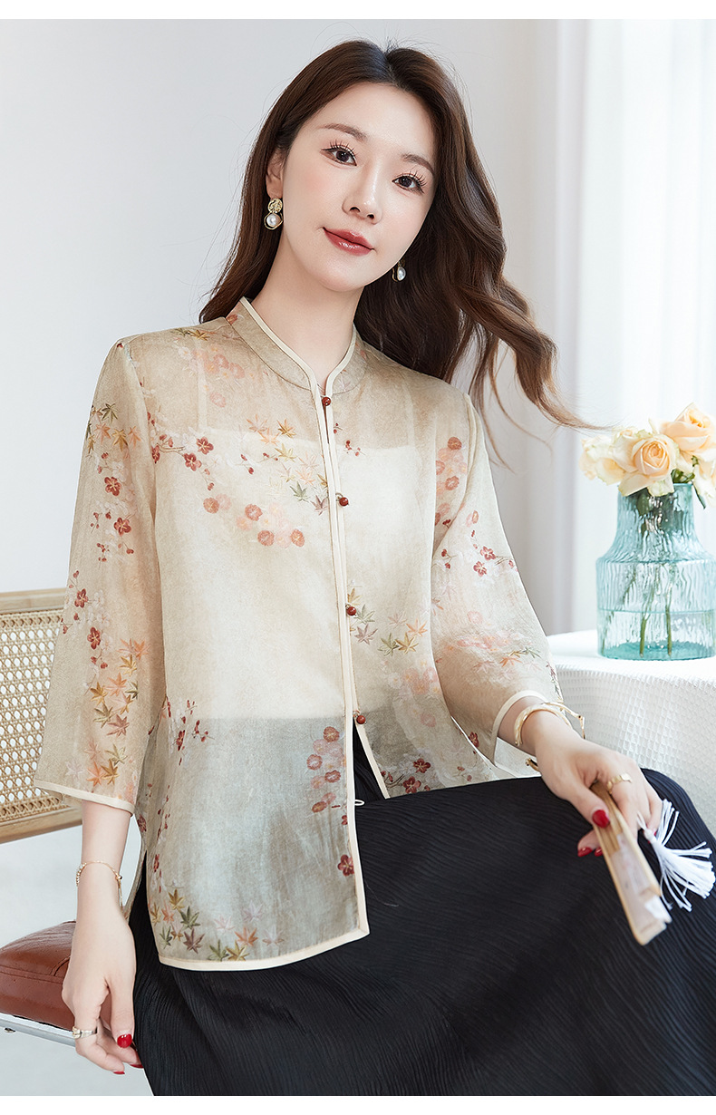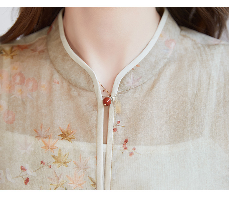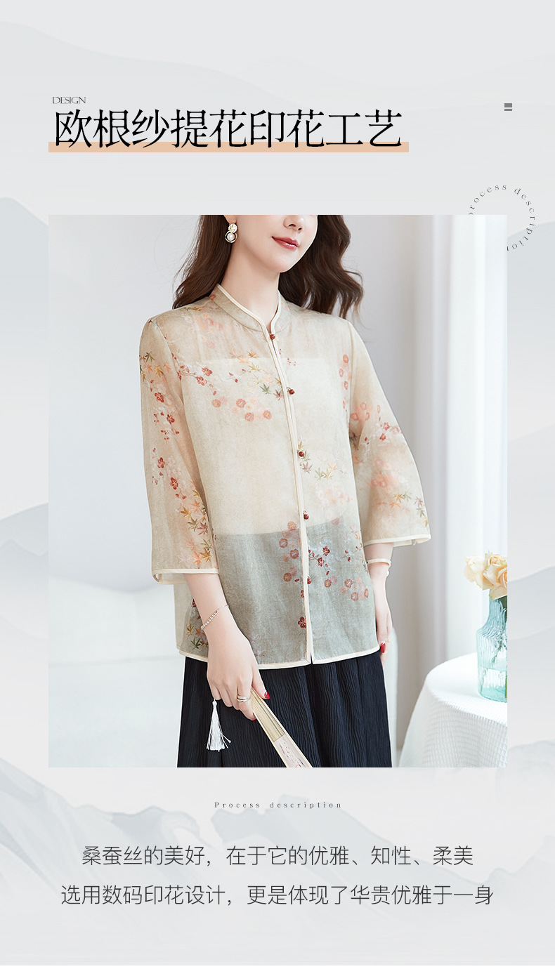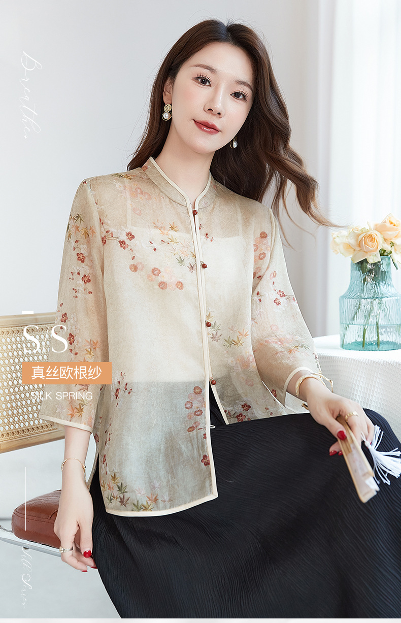 QS【国风新中式】真丝印花立领衬衫小衫上衣100%桑蚕丝开衫外套1691
