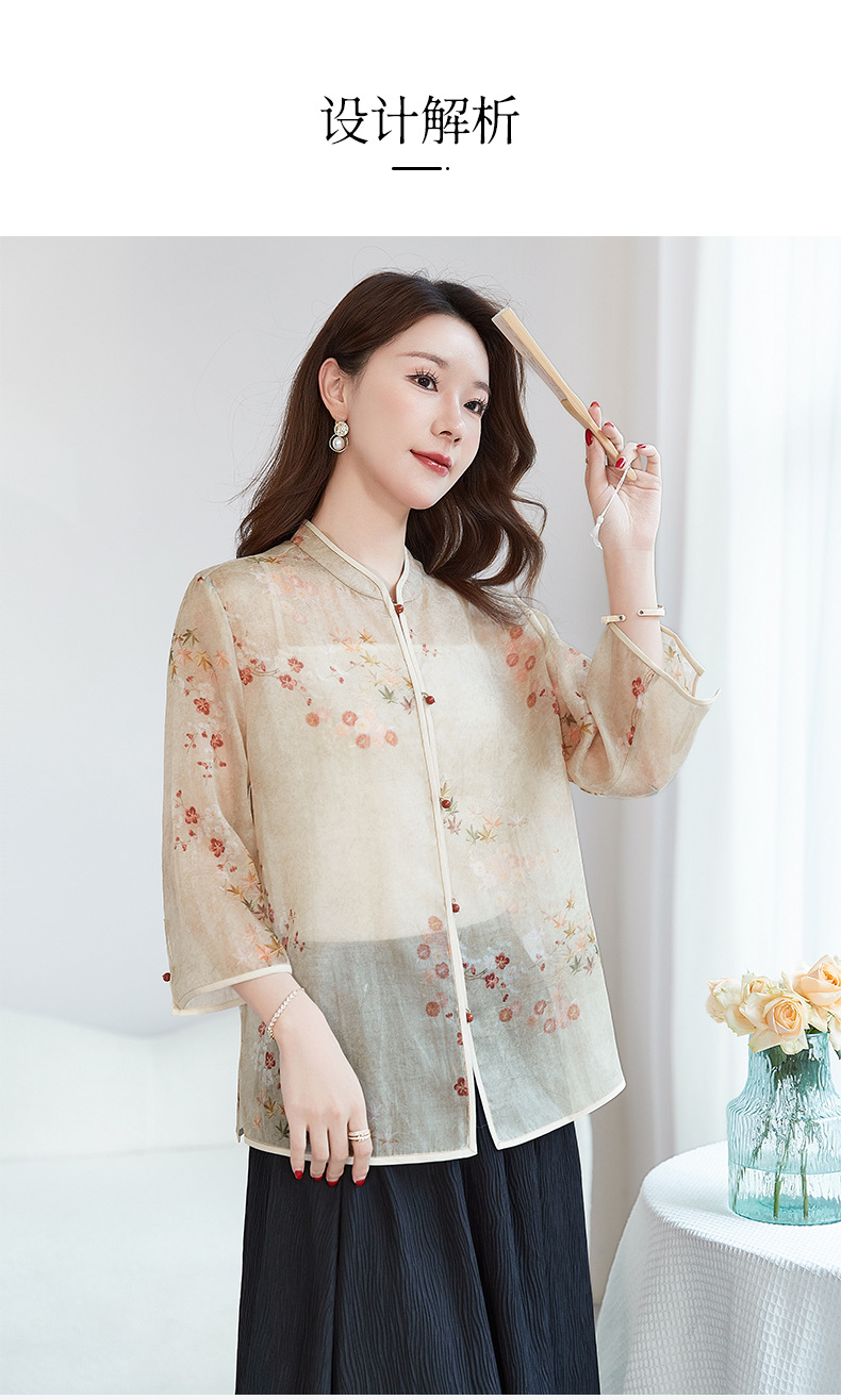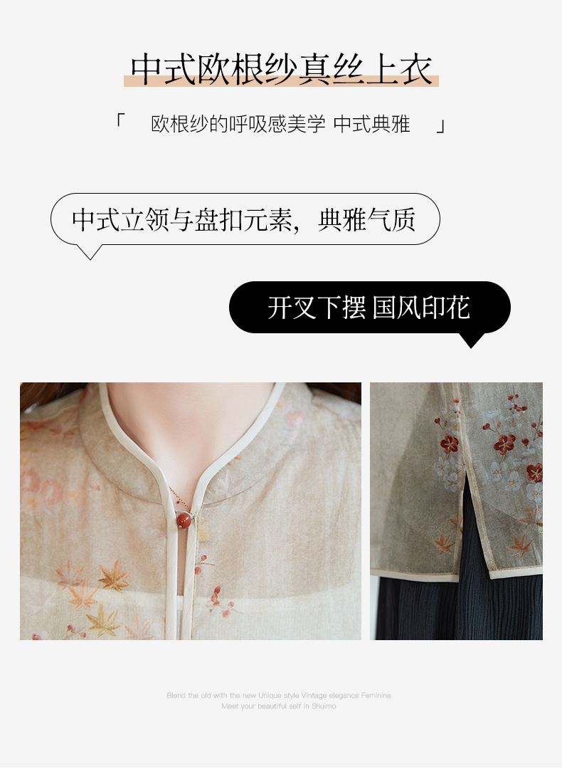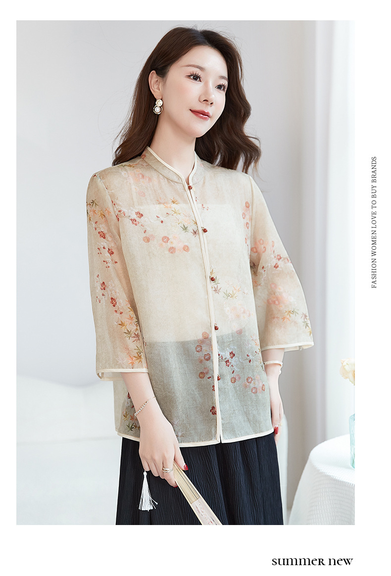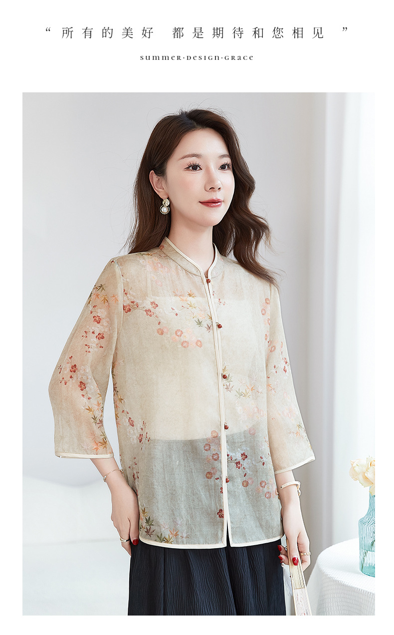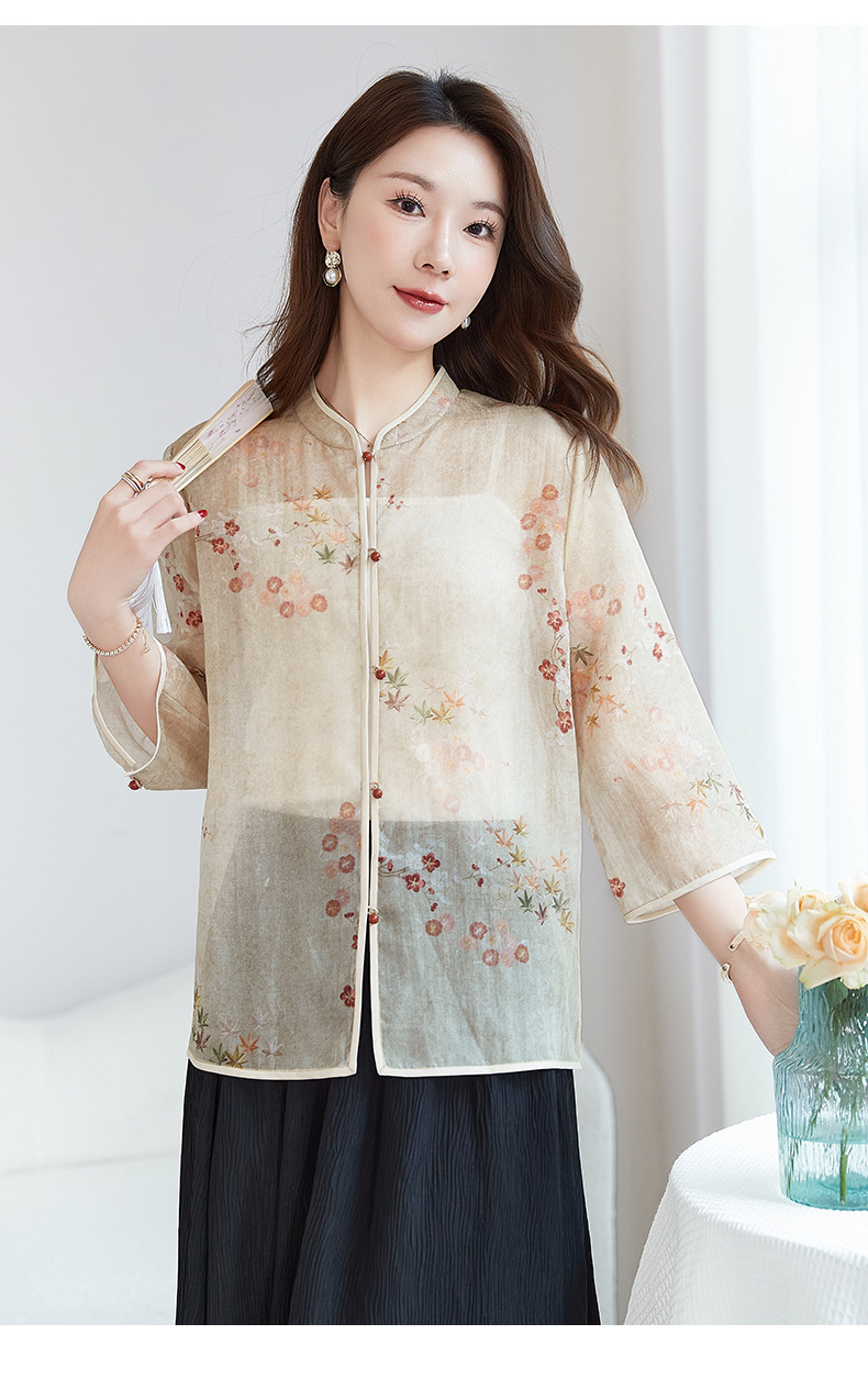 QS【国风新中式】真丝印花立领衬衫小衫上衣100%桑蚕丝开衫外套1691