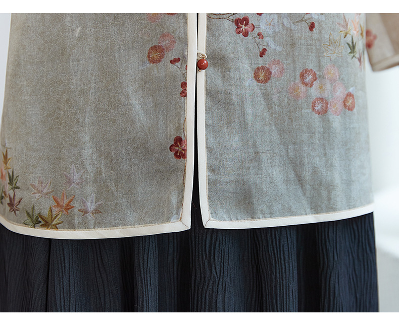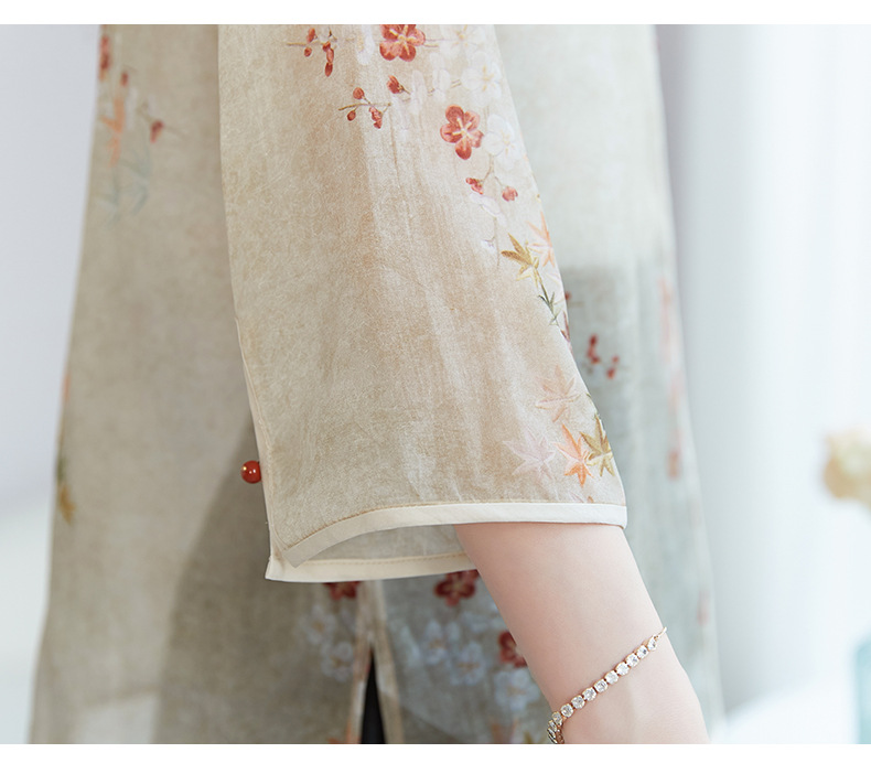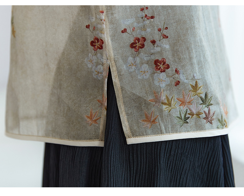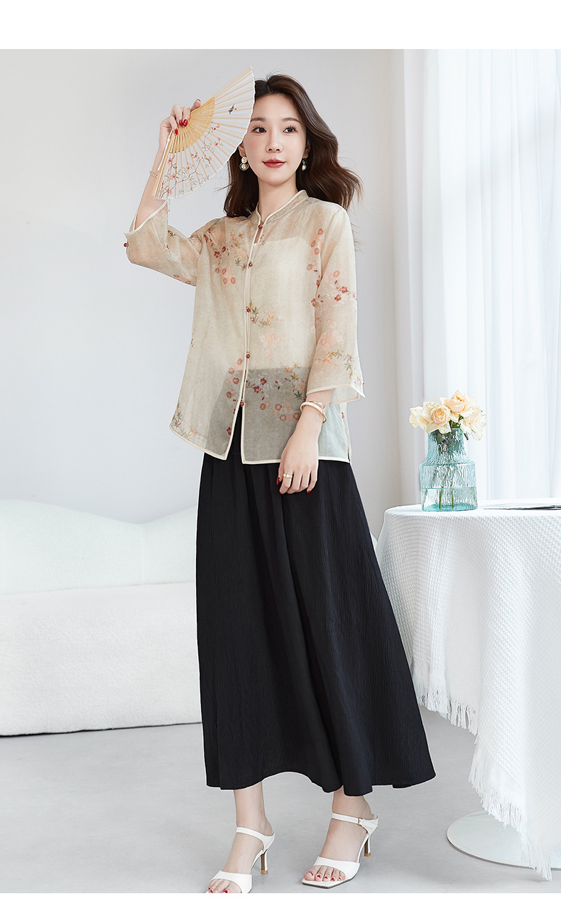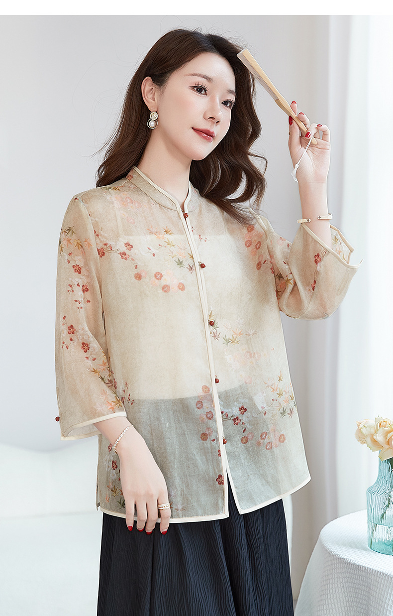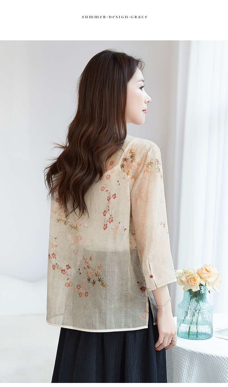 QS【国风新中式】真丝印花立领衬衫小衫上衣100%桑蚕丝开衫外套1691