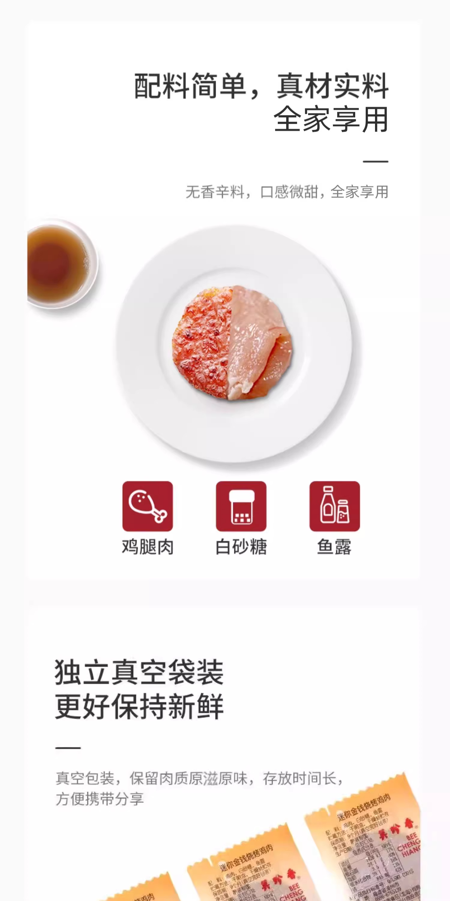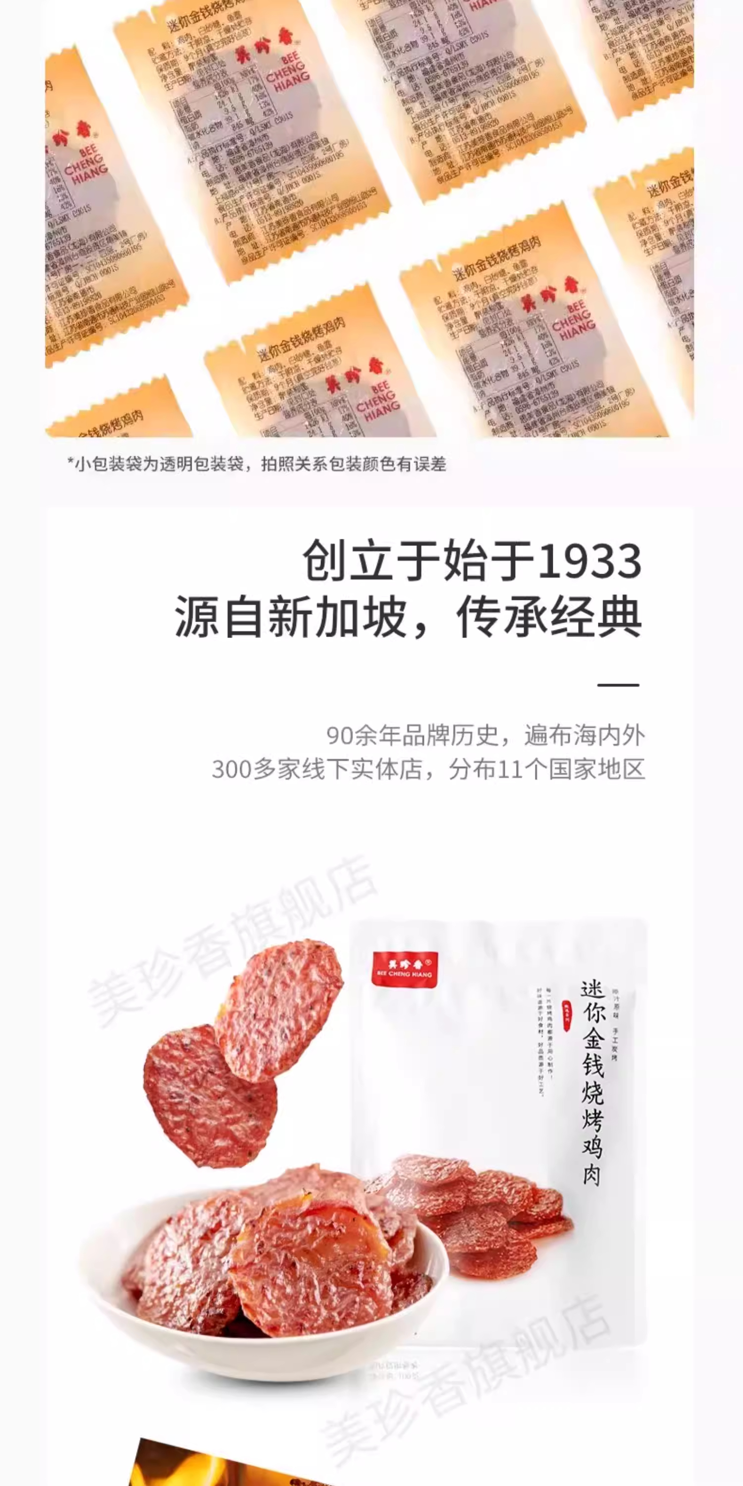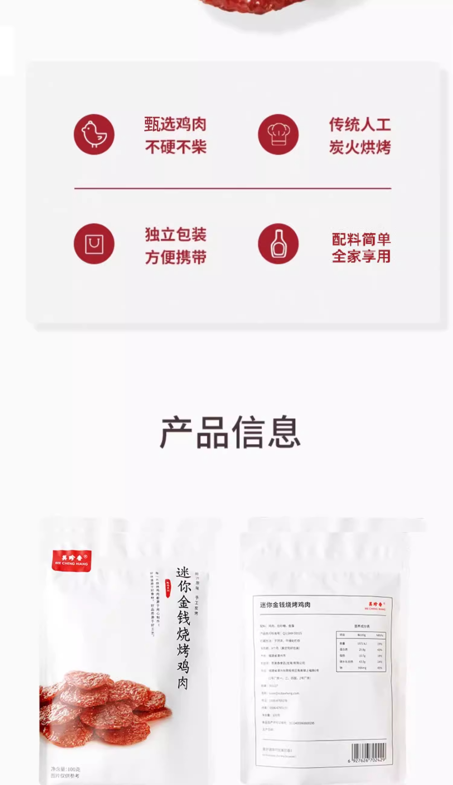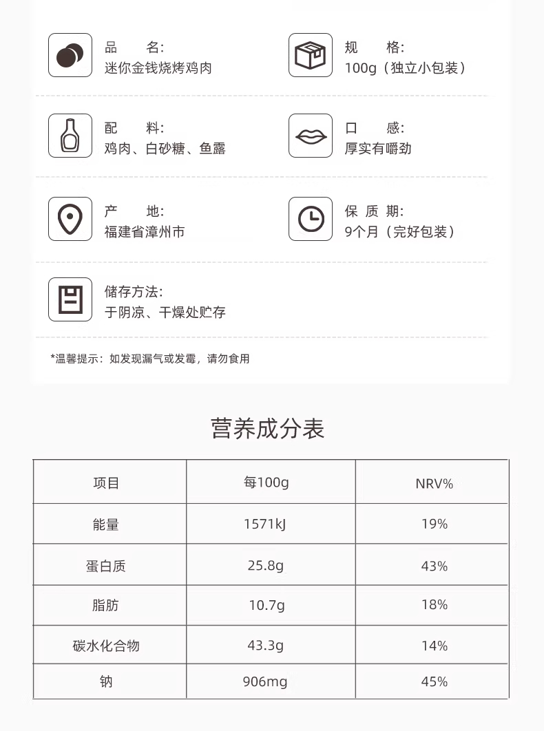 美珍香迷你金钱烧烤鸡肉100g休闲零食即食真空小吃非肉脯肉干熟食