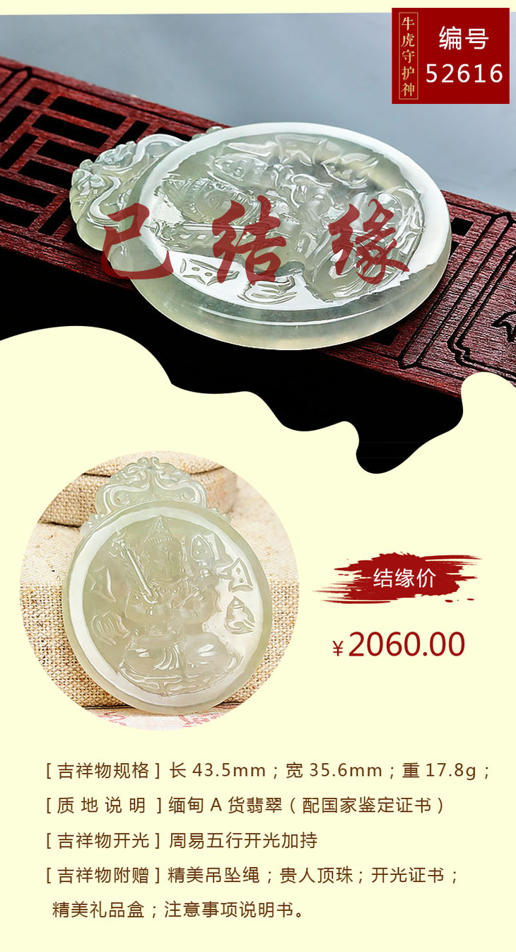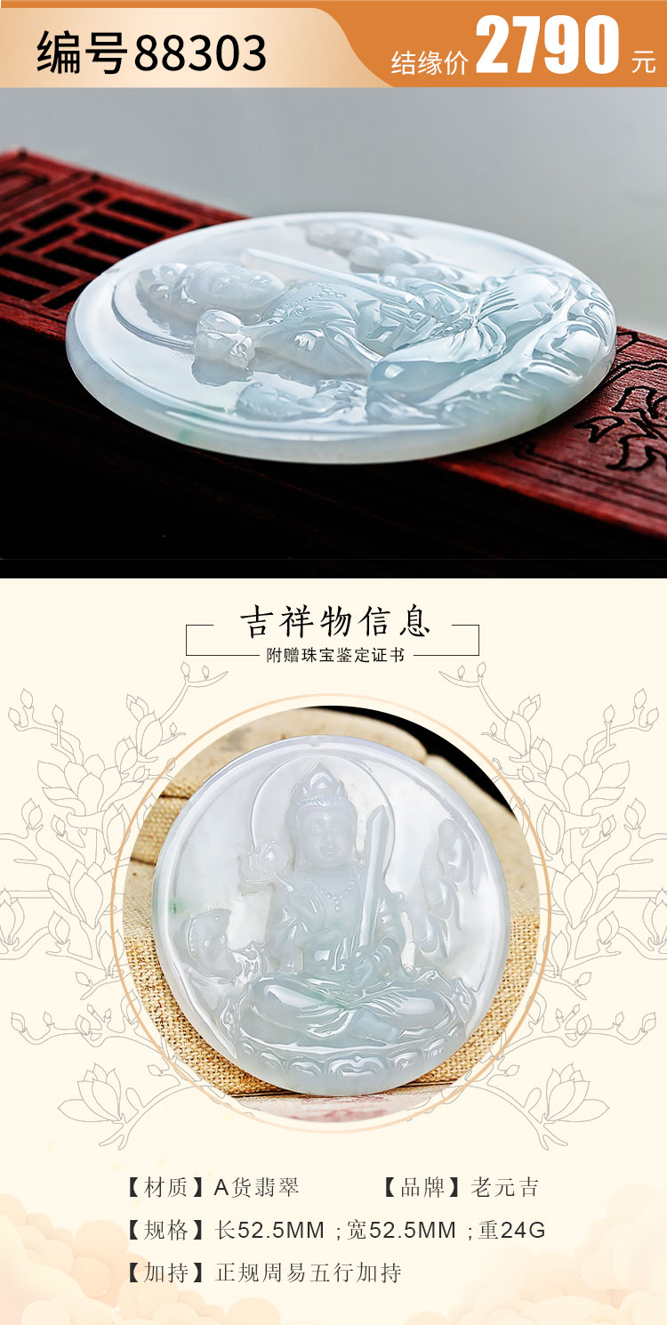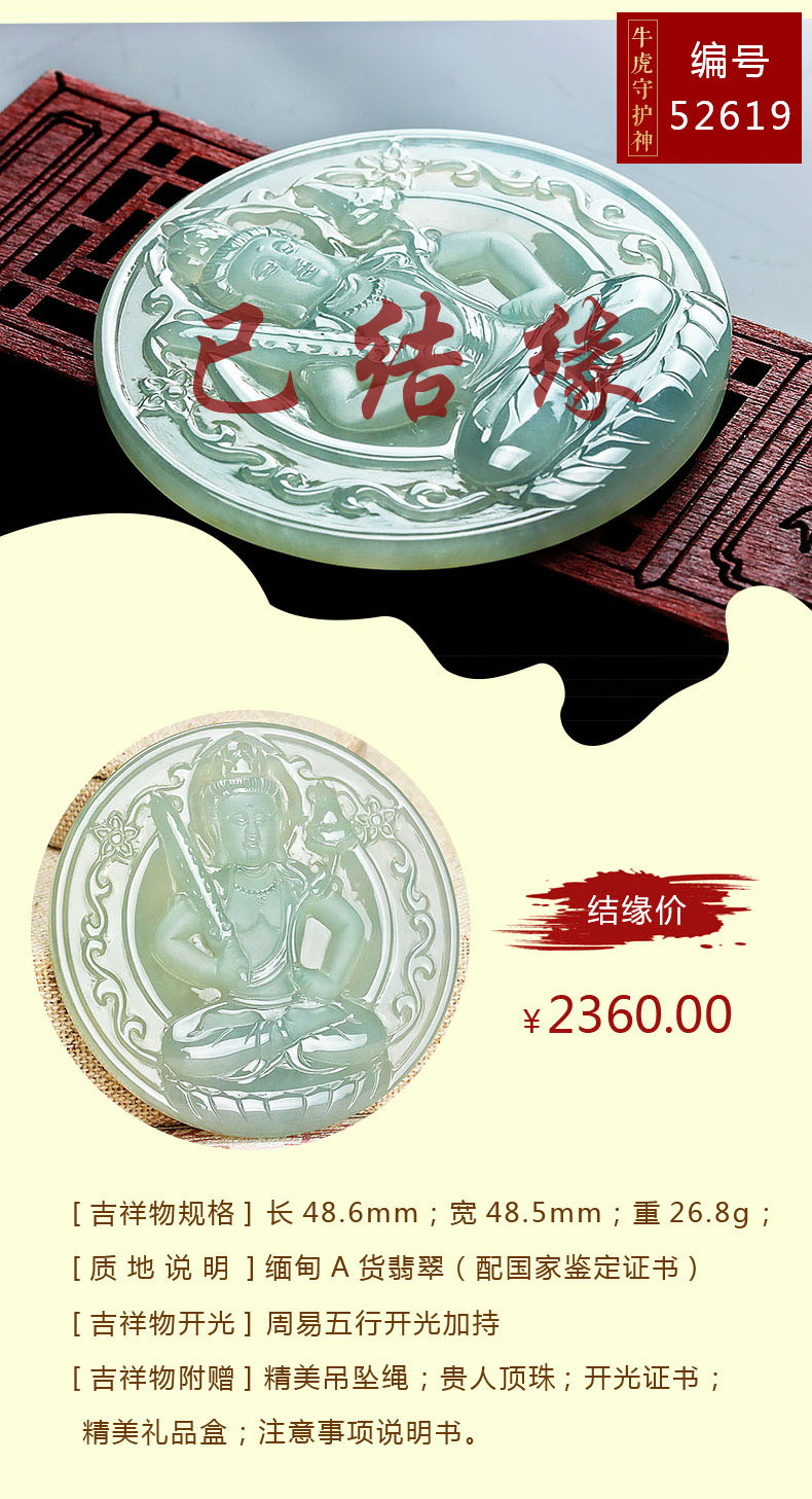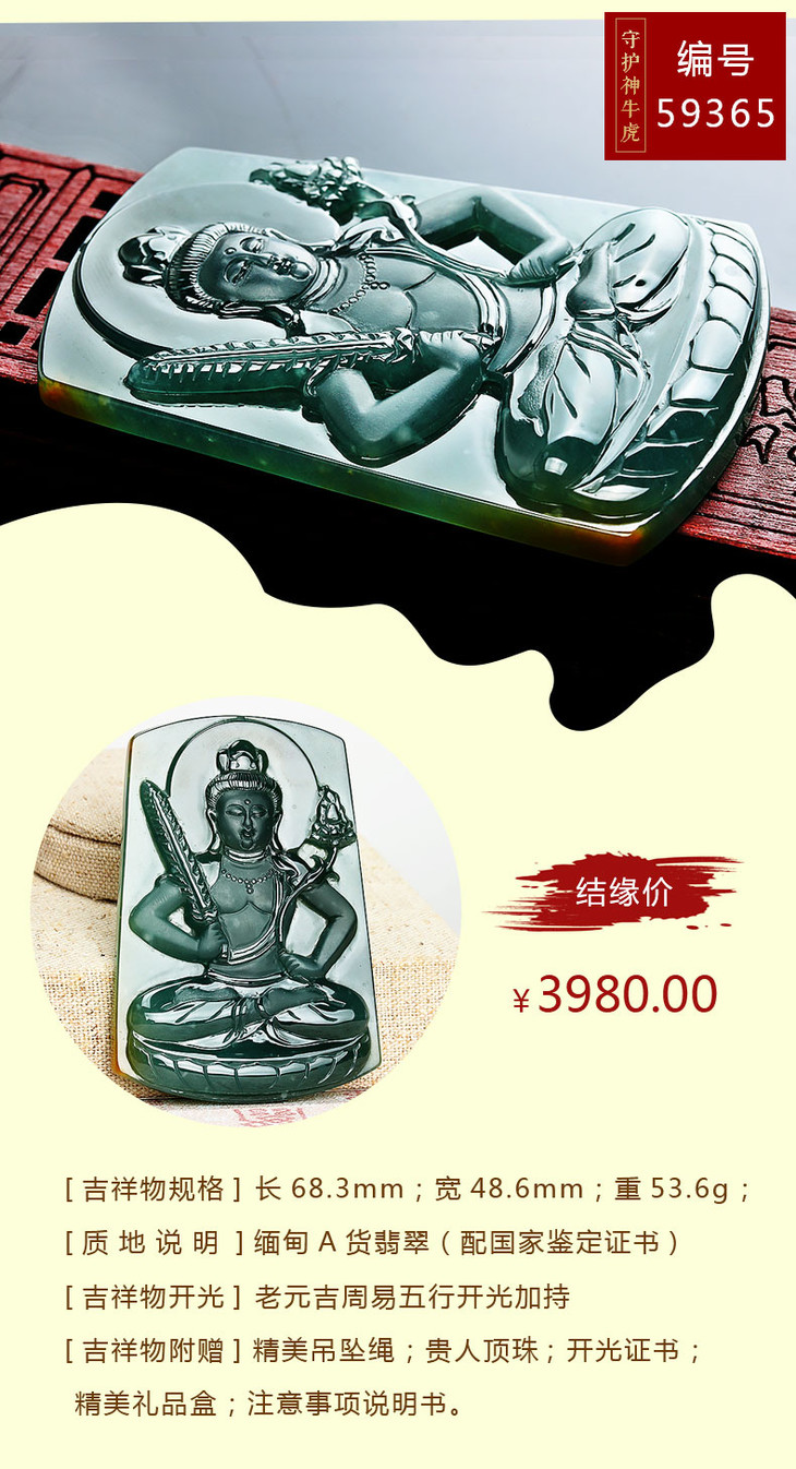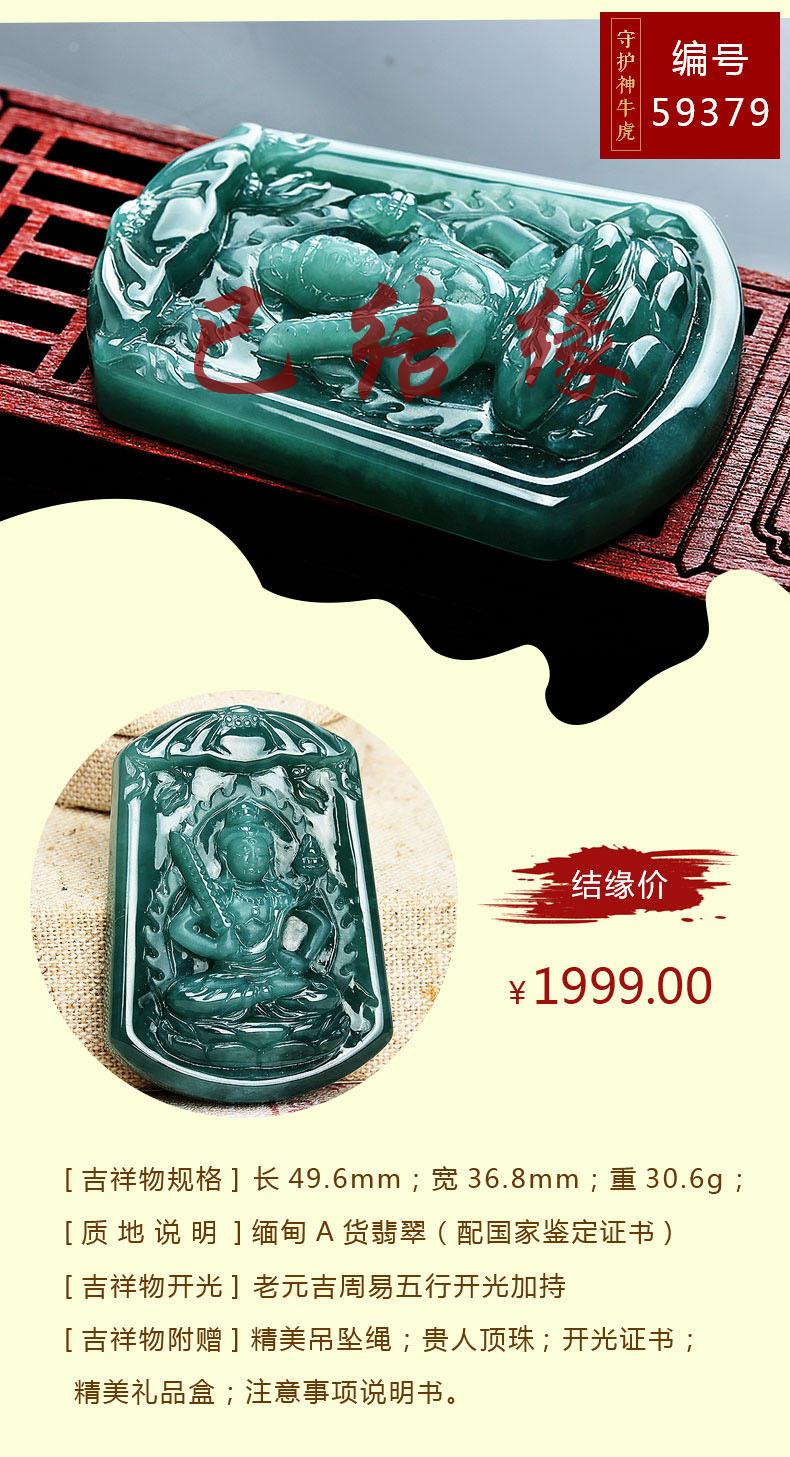 老元吉A货翡翠生肖牛虎本命佛【虚空藏菩萨吊坠】男女款挂件玉石吊坠