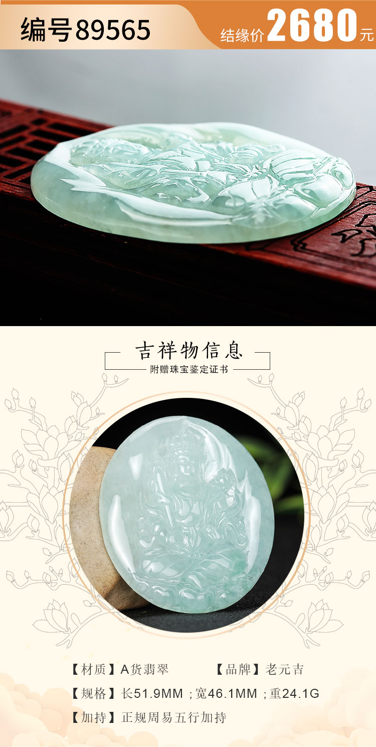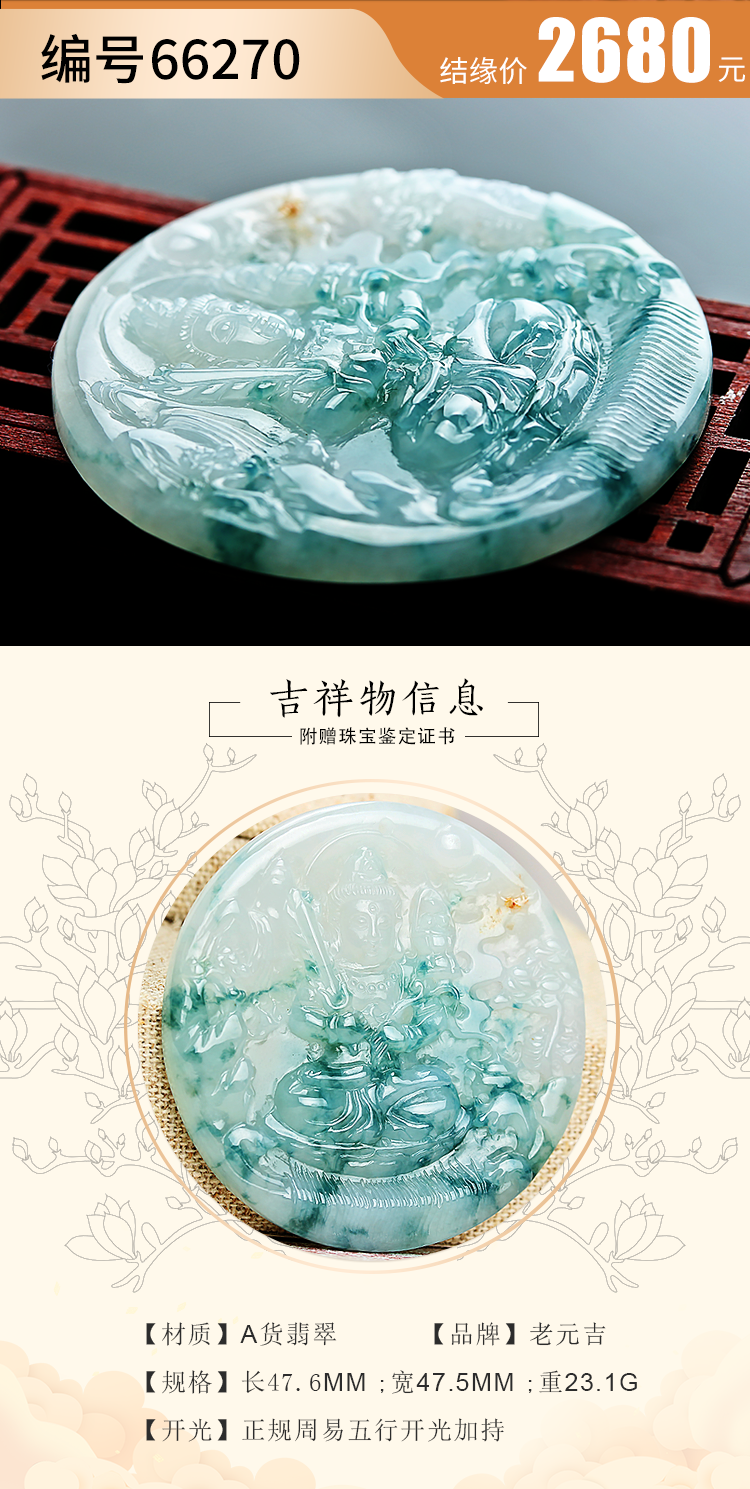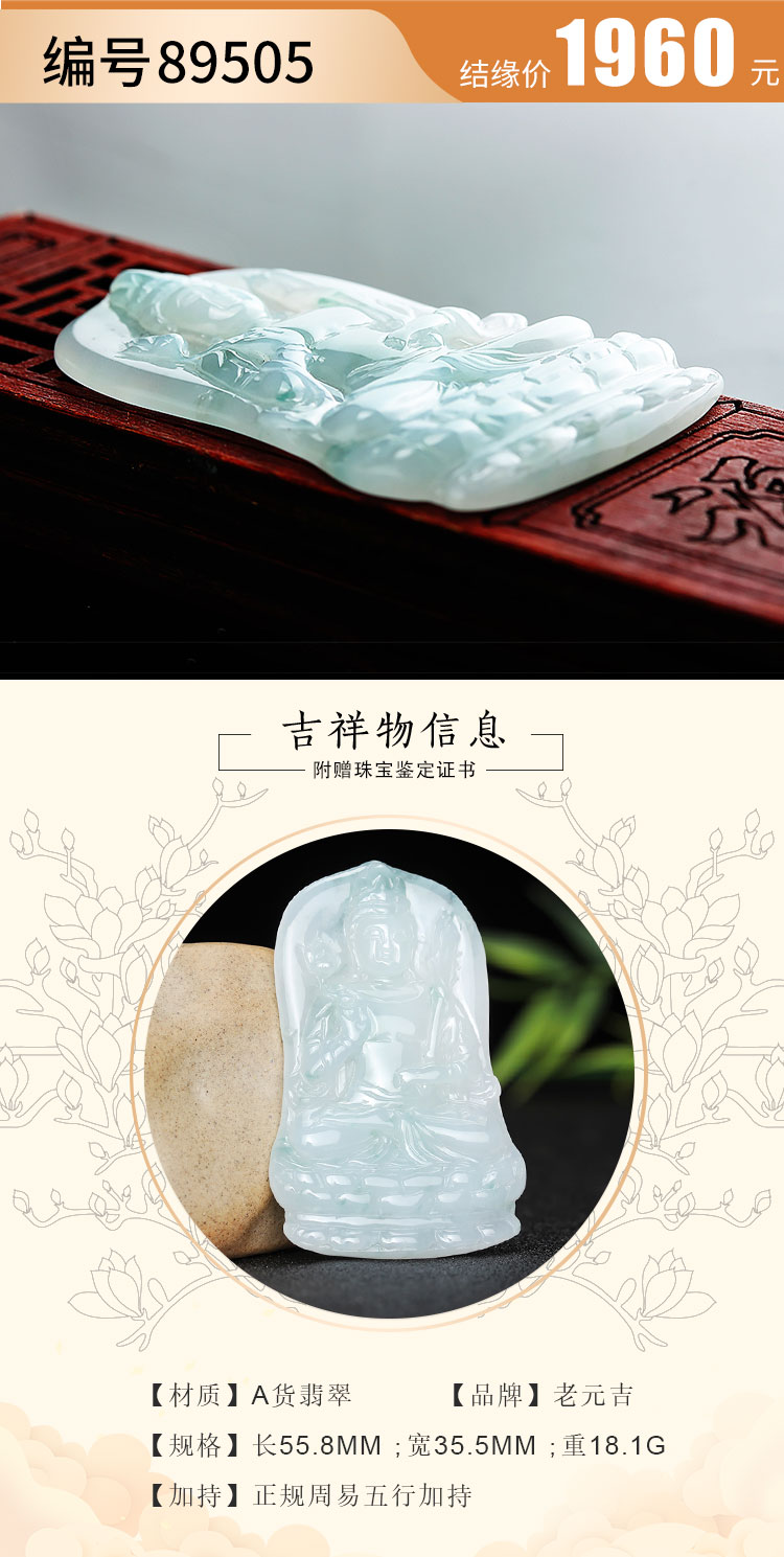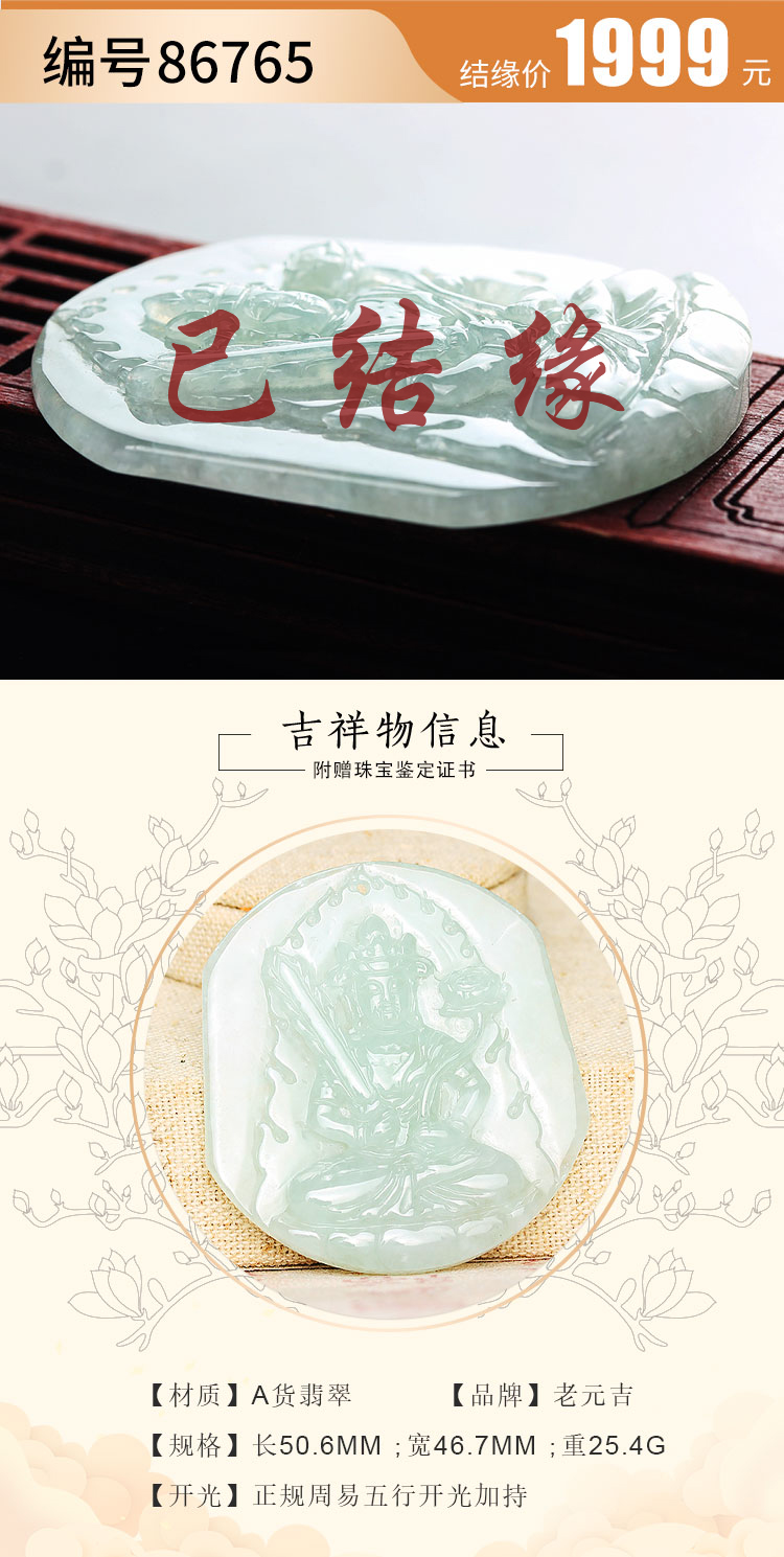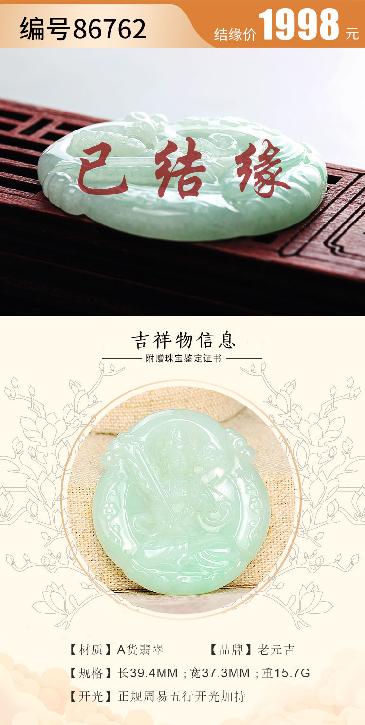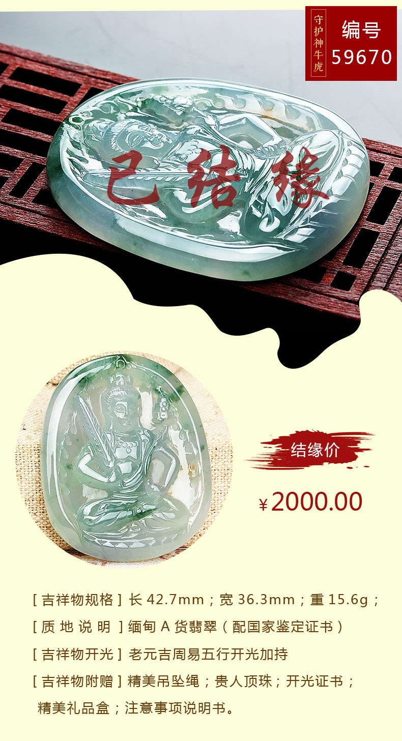 老元吉A货翡翠生肖牛虎本命佛【虚空藏菩萨吊坠】男女款挂件玉石吊坠