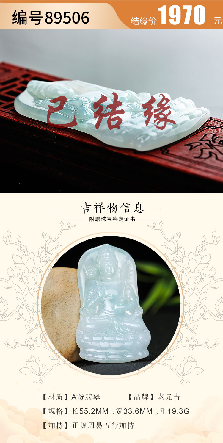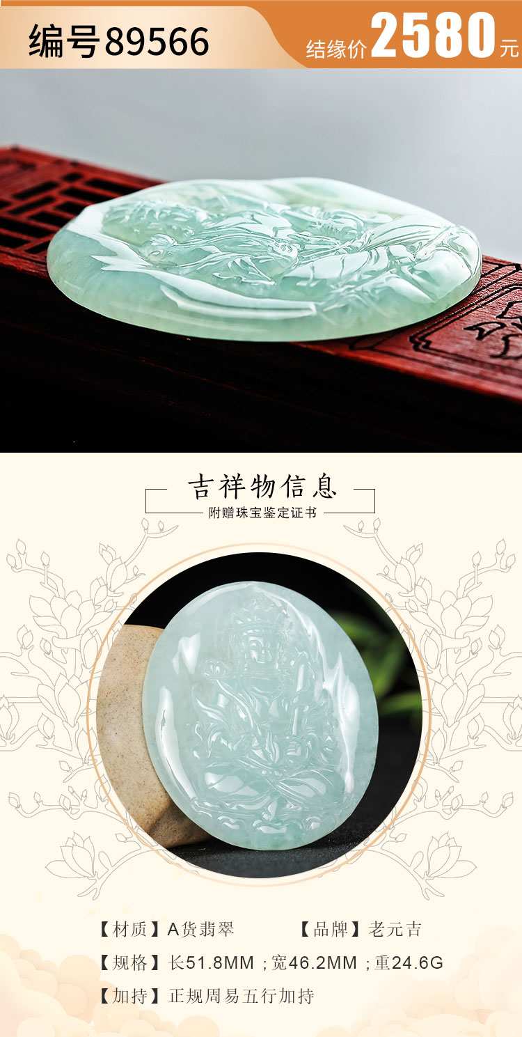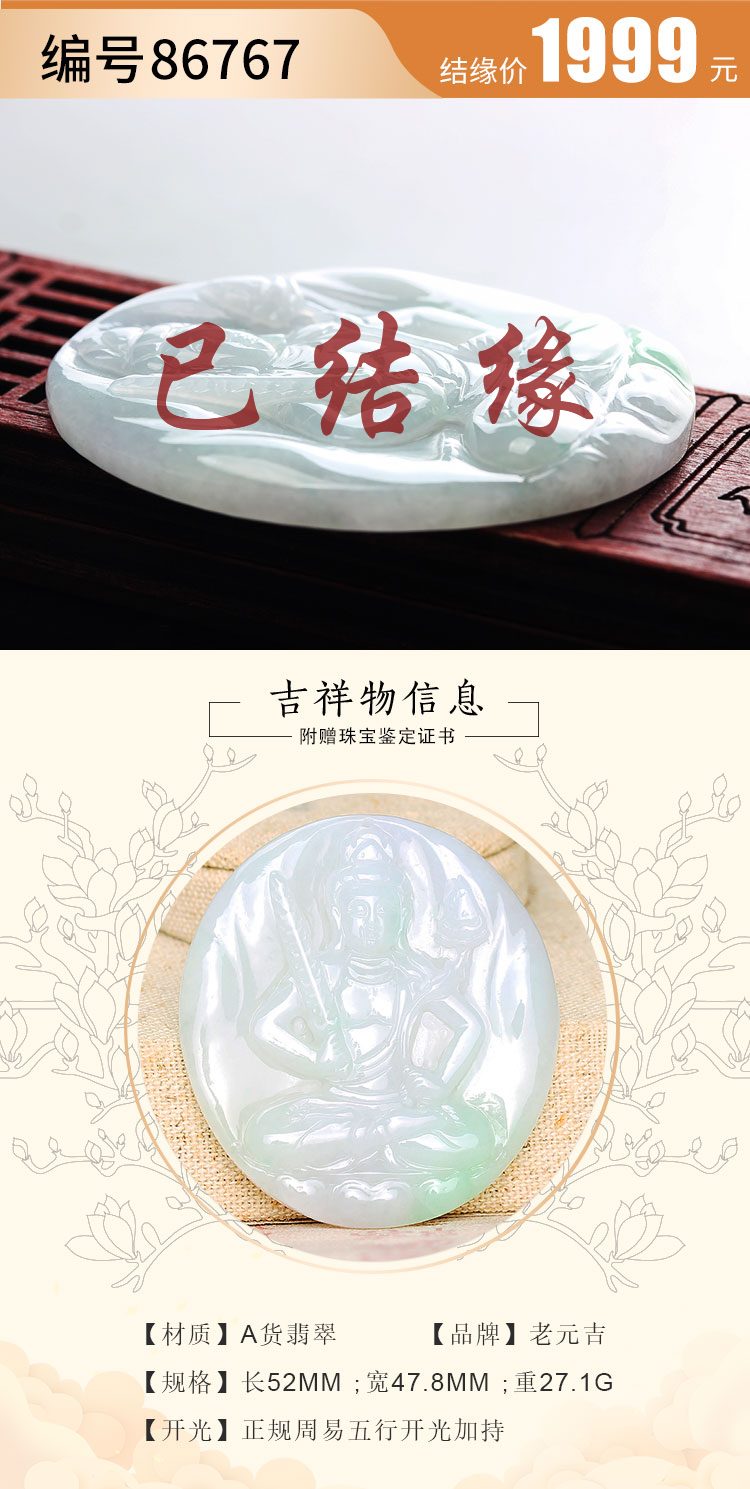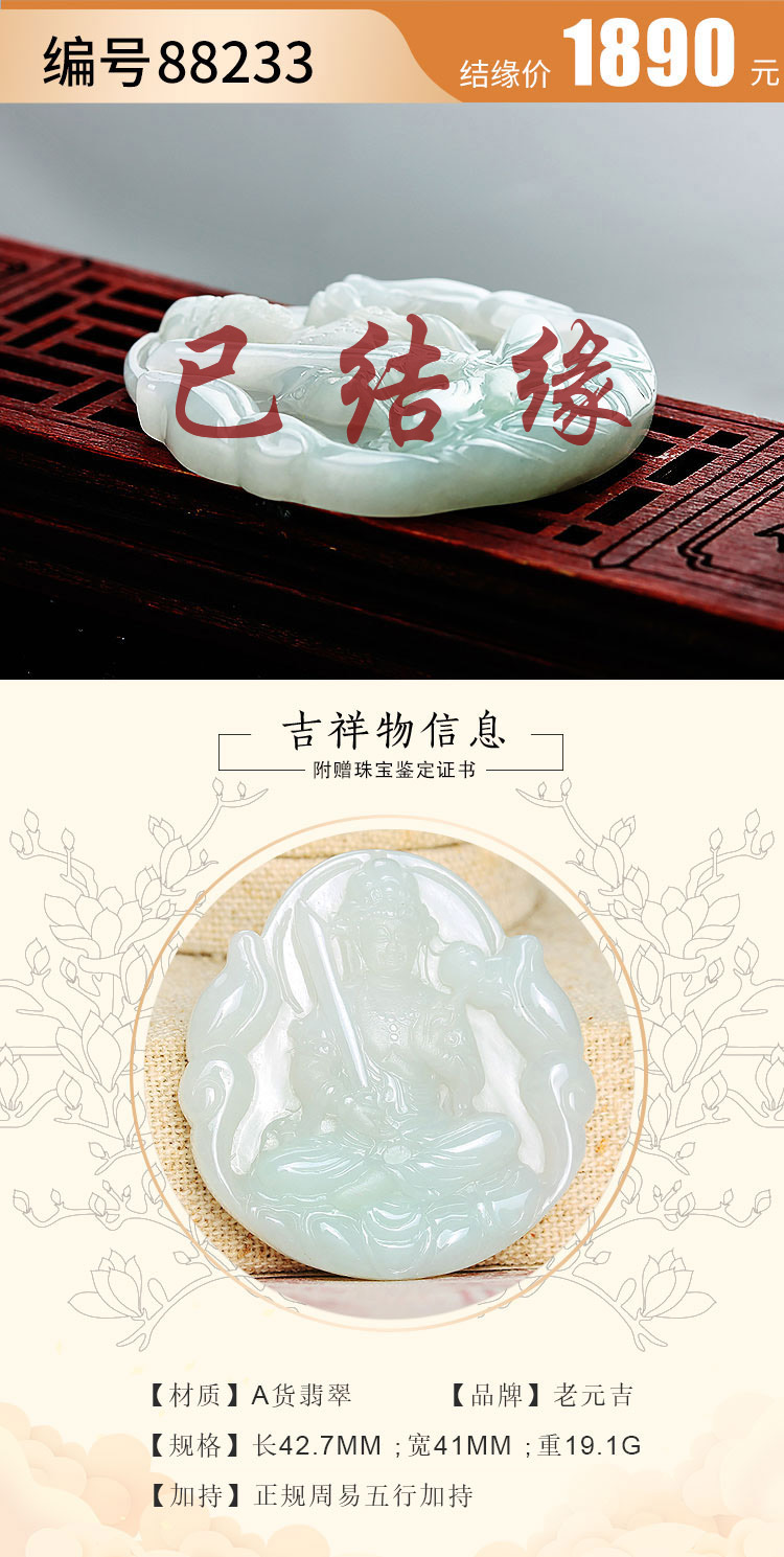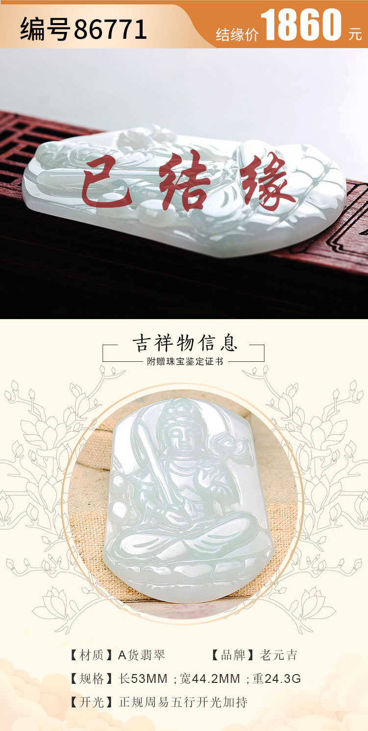 老元吉A货翡翠生肖牛虎本命佛【虚空藏菩萨吊坠】男女款挂件玉石吊坠