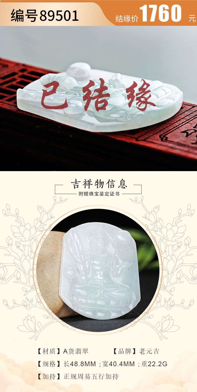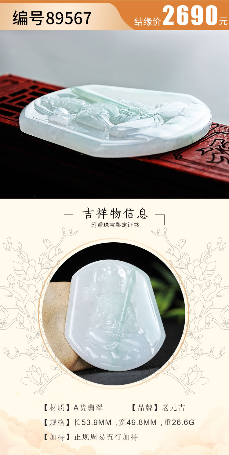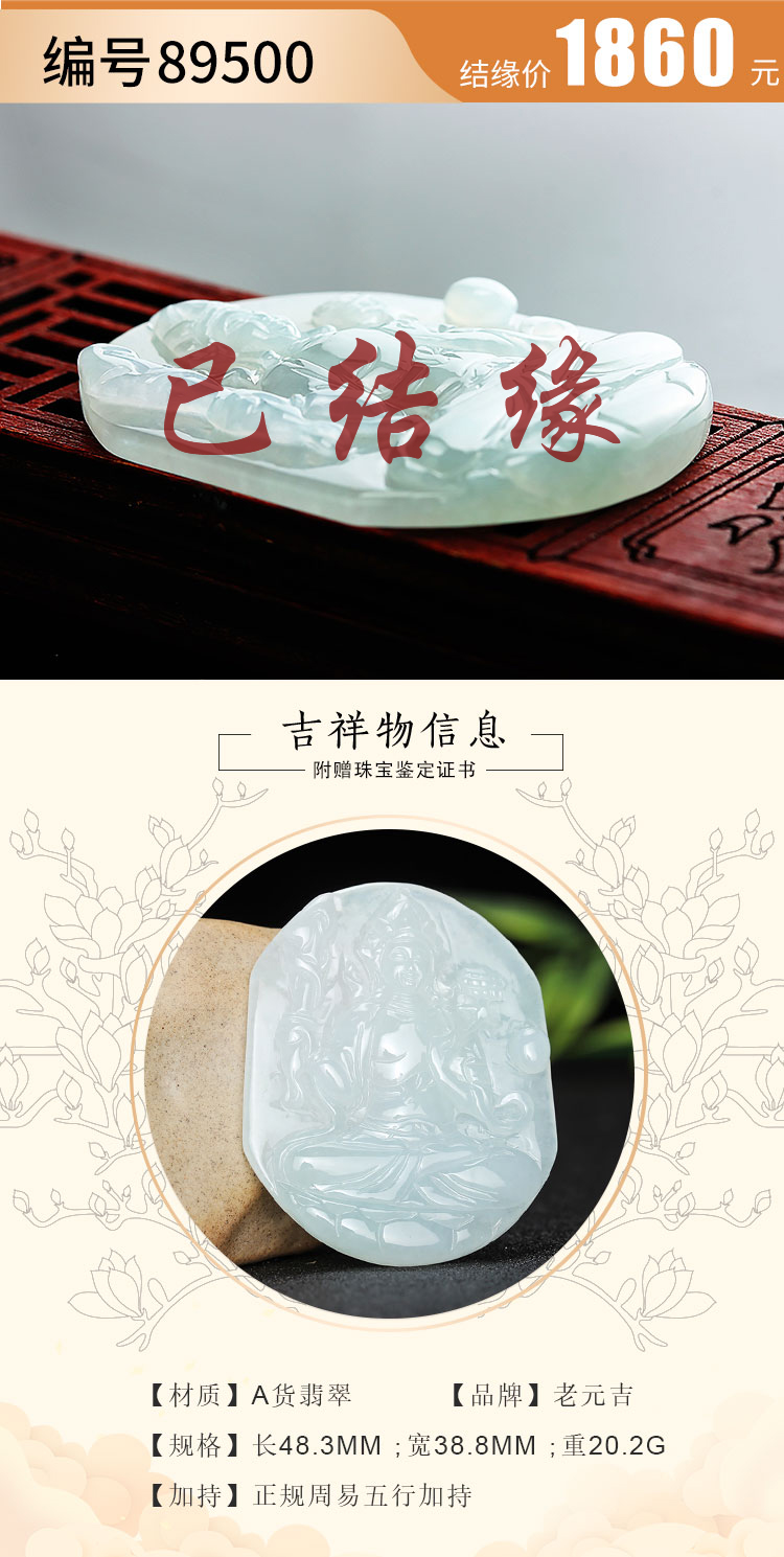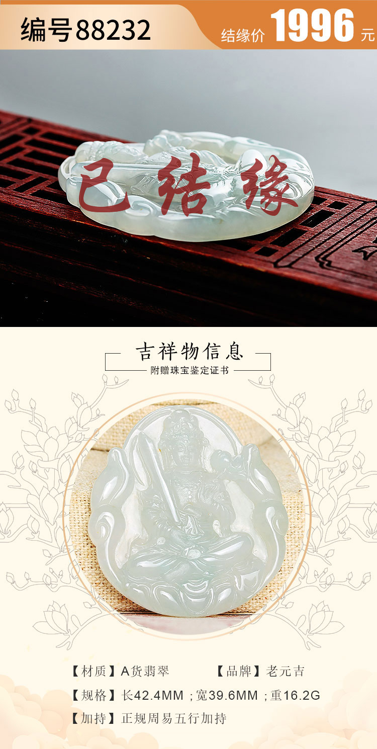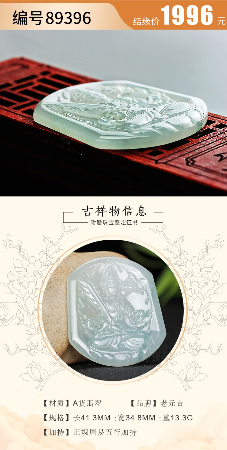 老元吉A货翡翠生肖牛虎本命佛【虚空藏菩萨吊坠】男女款挂件玉石吊坠
