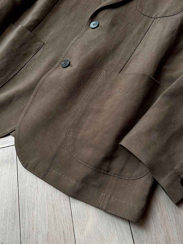 ✅️前面设计三个贴袋设计,具备功能性同时赋予版型更立体效果,领边走一圈真珠边绣线,比常规驳领更有工艺感与复古装饰美