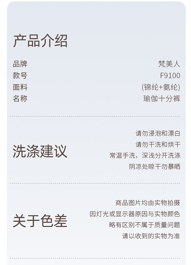 梵美人 F8086 瑜伽九分裤 无松紧 无尴尬线 莱卡云柔 自由裁