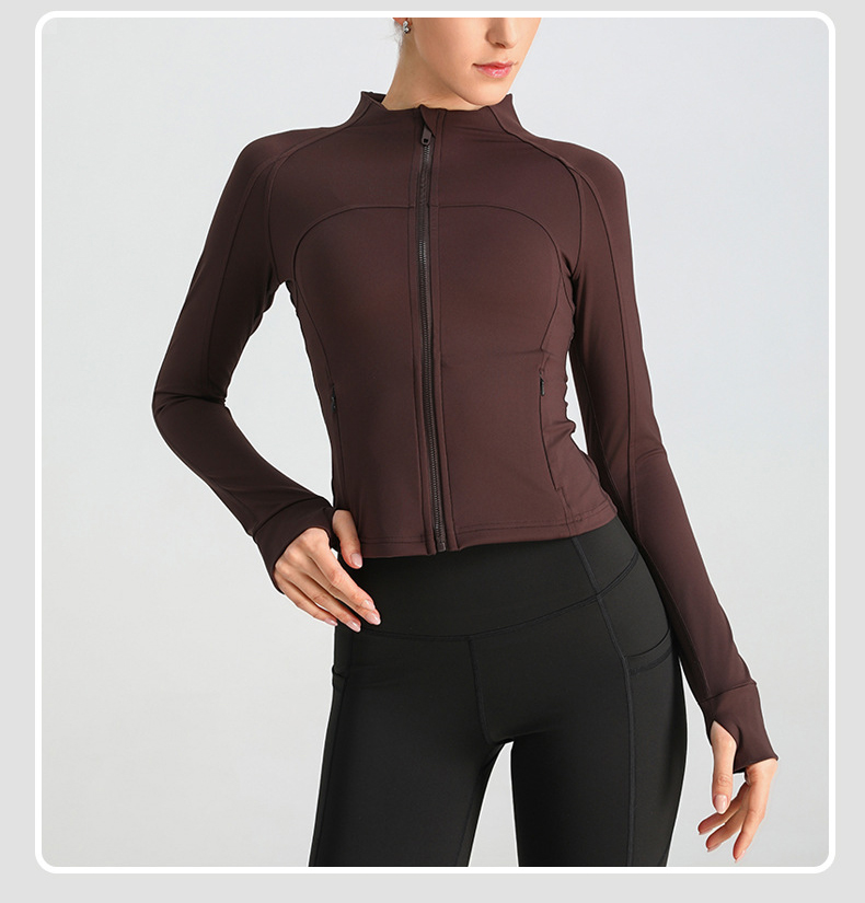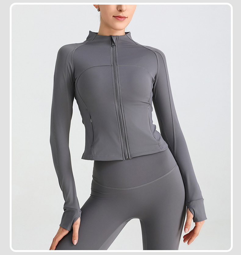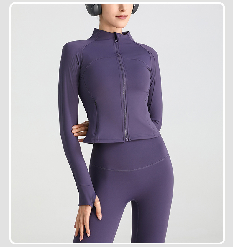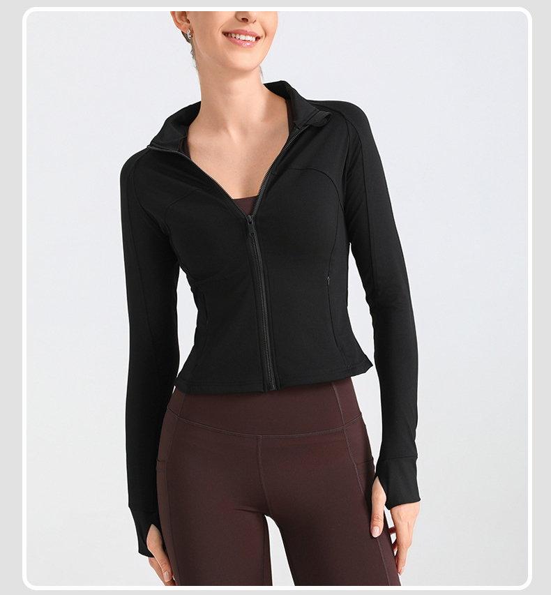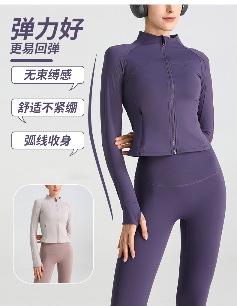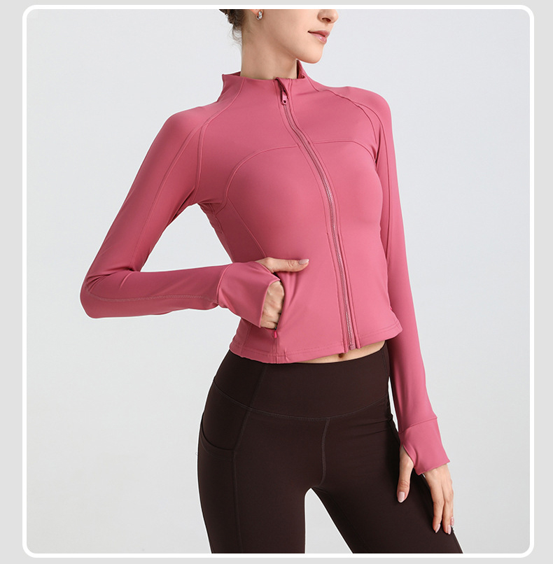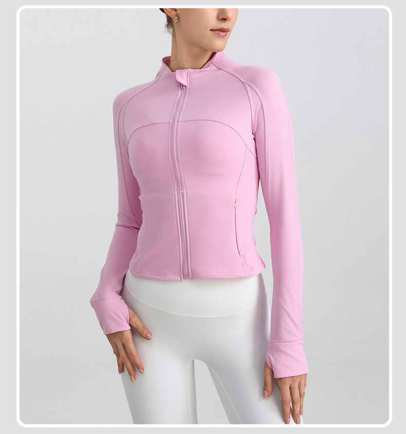 【139元任选2件】跃牌 “晨”系列 裸感瑜伽上衣立领修身透气显瘦网纱运动跑步外套女健身瑜伽服JLWSWT(活动产品,收货7天内支持退换)