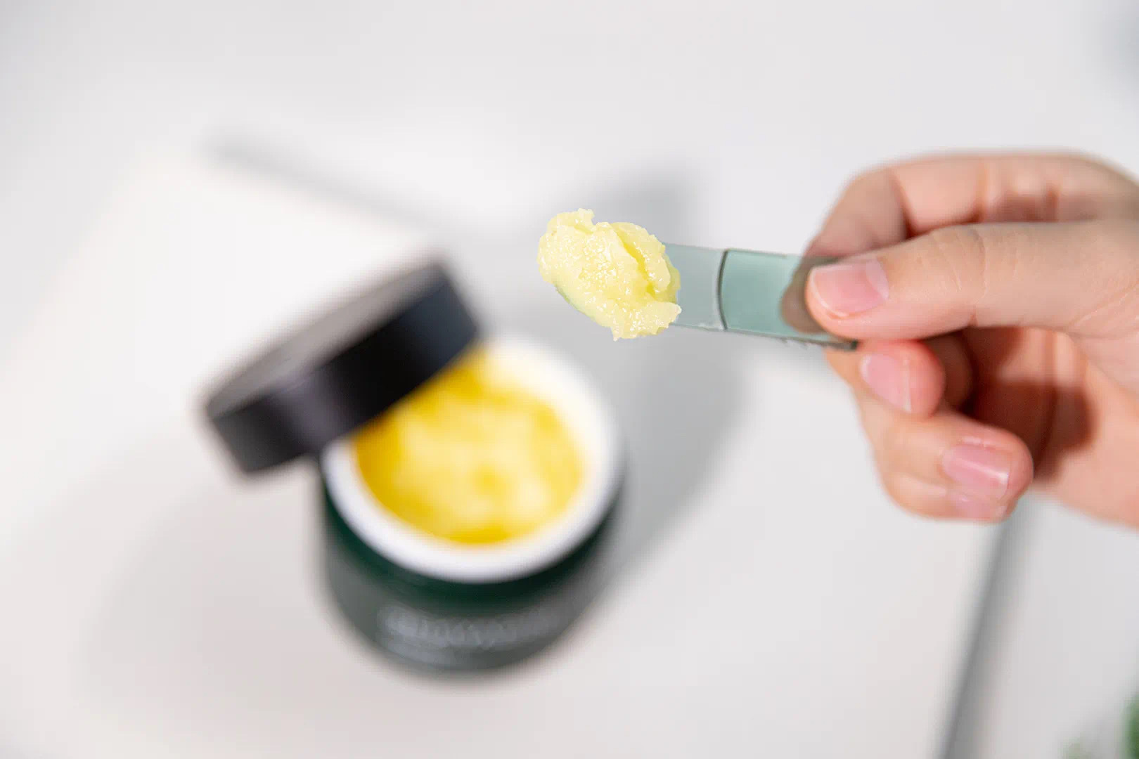 还贴心的配备了小挖勺,每次用的时候挖一小勺,涂抹全脸轻轻按摩,脸上的妆就能被快速溶化。