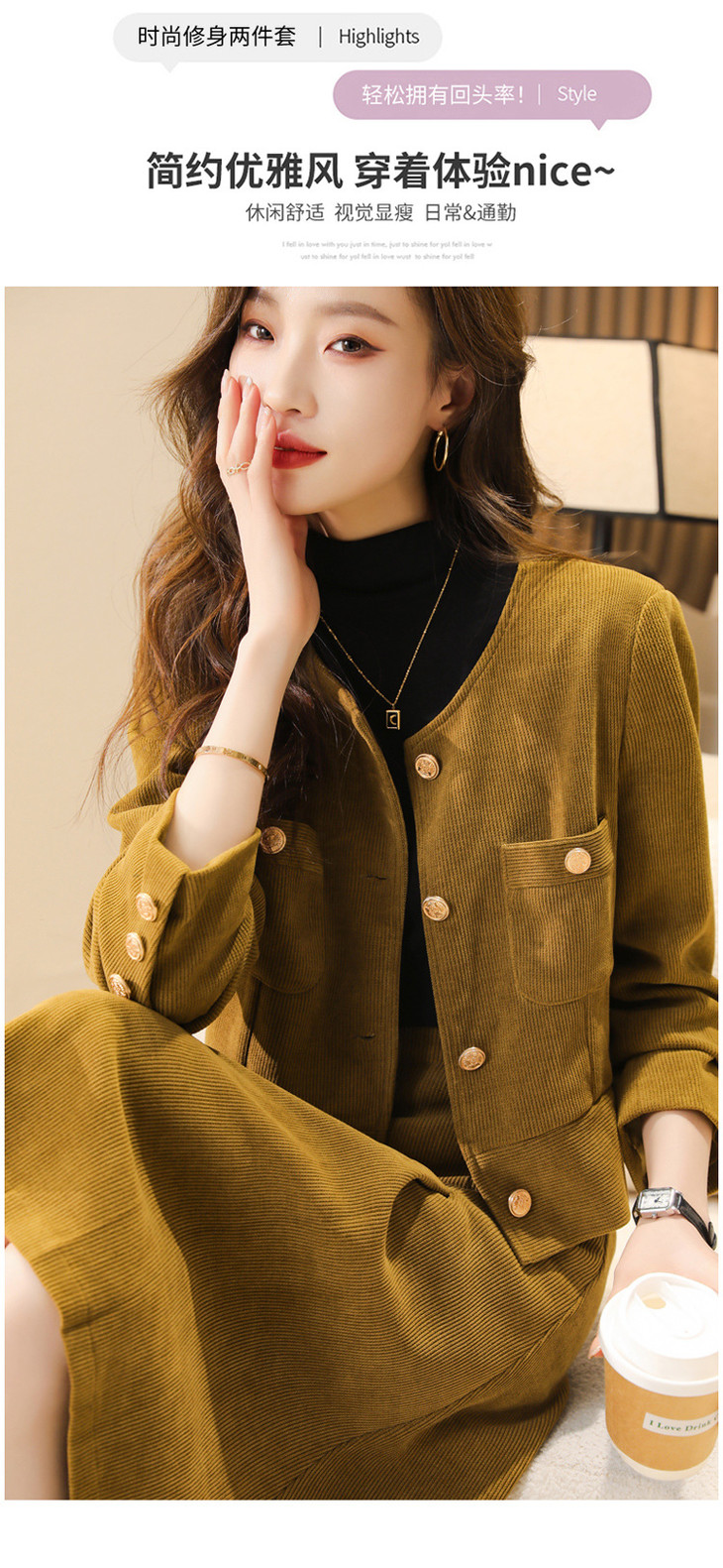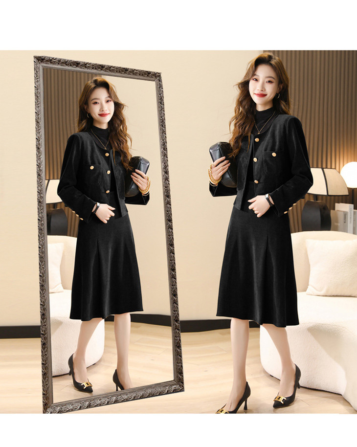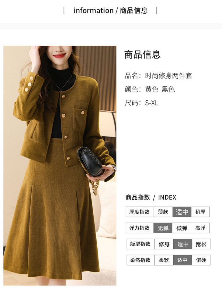 小香风套装感名媛气质修身显瘦短款外套+半身裙2件套HR-WX23029