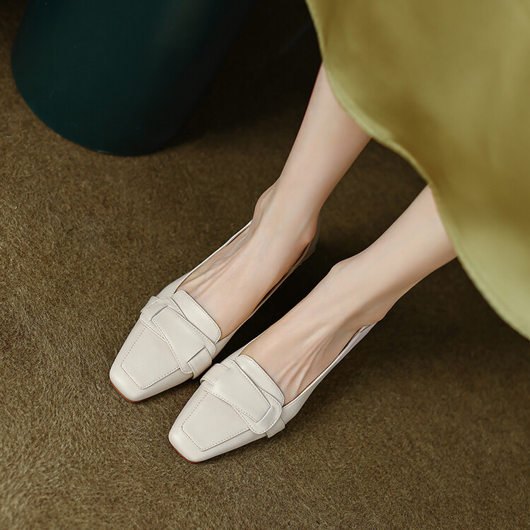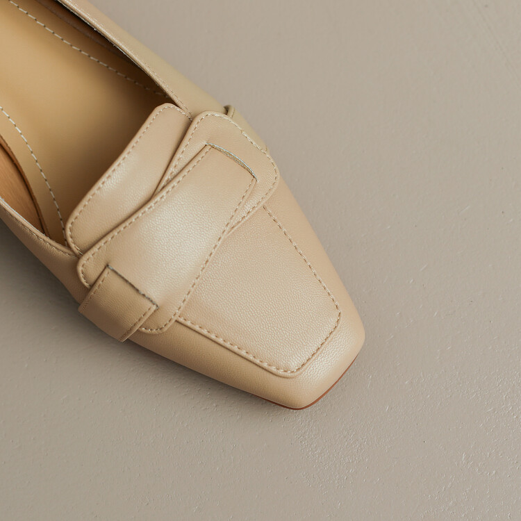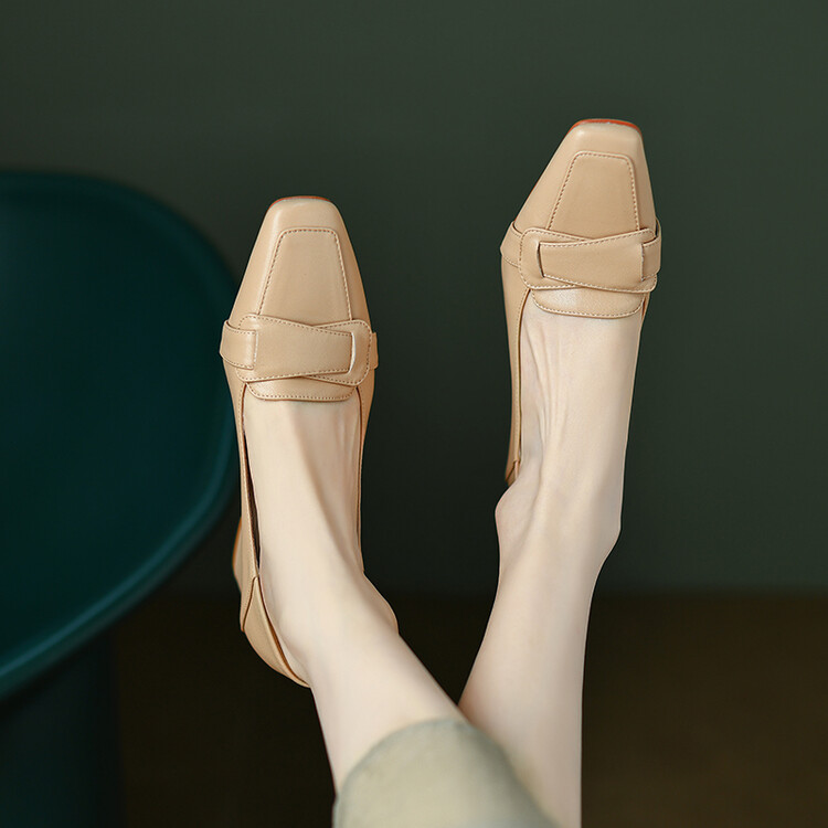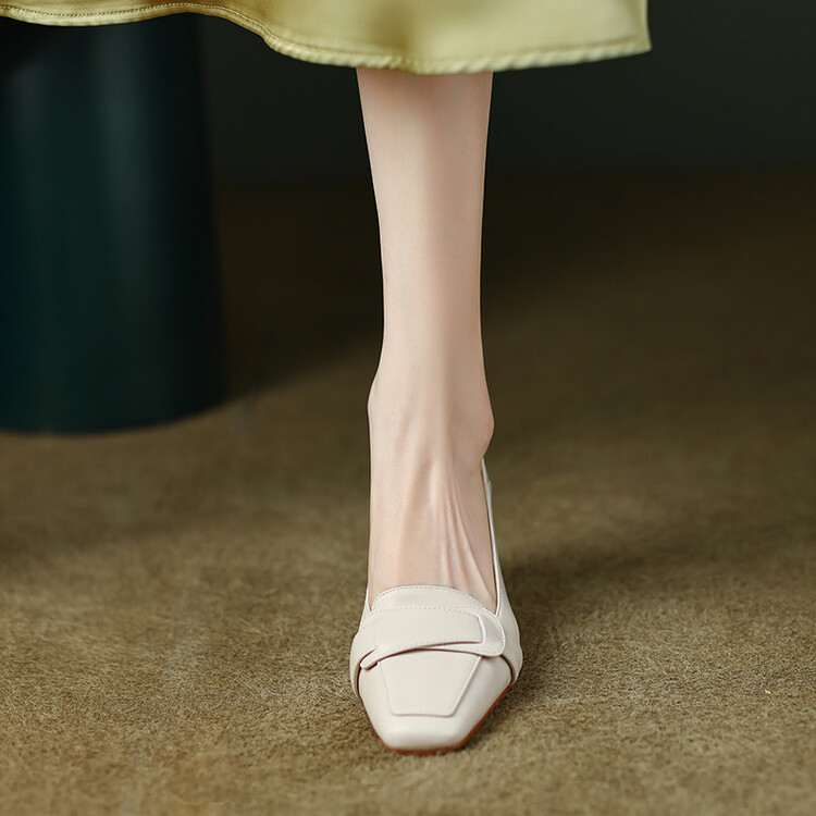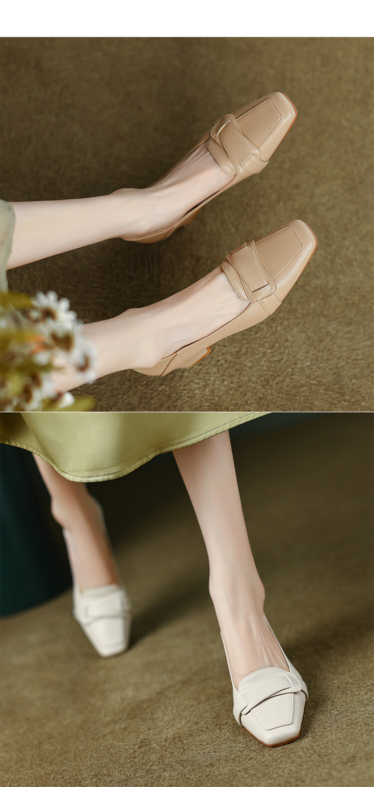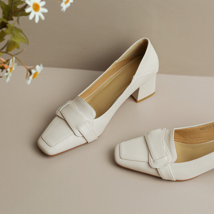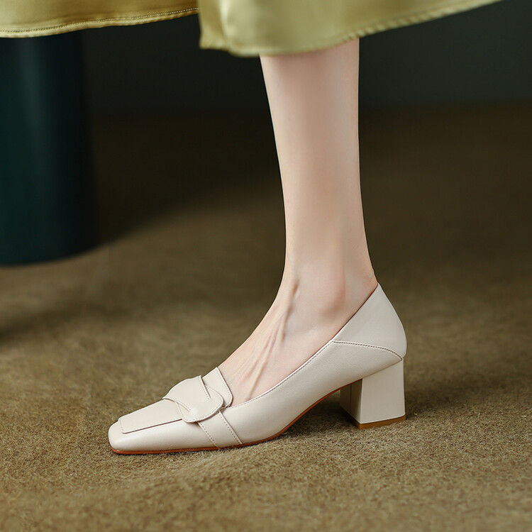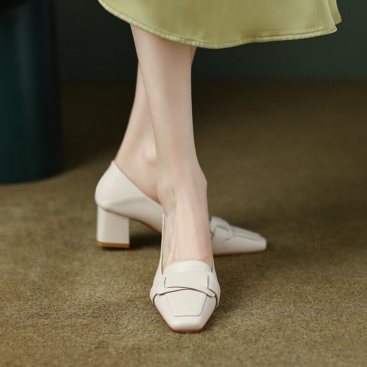 【预售5天】法式复古牛皮方头粗跟高跟鞋四季款优雅气质浅口中跟单鞋女WC&9613